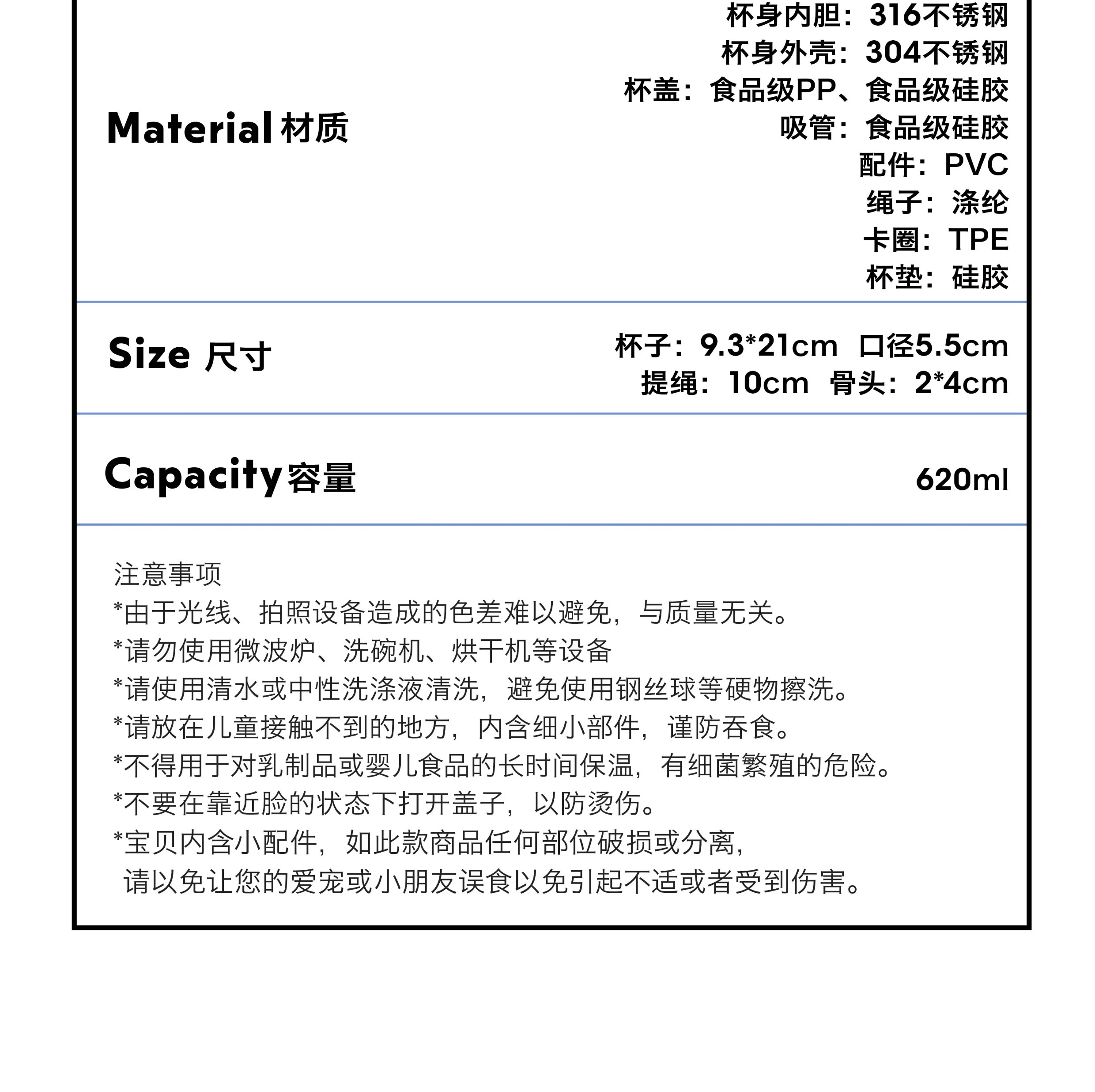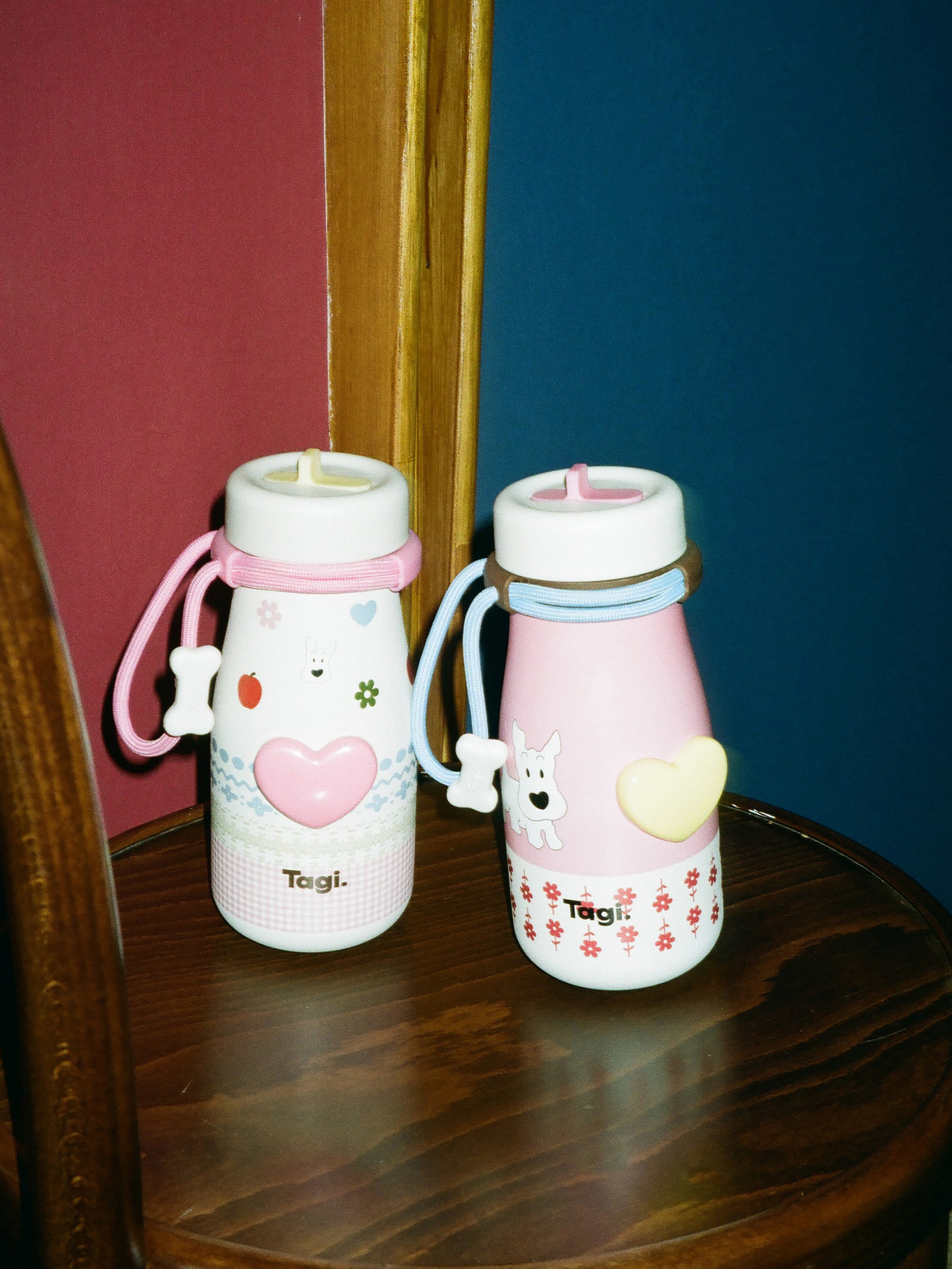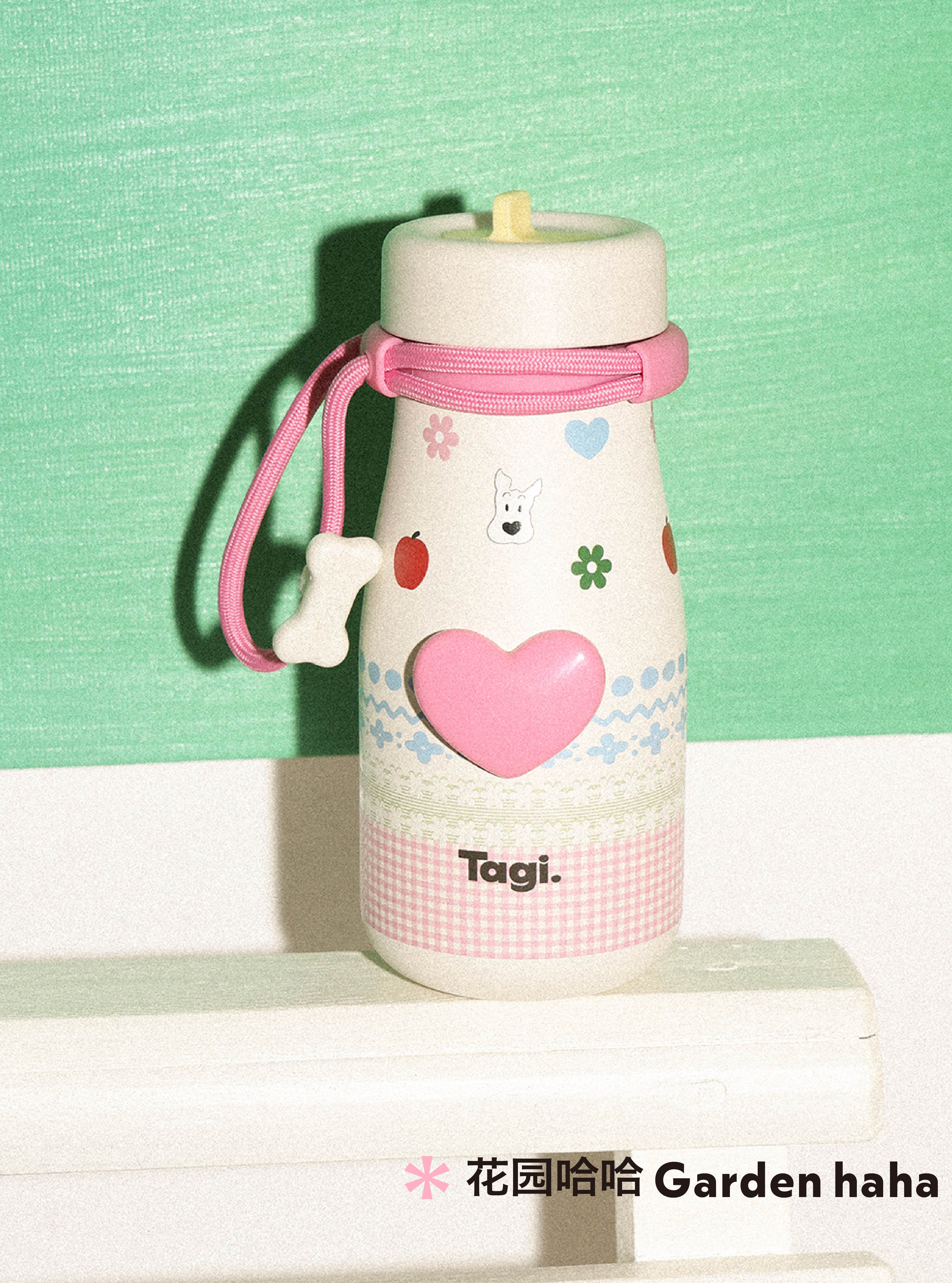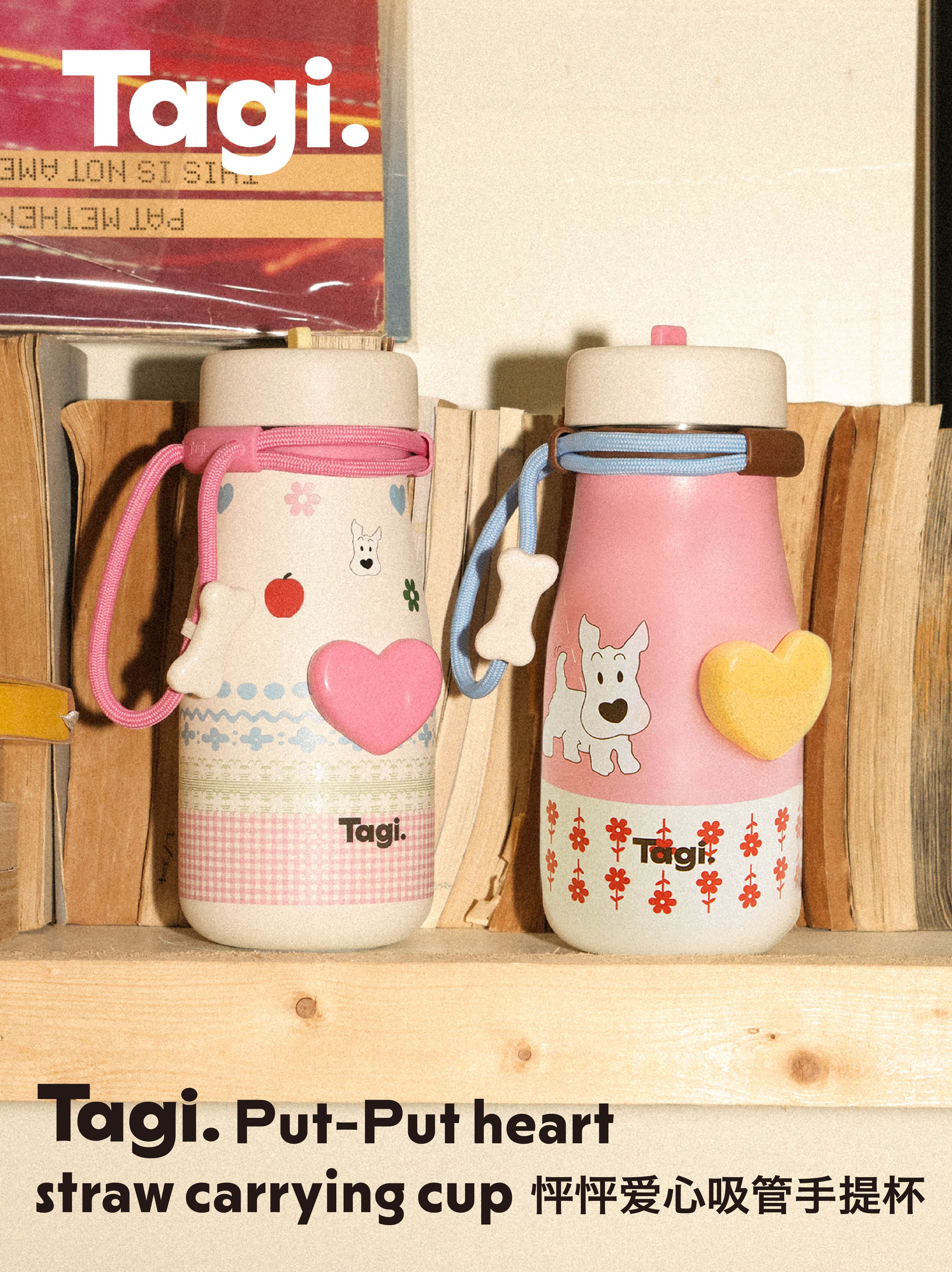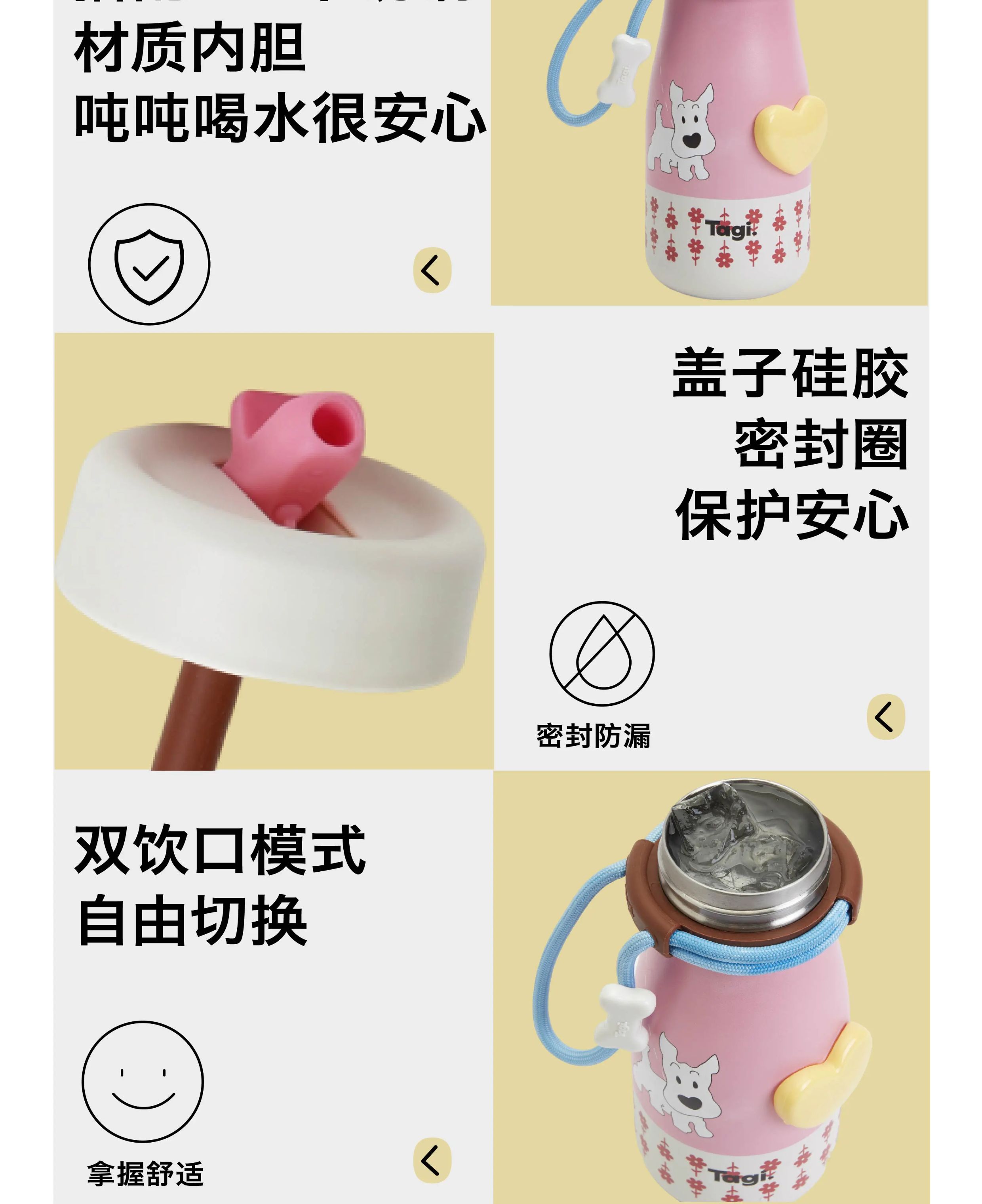 Tagi爱心小狗散步吸管杯 620ml 怦怦爱心机灵大容量保温杯不锈钢吸管杯