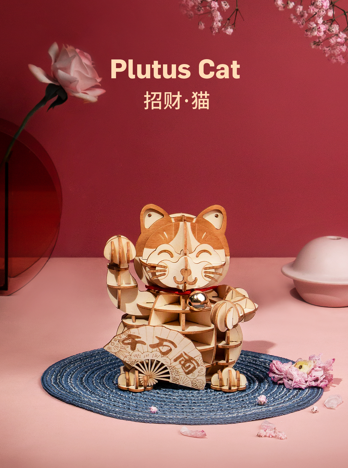 若来招财·猫TG303拼图立体3d模型成年木质拼装减压diy手工生日礼物玩具