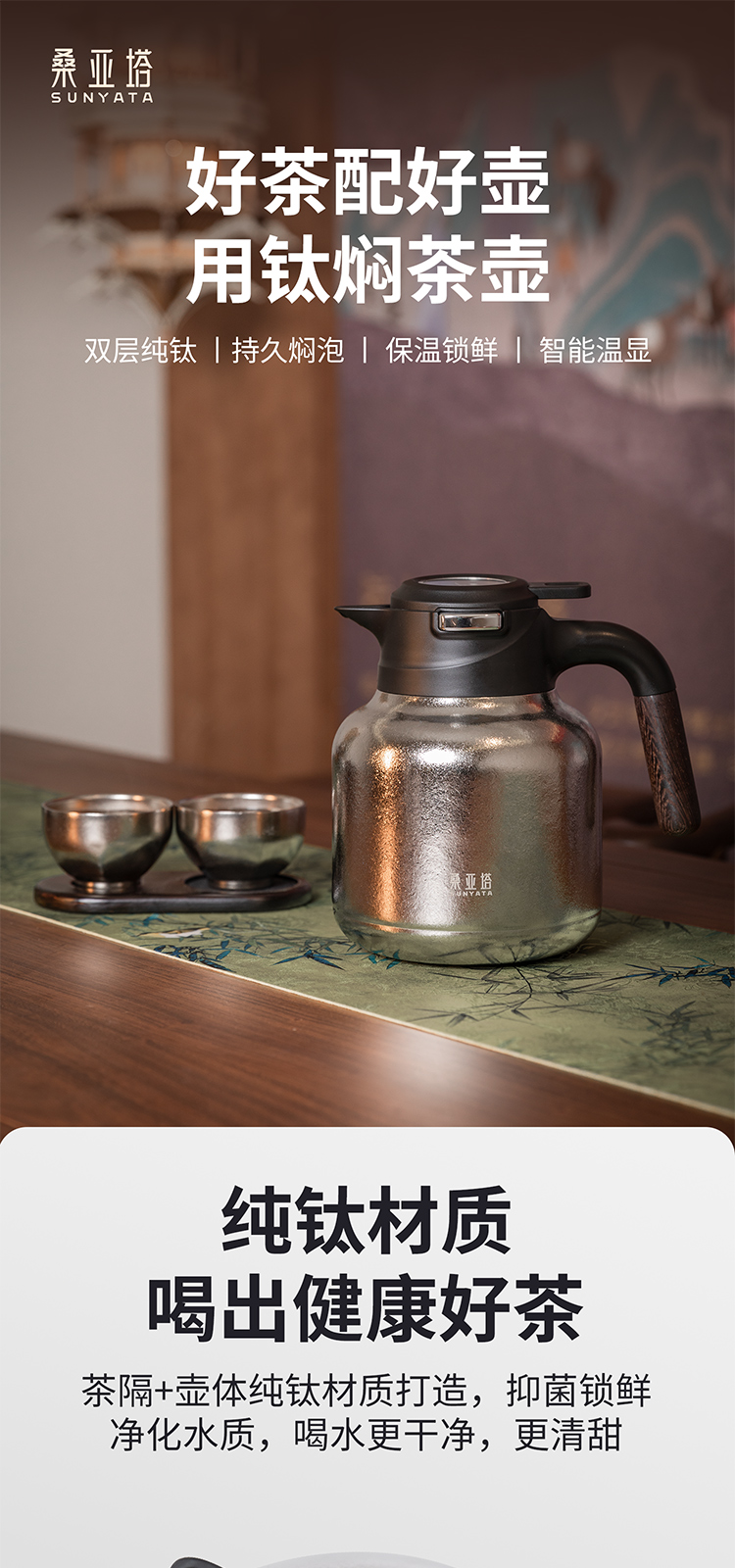 桑亚塔 钛金属焖茶壶套装 纯钛焖泡壶套装礼盒商务带茶盏