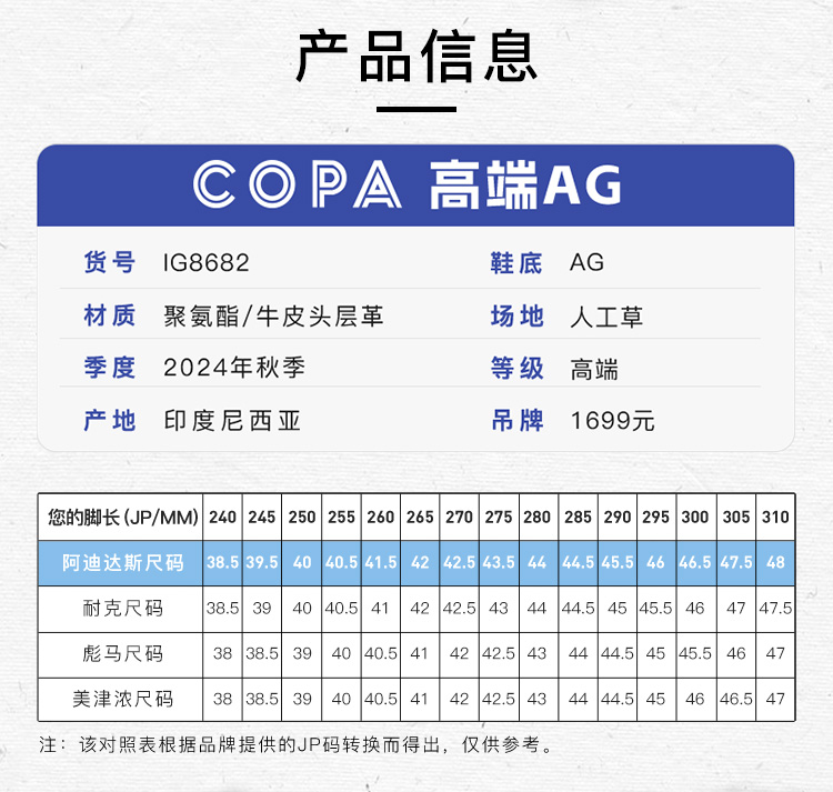 小李子ADIDAS阿迪达斯COPA PURE 2高端AG短钉牛皮成人足球鞋男IG8682