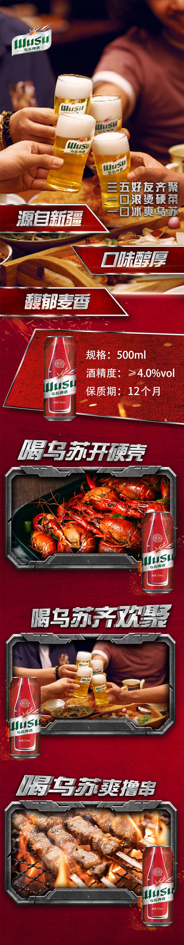 红乌苏啤酒拉罐500ML