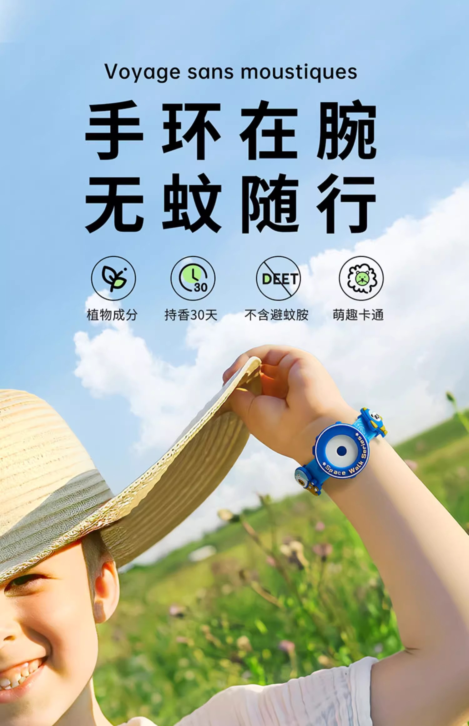 帕达诺硅胶防护手环婴儿童户外防蚊神器植物替换芯宝宝专用