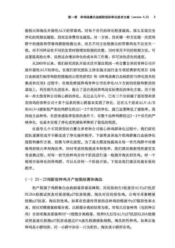 ●章 种鸡场禽白血病防控和净化技术方案(version4.0)