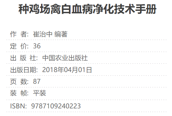 崔治中编著的《种鸡场禽白血病净化技术手册》,笔者不仅将已经摸索成功的禽白血病净化技术流程通过两章的内容完整地体现出来,而且结合过去多年中在各地就禽白血病净化做讲座过程中与来自基层鸡场的听众交流过程中的经验,将与种鸡场禽白血病净化相关的主要问题以一问一答的形式写出来,以便于养鸡业的企业高管、种鸡场管理人员、兽医技术人员从中选择感兴趣的问题参考、研讨。希望本书能对我国的养鸡业预防控制禽白血病还有所帮助。