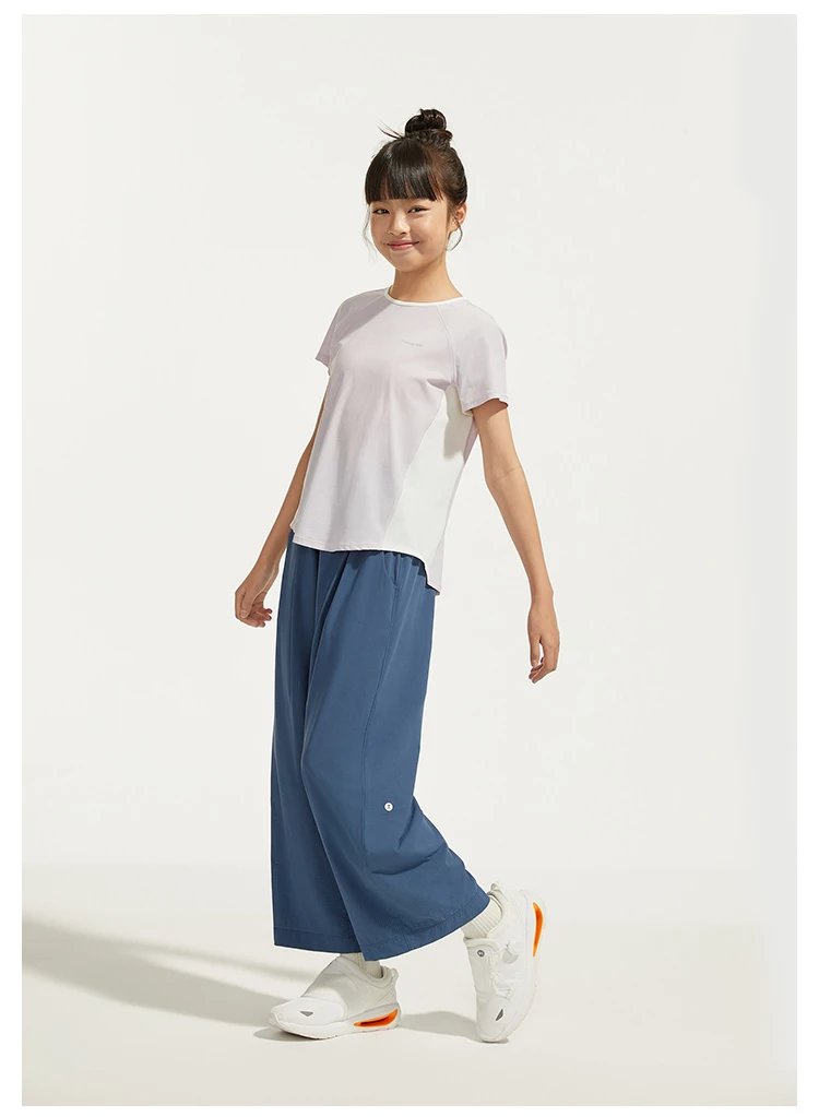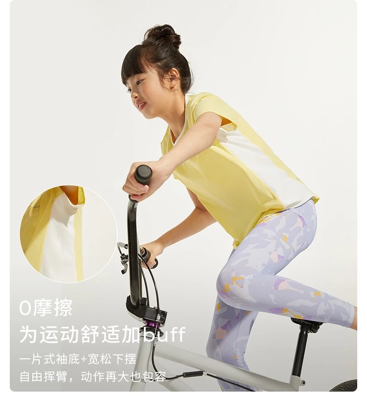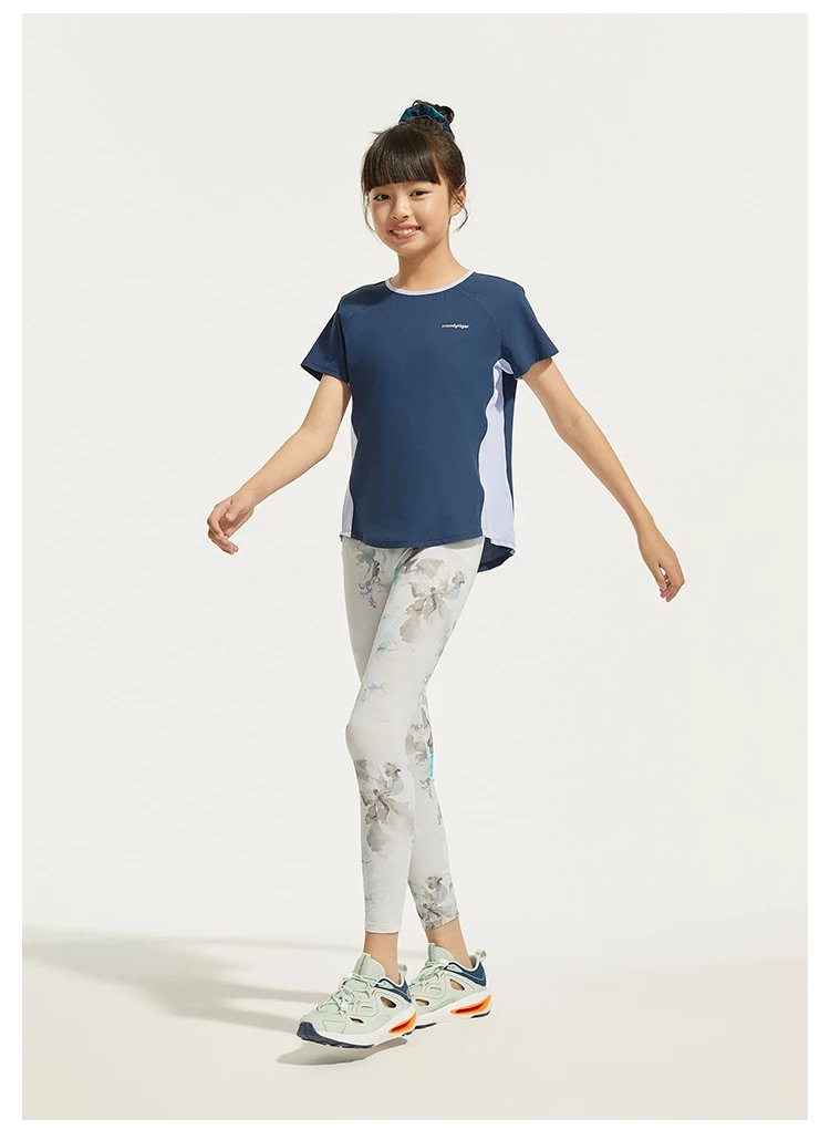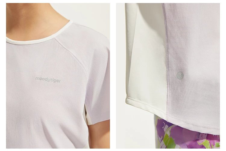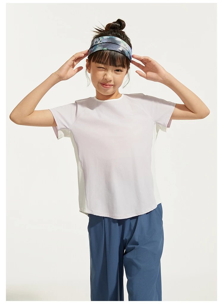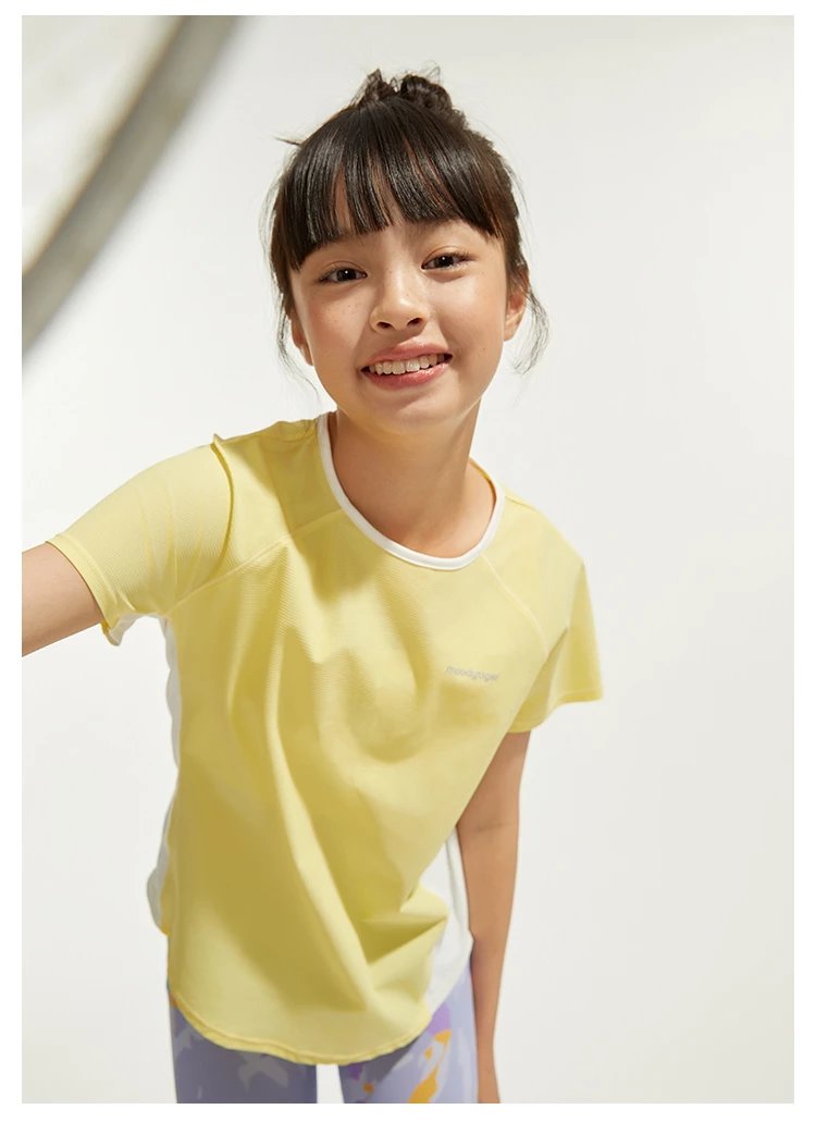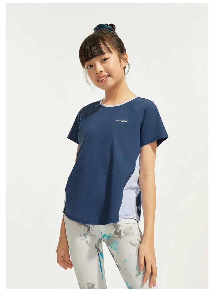 【24年夏新品】moodytiger女童短袖T恤24夏季新款个性圆领撞色宽松透气运动衫42210113