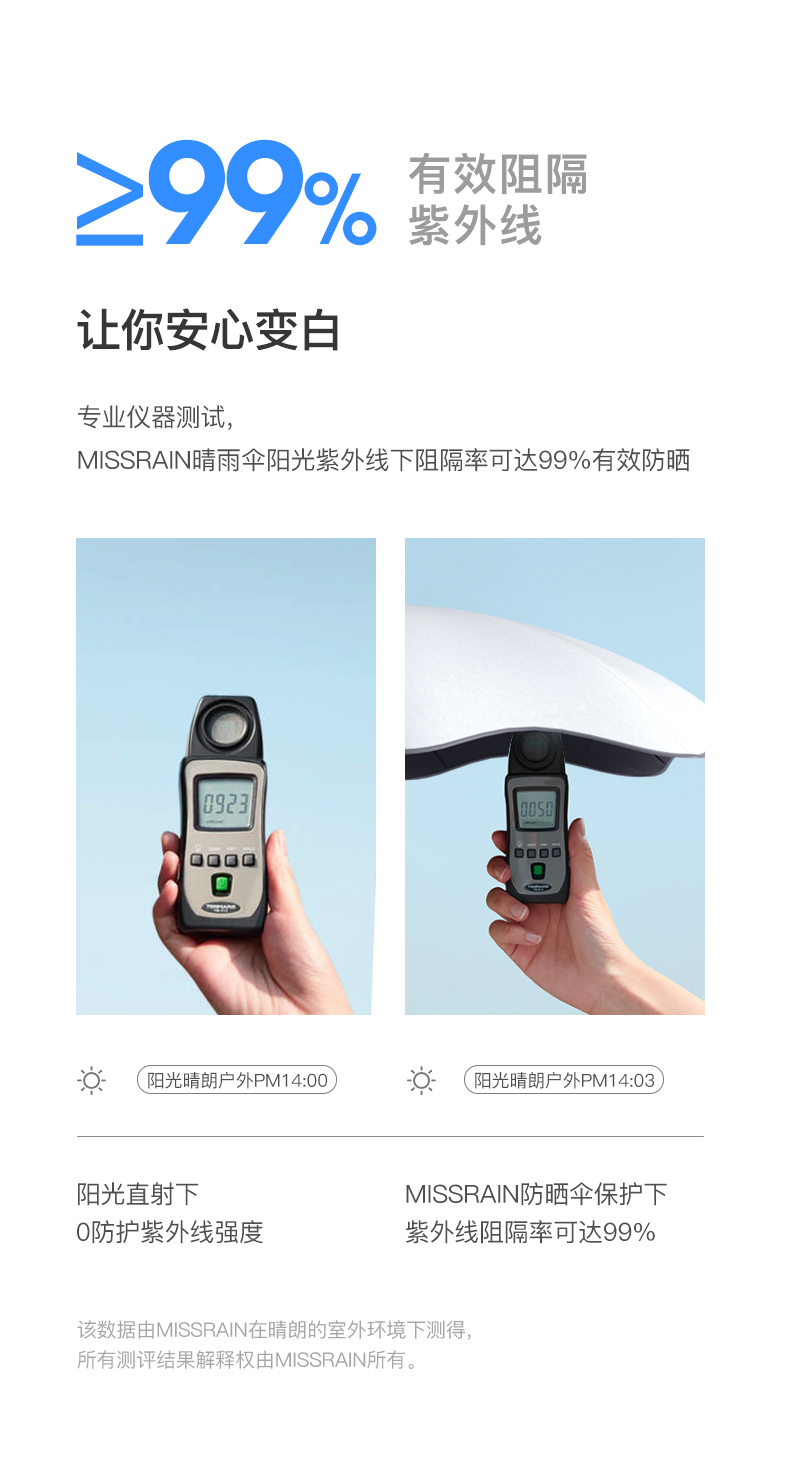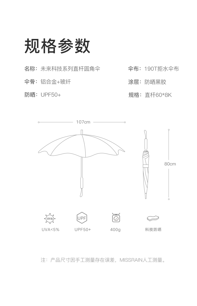 MISSRAIN圆角直杆太阳伞女晴雨两用遮阳伞防晒防紫外线女大号雨伞 [福利品]
