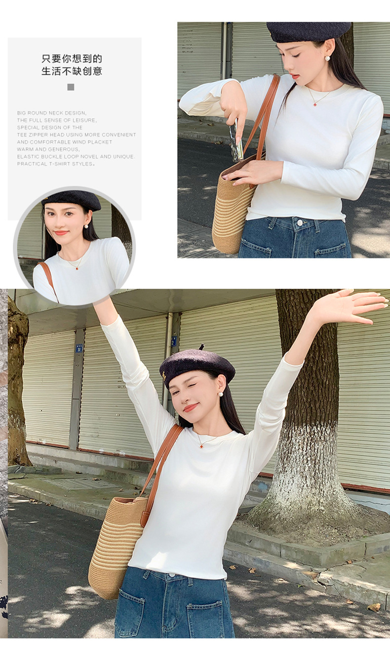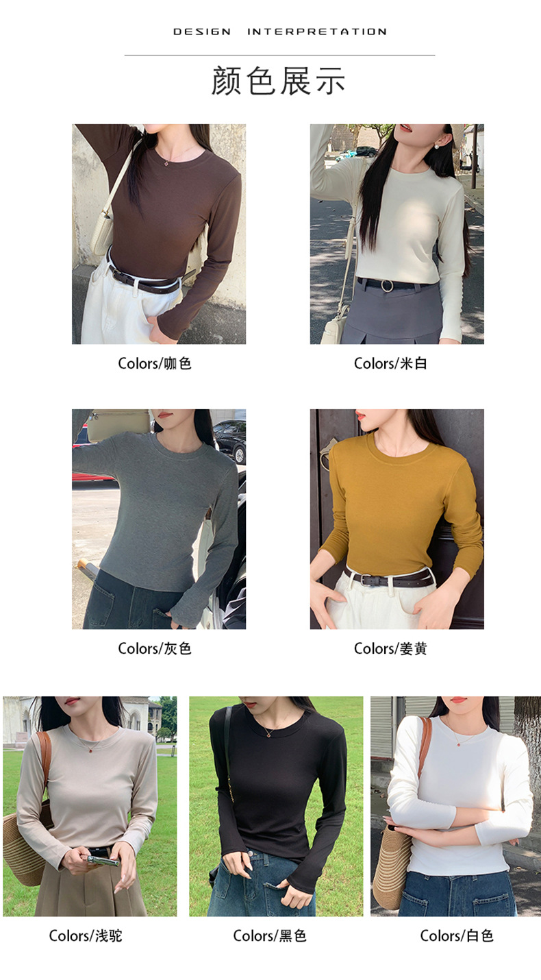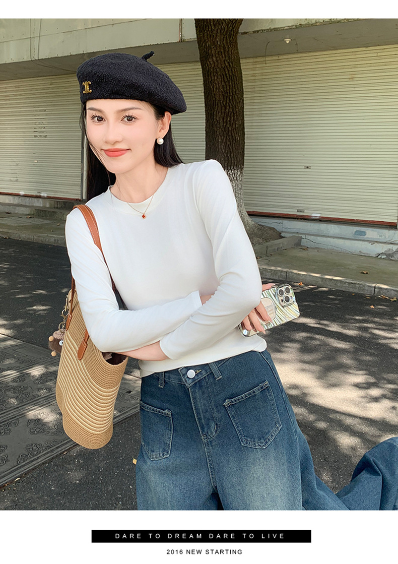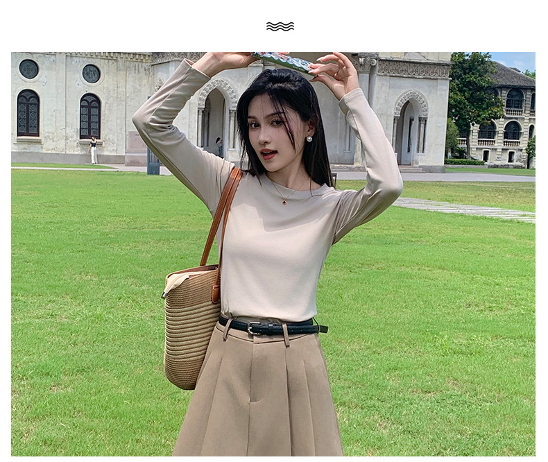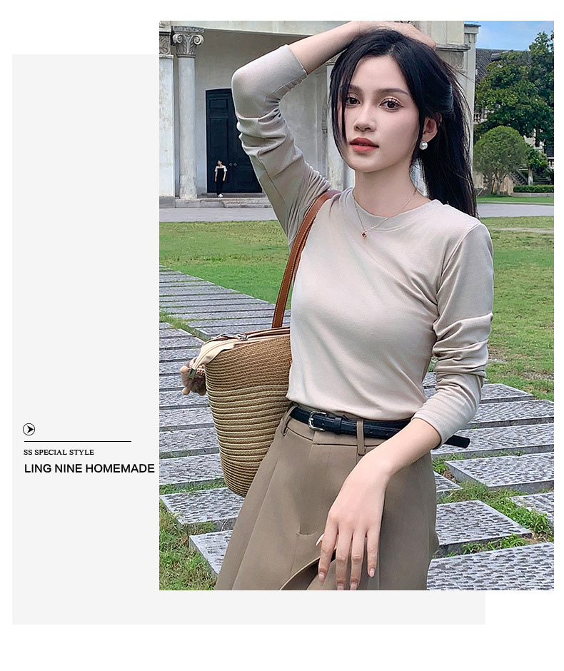 圆领打底衫女2024早秋新款女装洋气百搭纯色打底上衣长袖可外穿