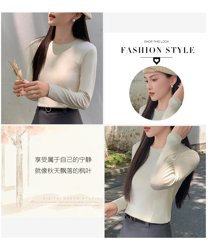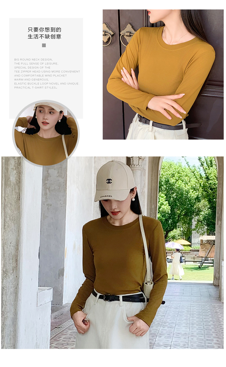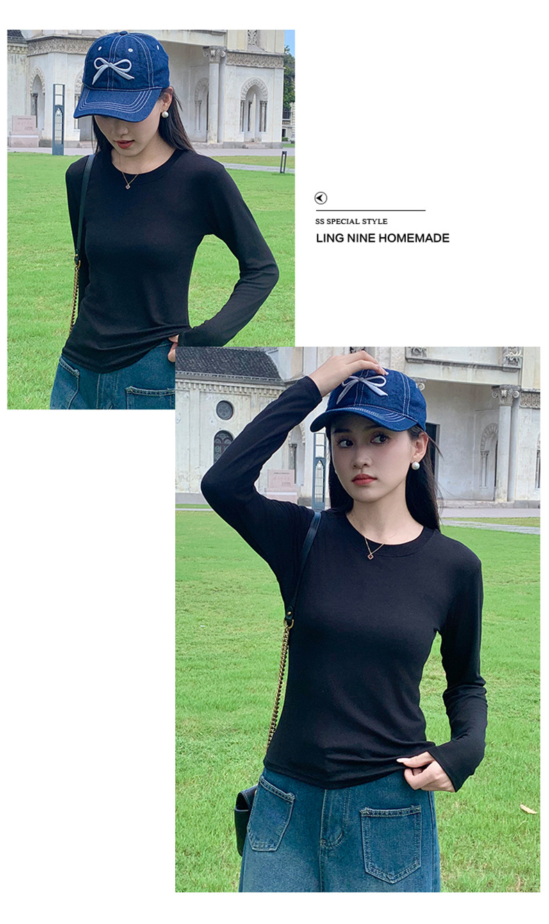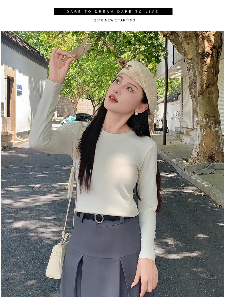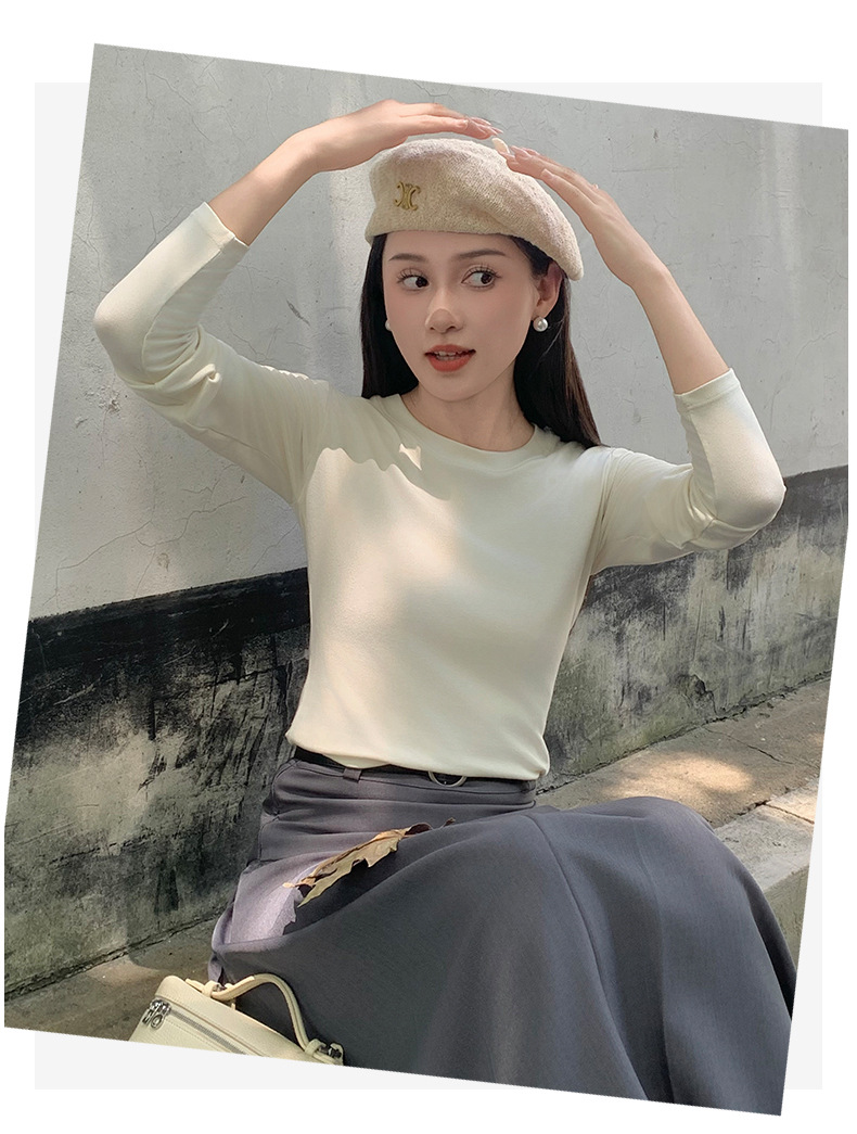 圆领打底衫女2024早秋新款女装洋气百搭纯色打底上衣长袖可外穿