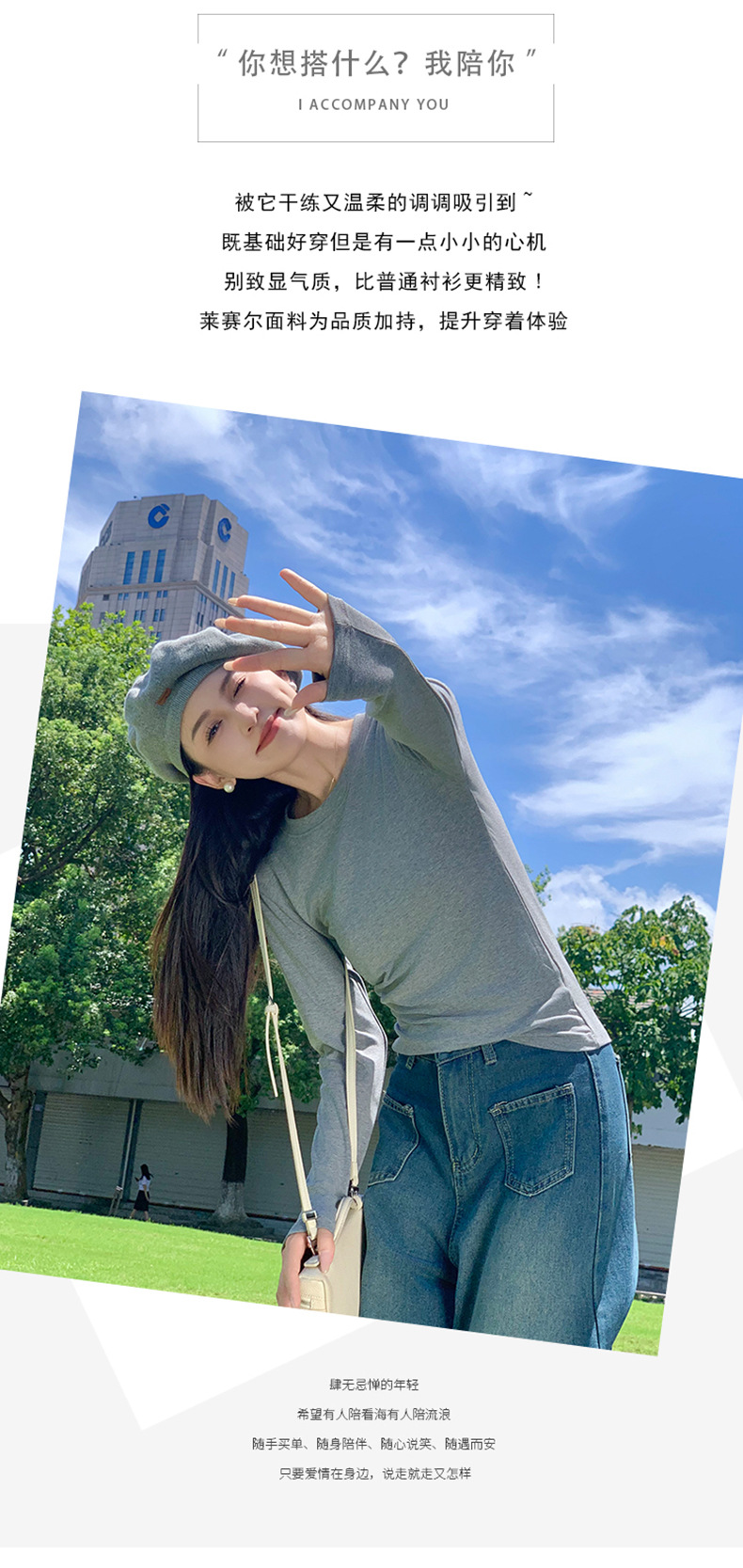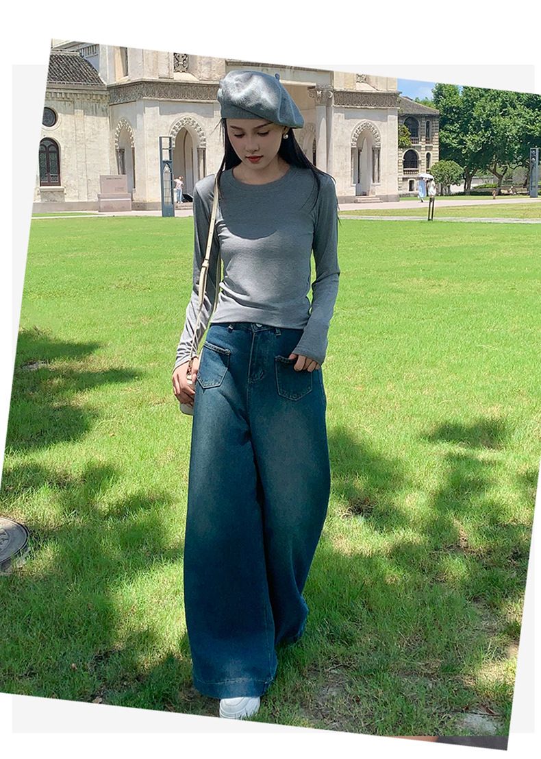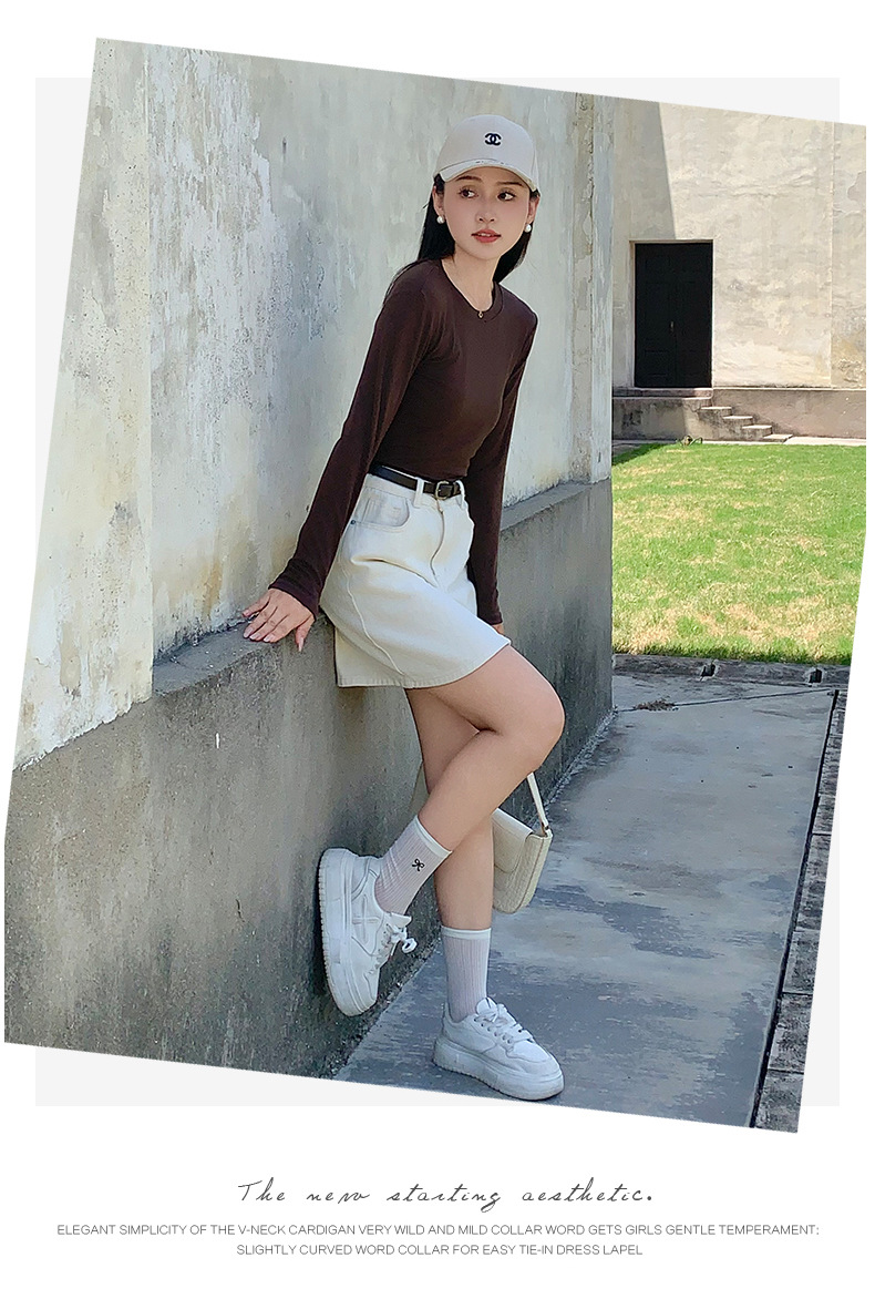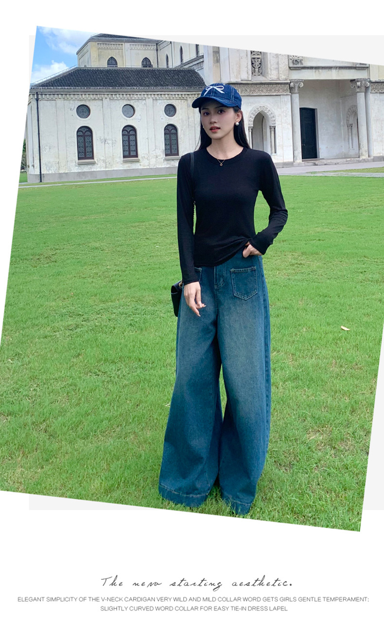 圆领打底衫女2024早秋新款女装洋气百搭纯色打底上衣长袖可外穿