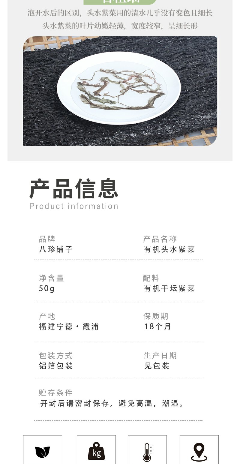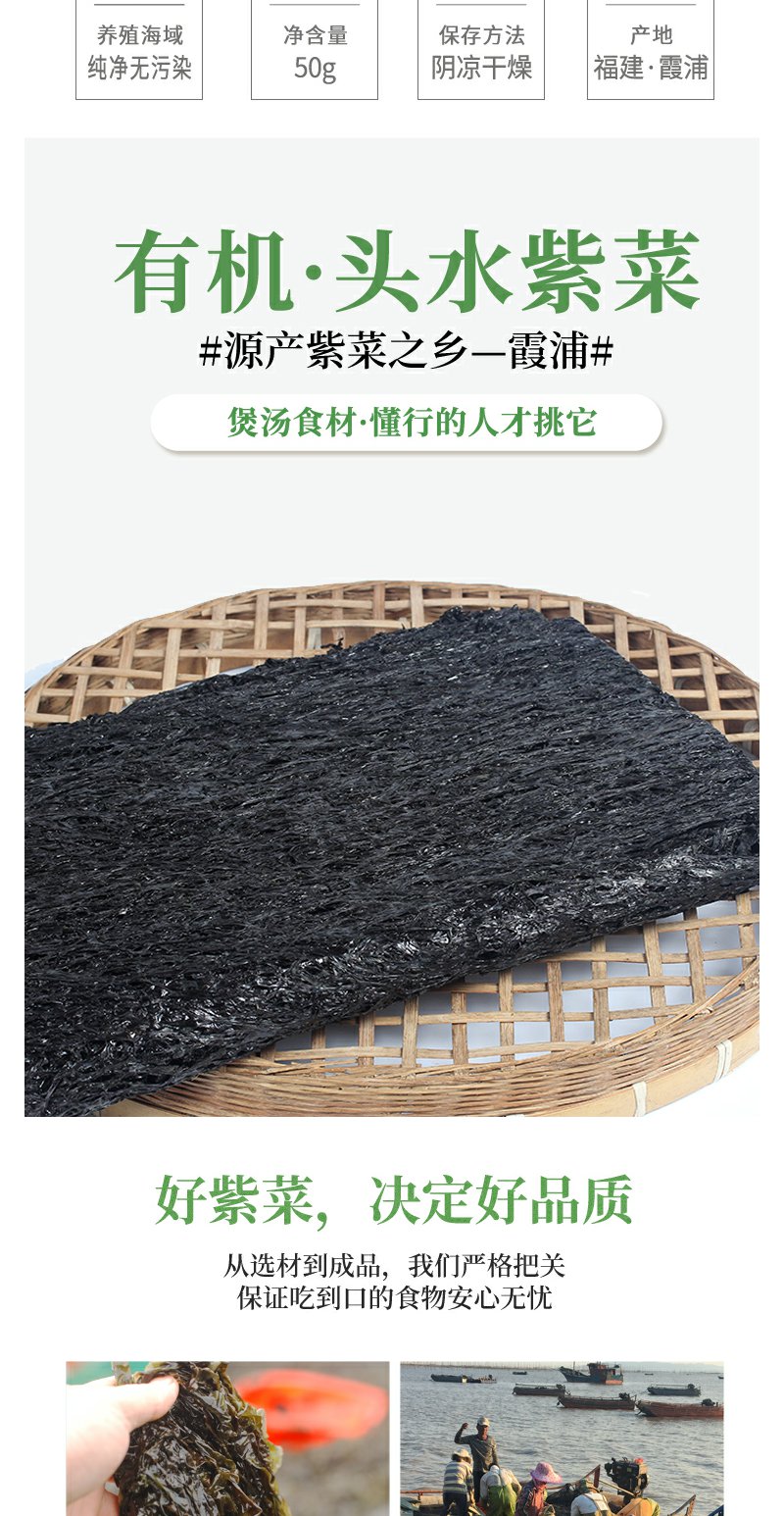 [贵族紫菜]霞浦有机头水紫菜国家地理标志至鲜至嫩50gx5包