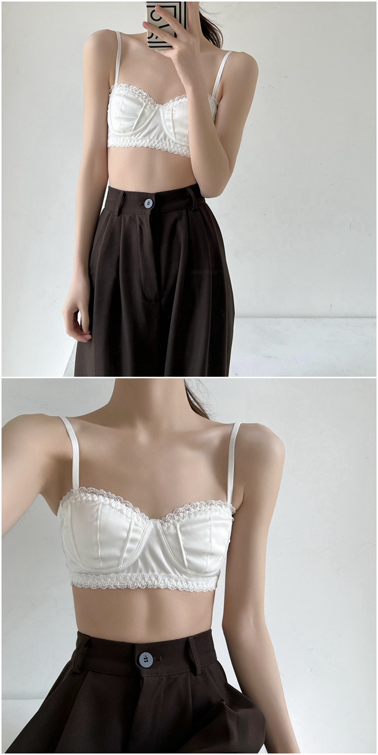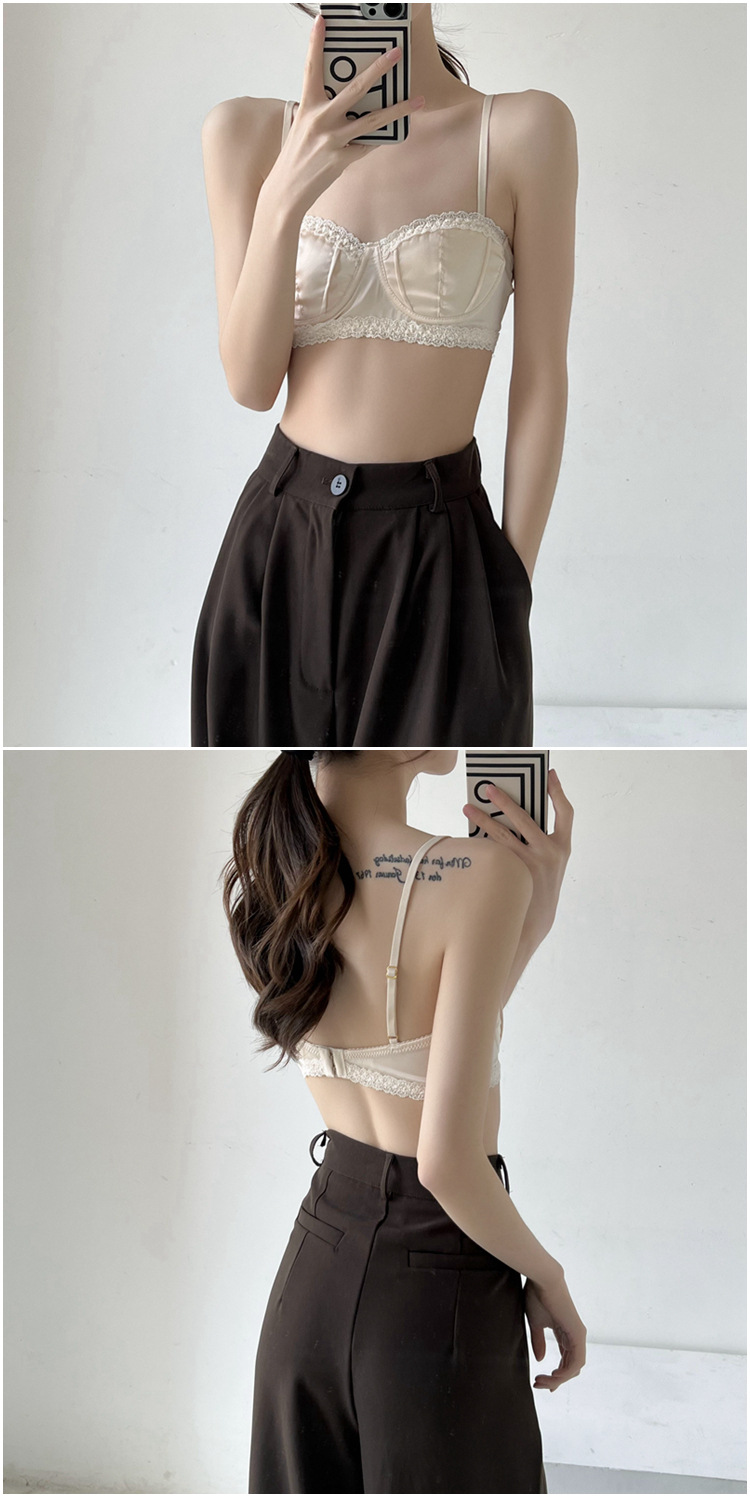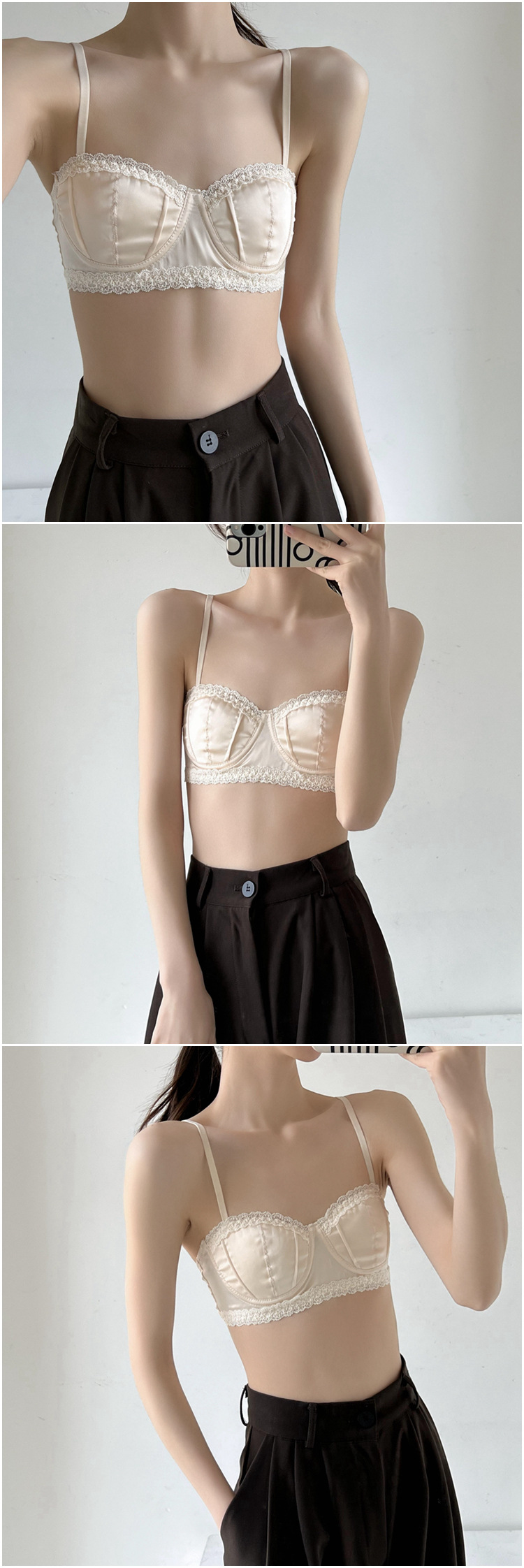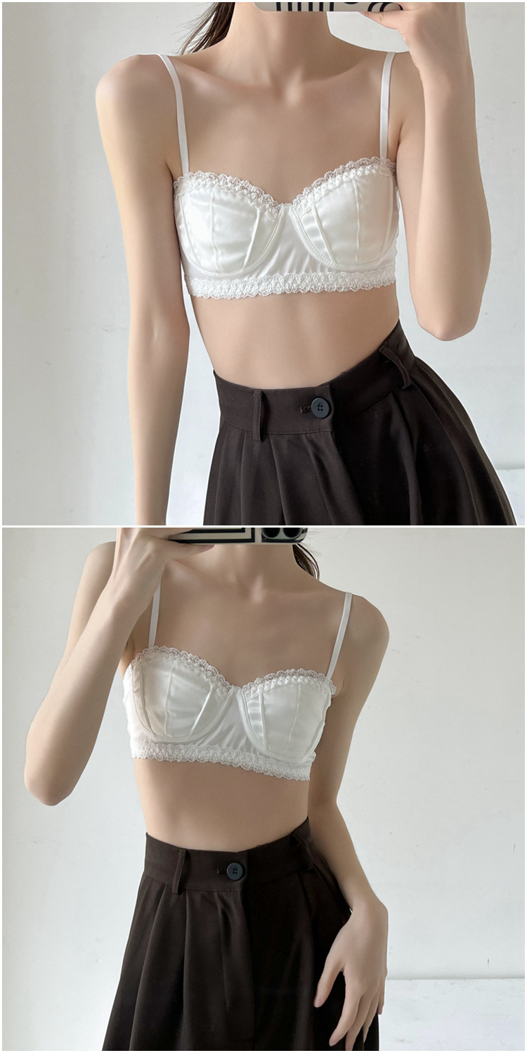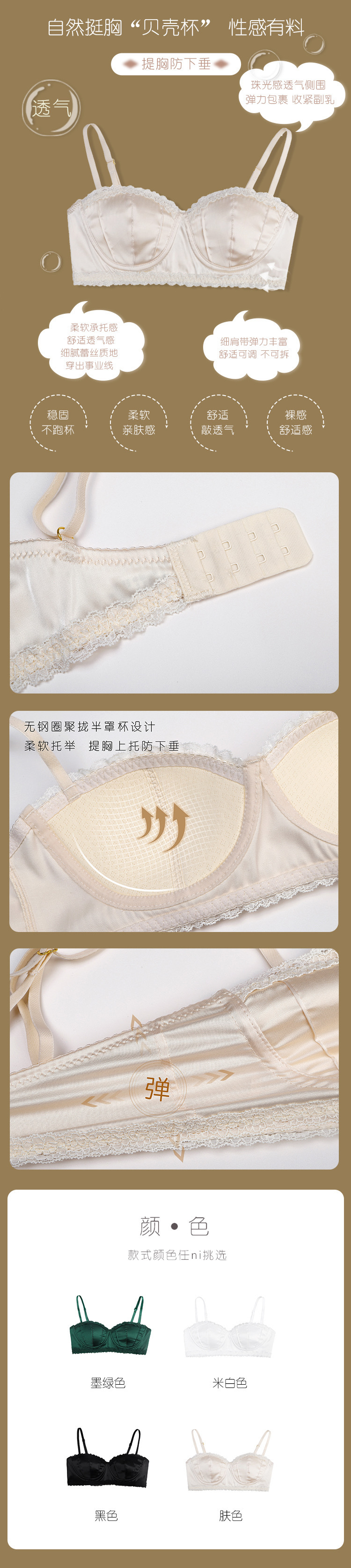 【2件超值装!】法式蕾丝内衣女绸缎小胸聚拢不空杯 无钢圈半杯裹胸舒适透气文胸罩