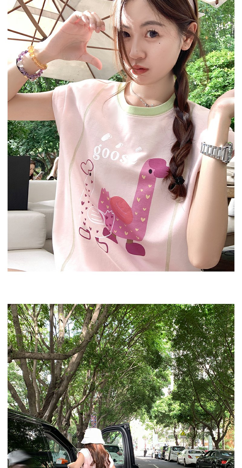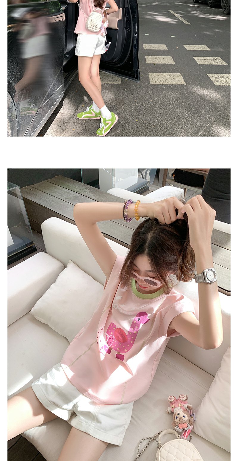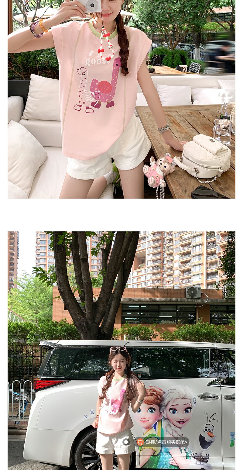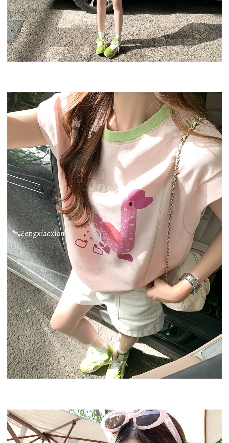 <曾小咸推荐>韩版可爱印花粉色短袖T恤