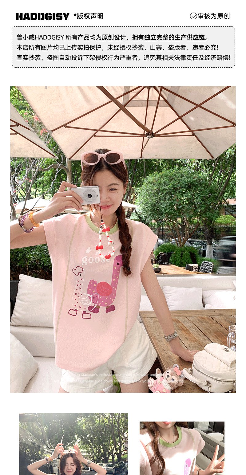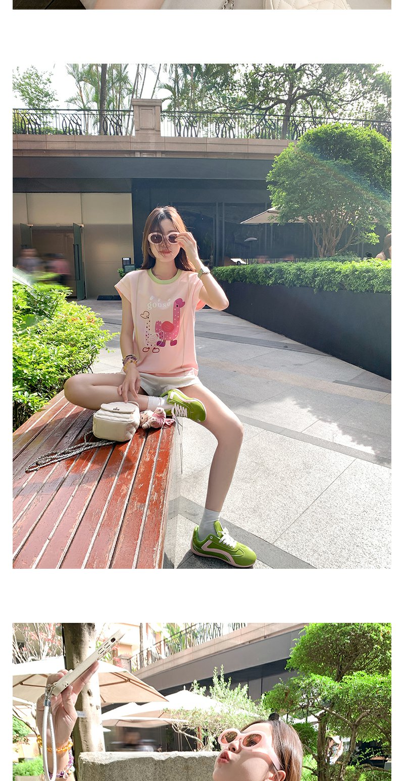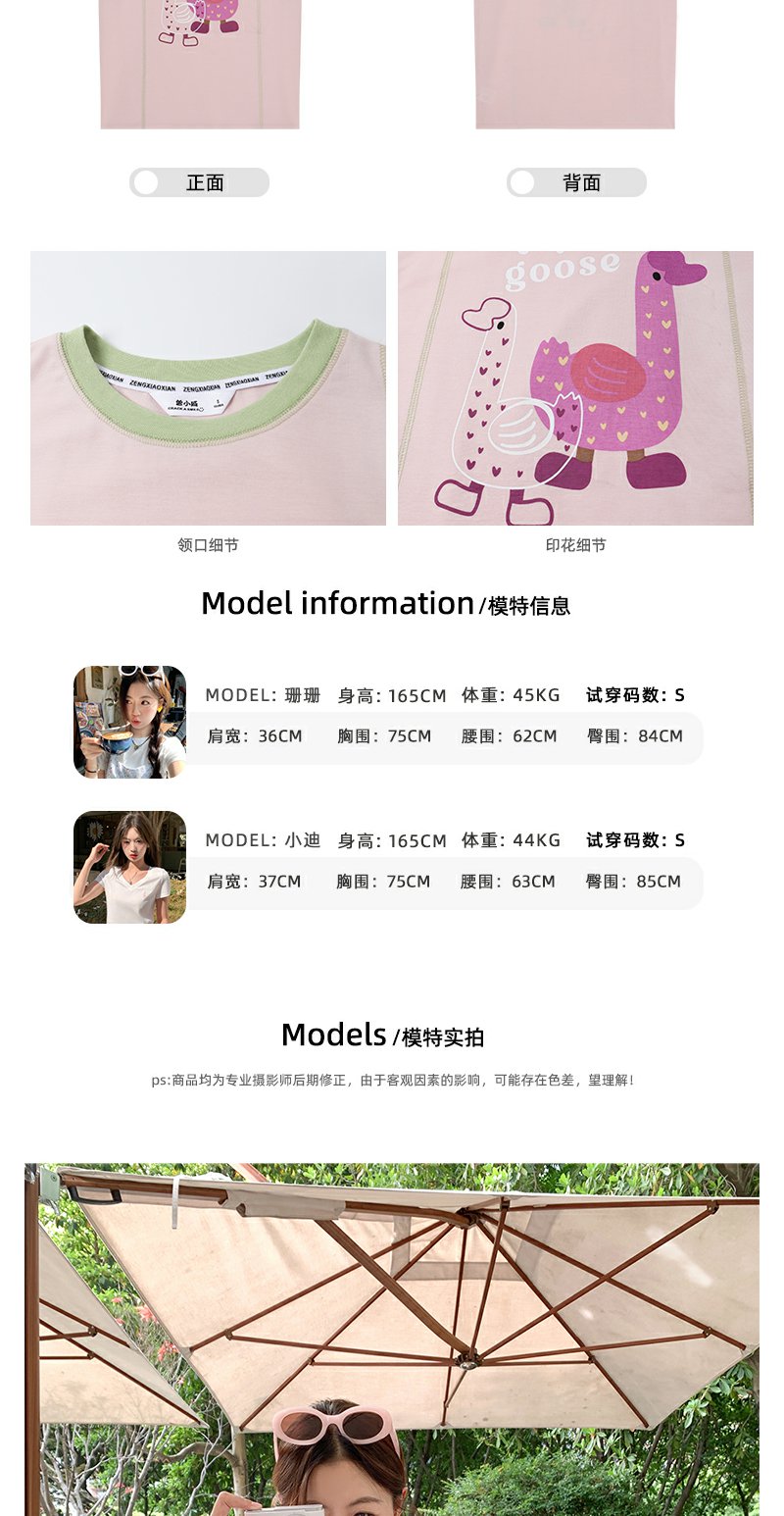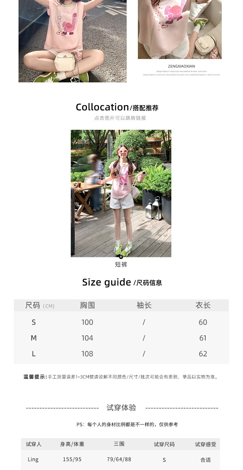 <曾小咸推荐>韩版可爱印花粉色短袖T恤