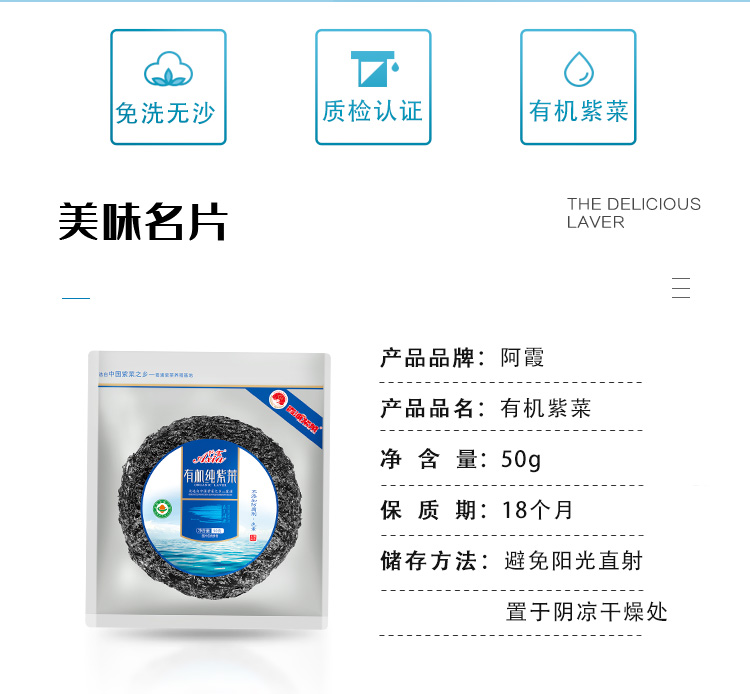 有机纯紫菜 50g/袋装【京东快递送货上门】