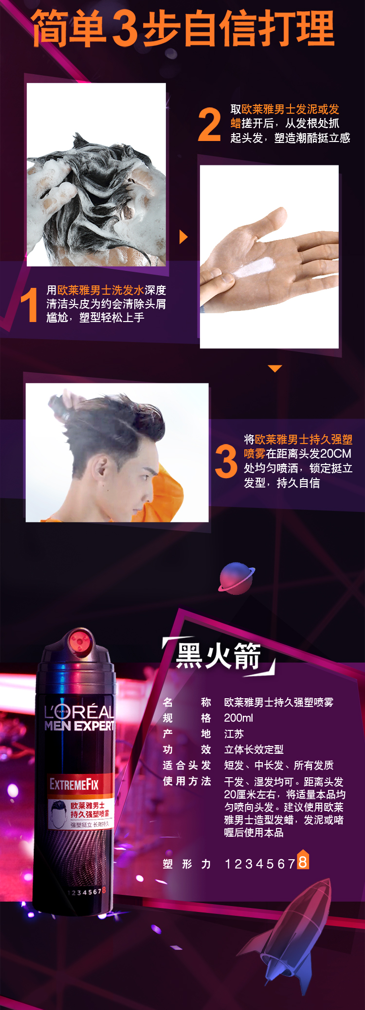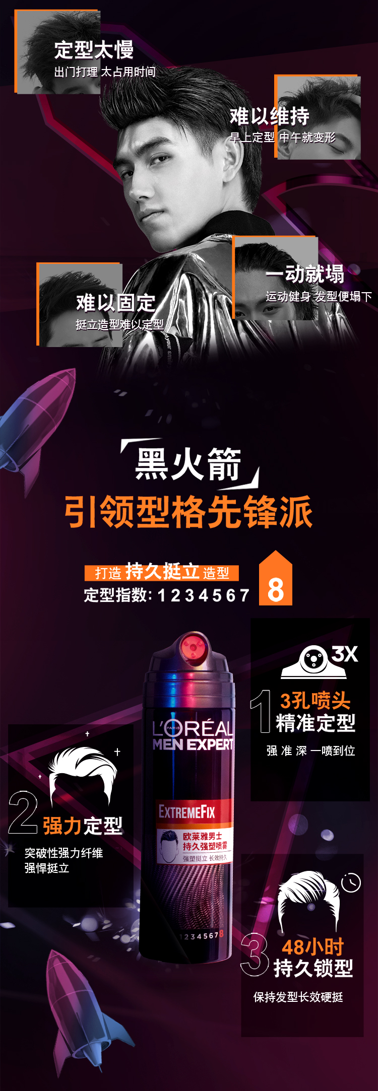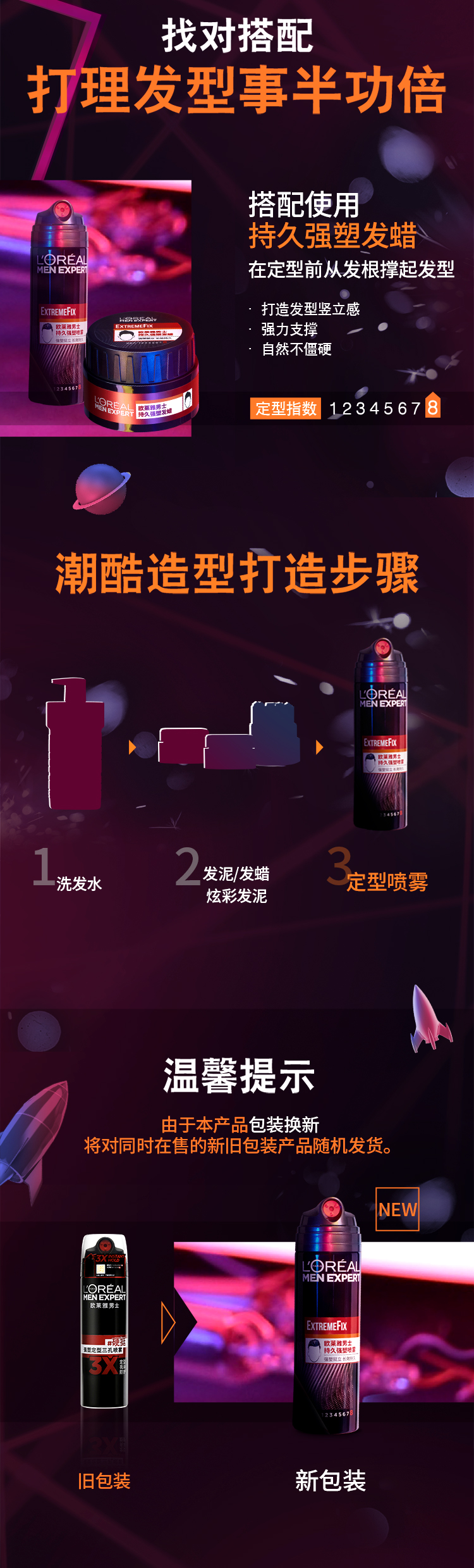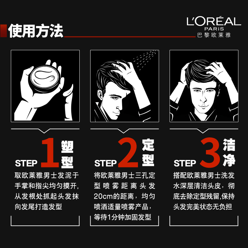 欧莱雅男士哑光发泥自然塑型强力定型喷雾