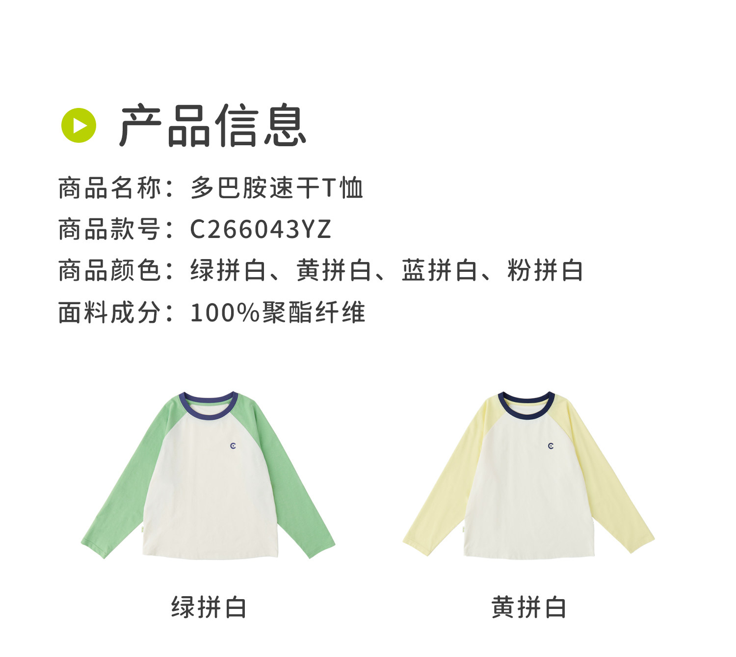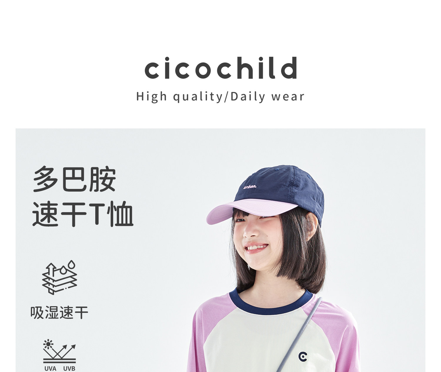 黄拼白、粉拼白预售4.21发 蓝拼白预售5.5发 cicochild2026年春季新款女童多巴胺速干T恤7A抗菌UPF50+防晒上衣