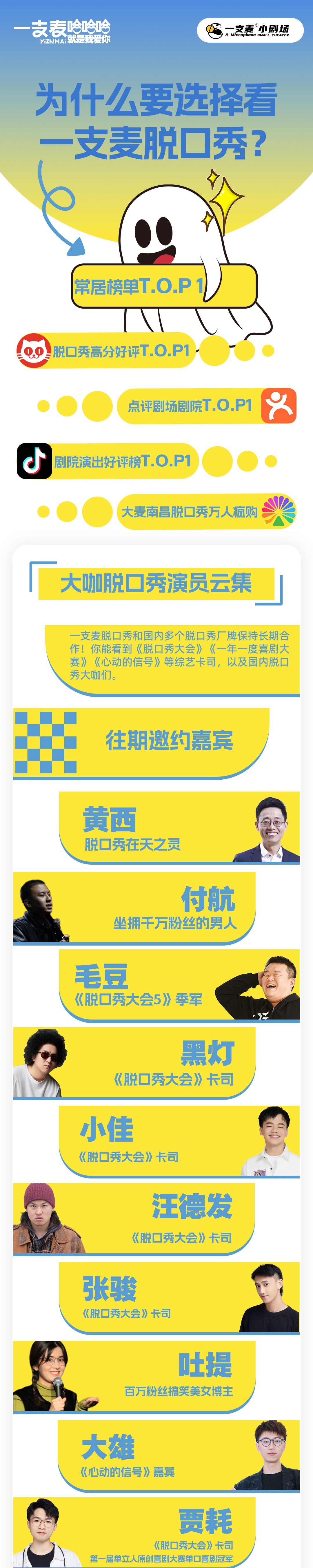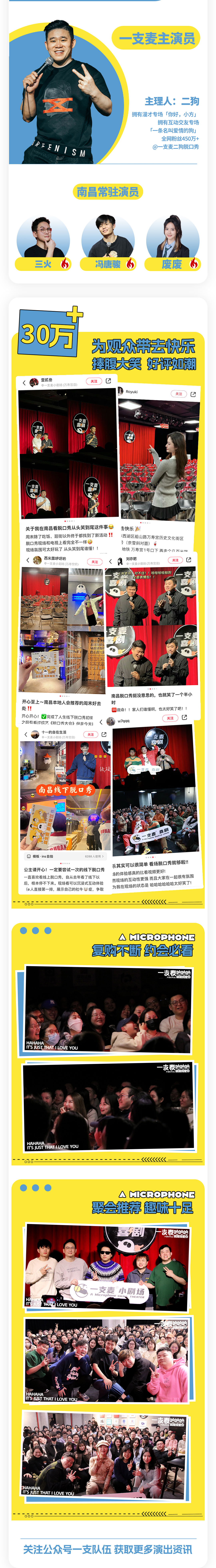 - 一支麦成立于2018年,其小剧场于2021年正式开业,致力于打造年轻人更喜欢的城市文娱新空间。目前主营单口喜剧、脱口秀、漫才、即兴喜剧以及近景魔术等商业演出,是一支麦喜剧的常驻场地。