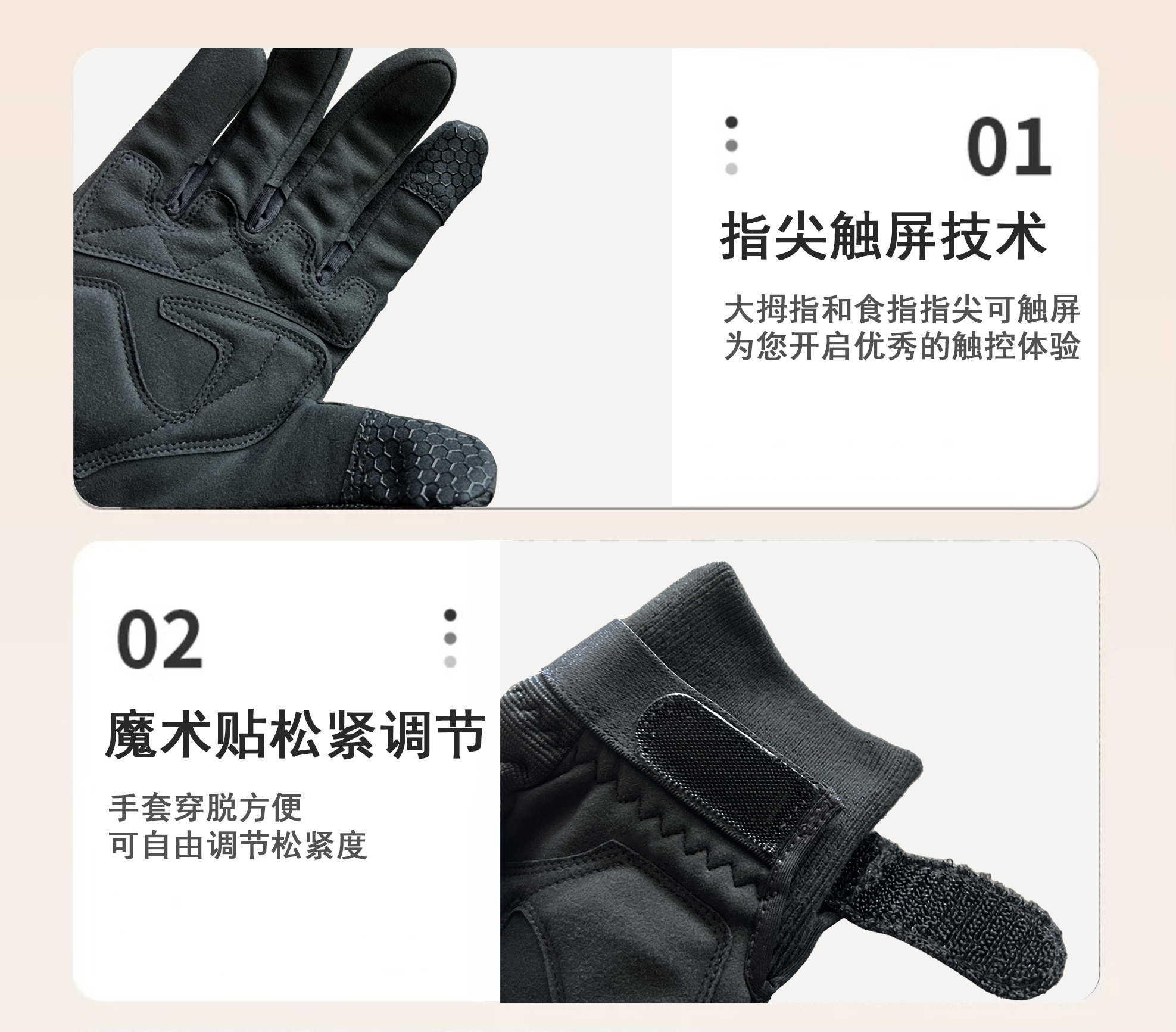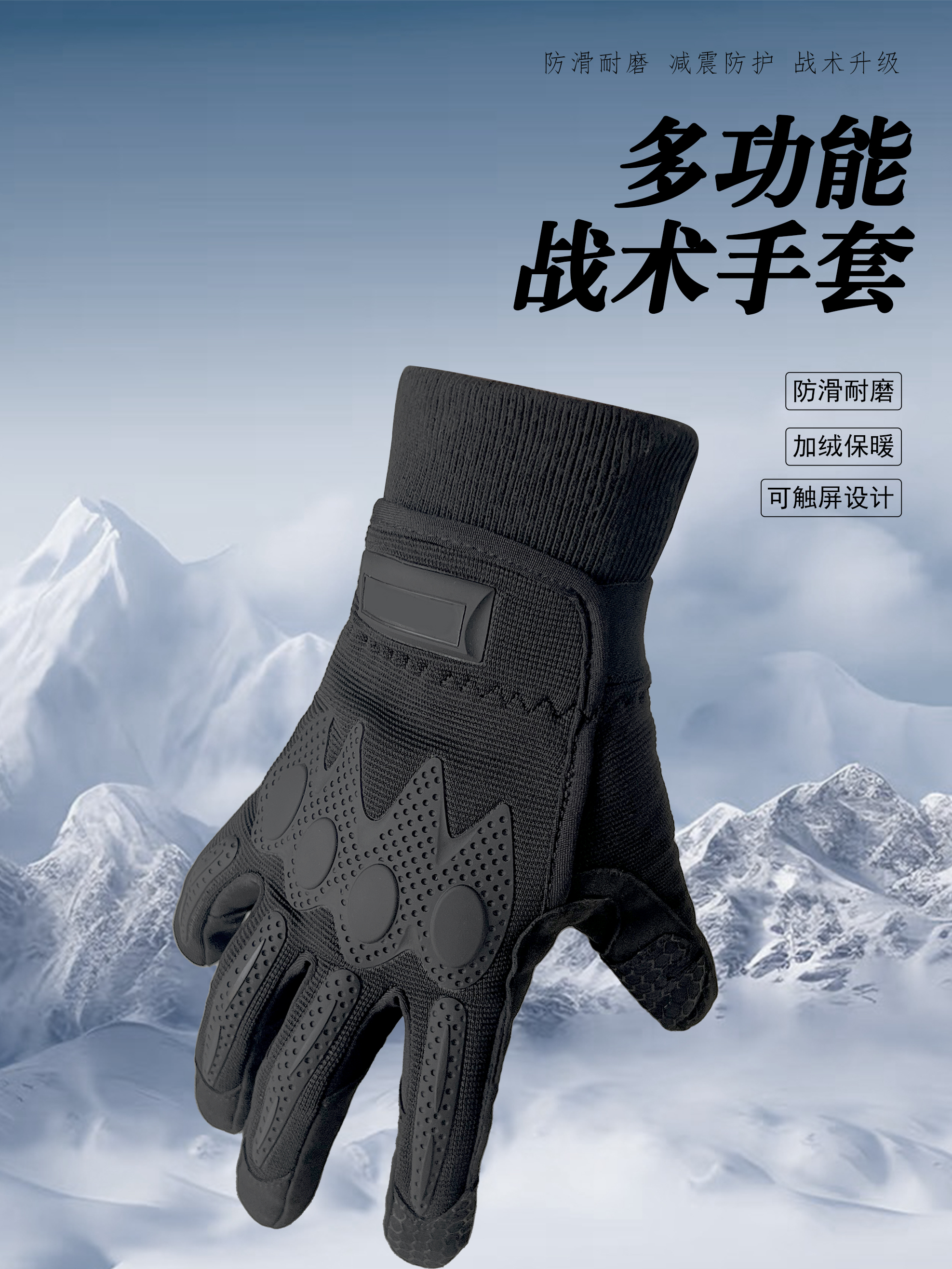 《铠握》多功能战术手套 加绒防寒 高敏触屏 防刮耐磨 外抗风内锁温 户外好搭档