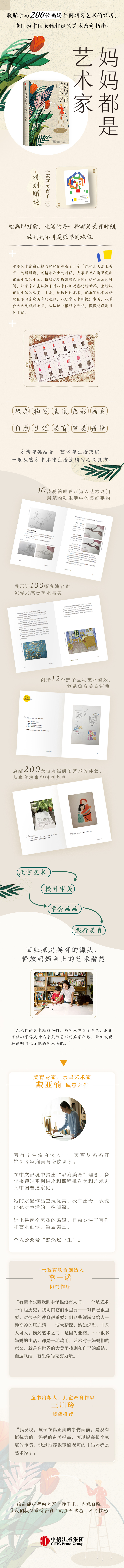 “我发现,孩子在真正美的事物面前,是没有抵抗力的。妈妈的审美提高,可以提高整个家庭的审美,诚恳推荐戴亚楠老师的《妈妈都是艺术家》。”——童书出版人,儿童教育作家 三川玲