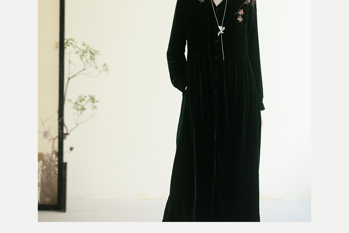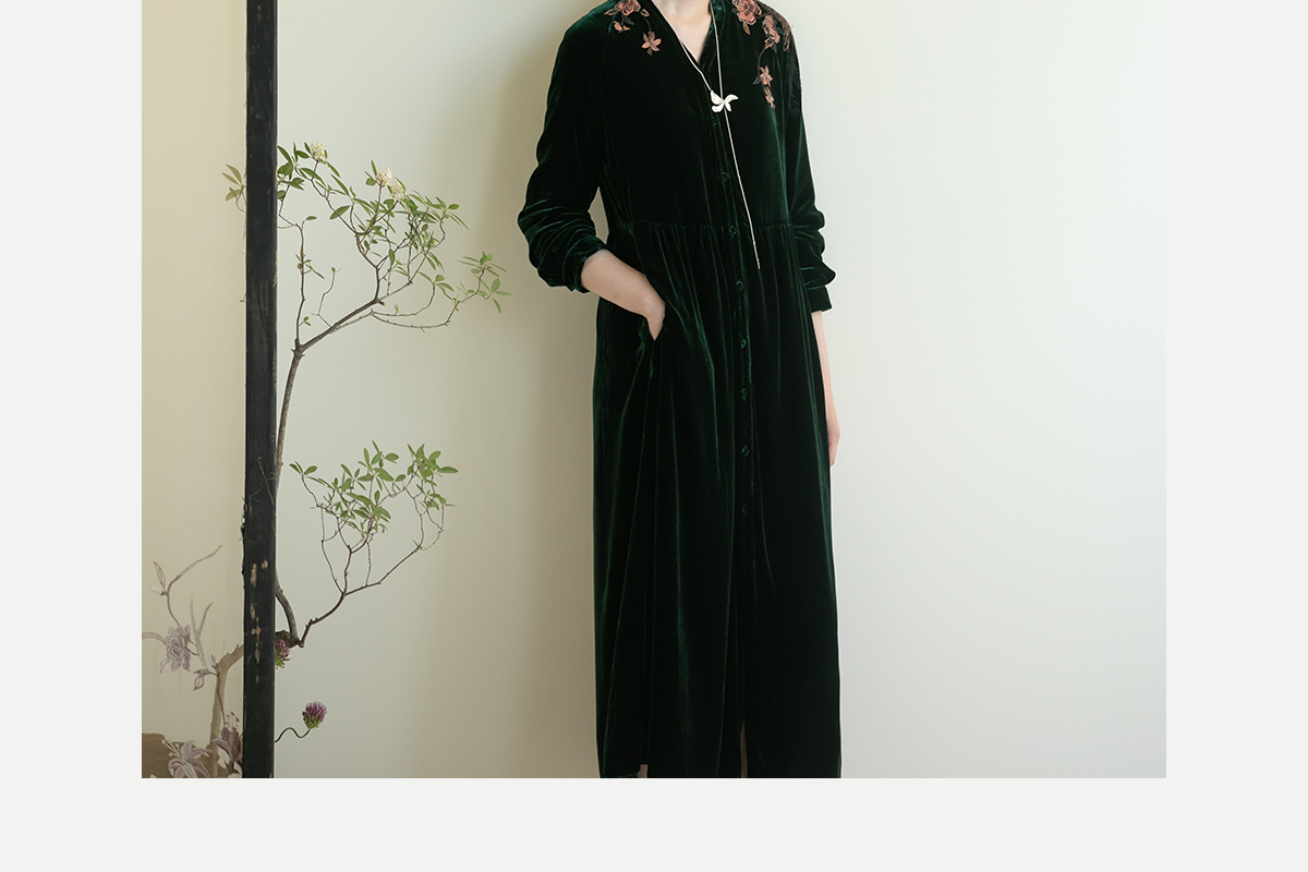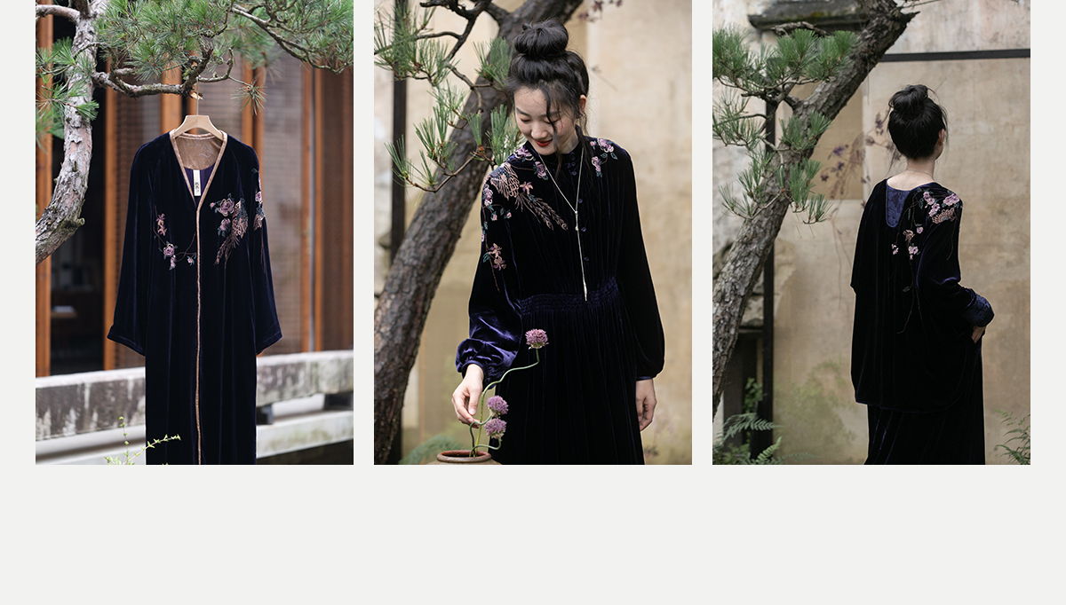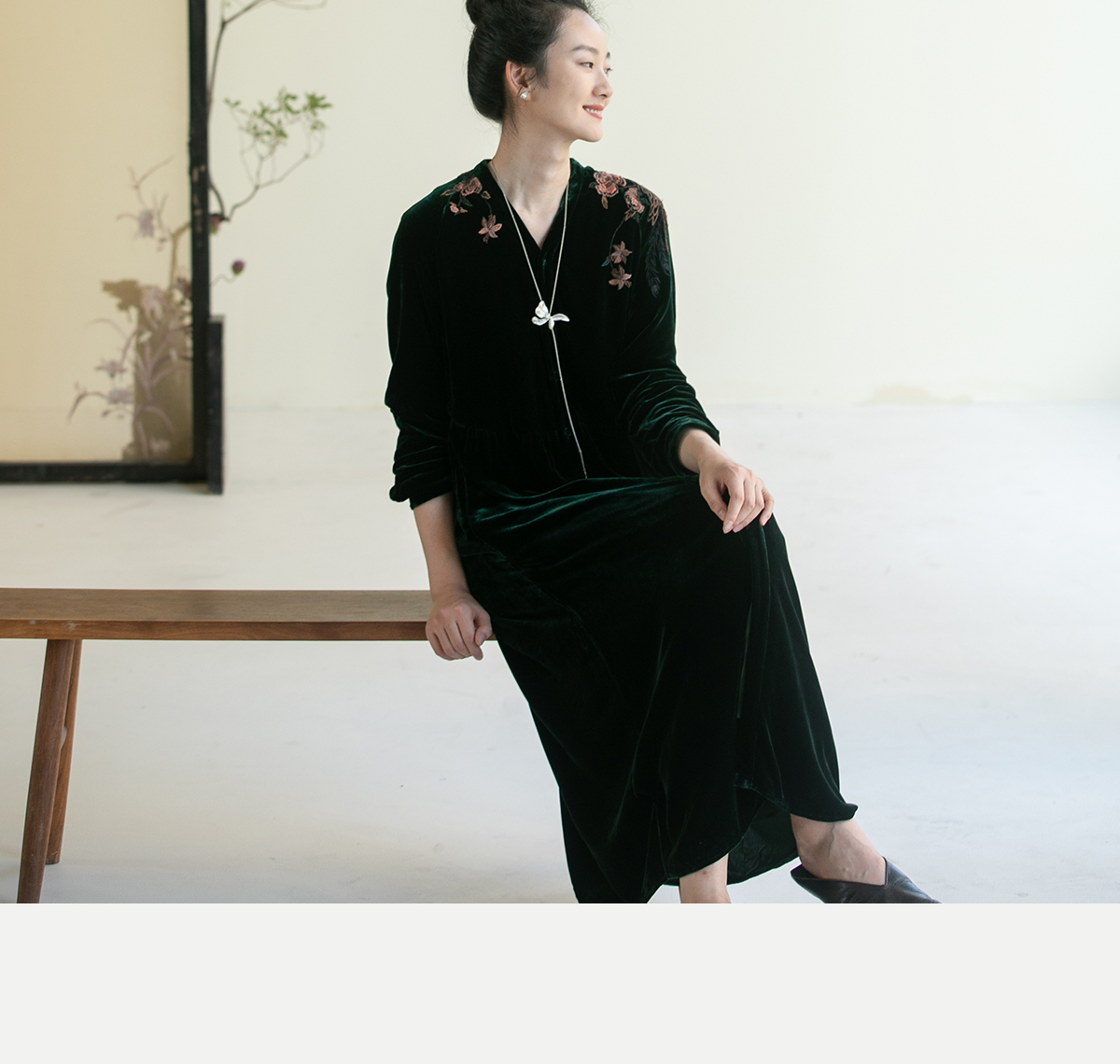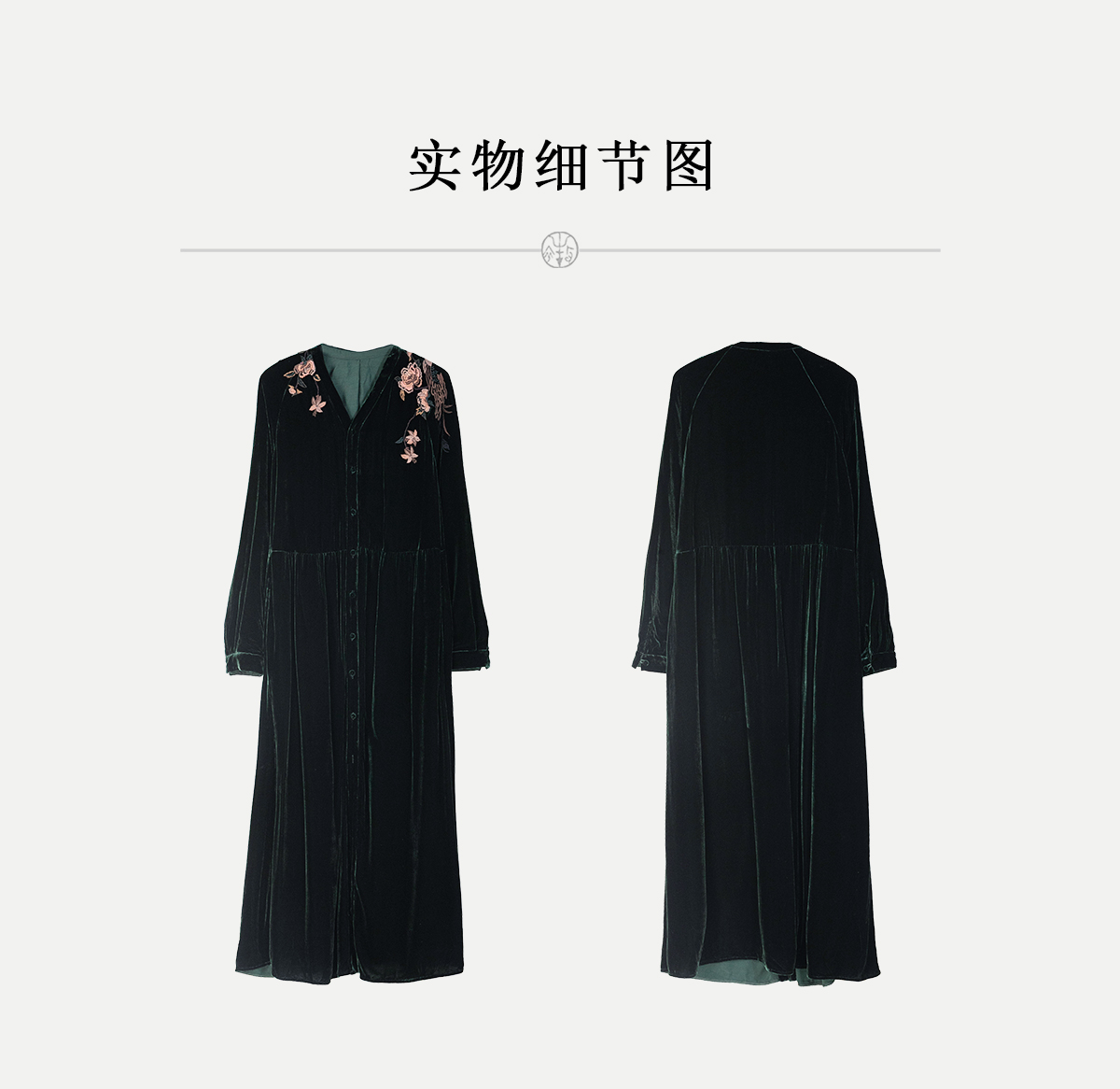 牧衣游原创丝绒手工刺绣连衣裙 限量福利款 暮雪【不支持会员折】