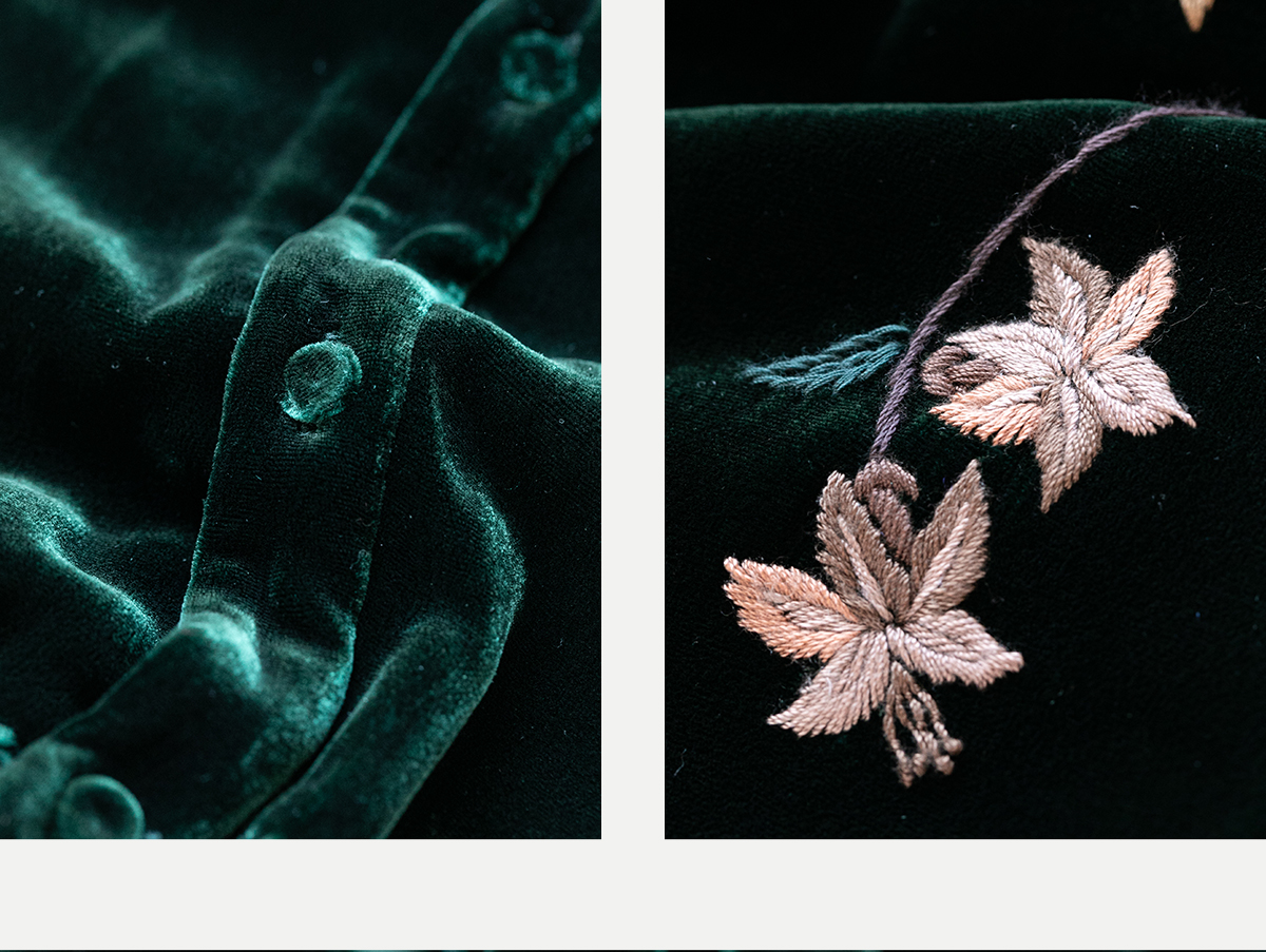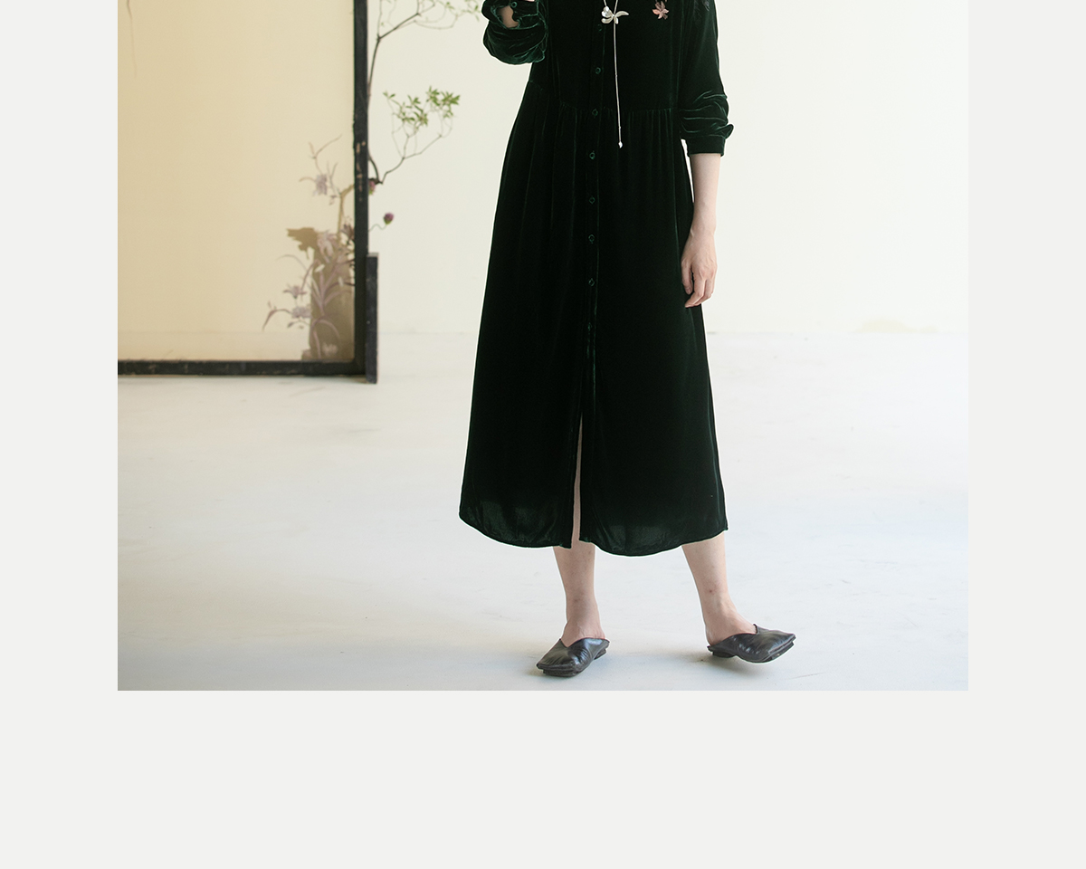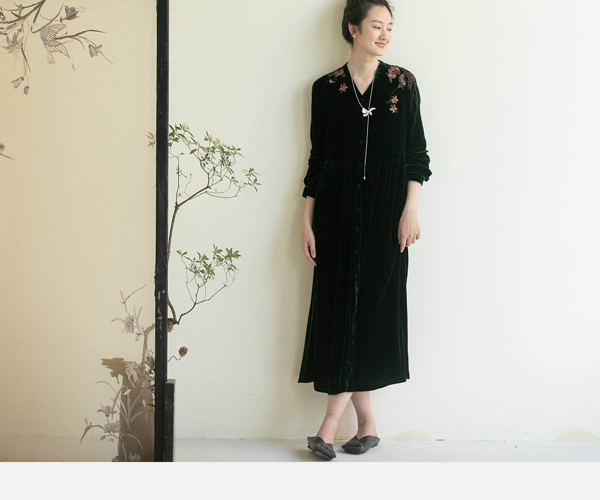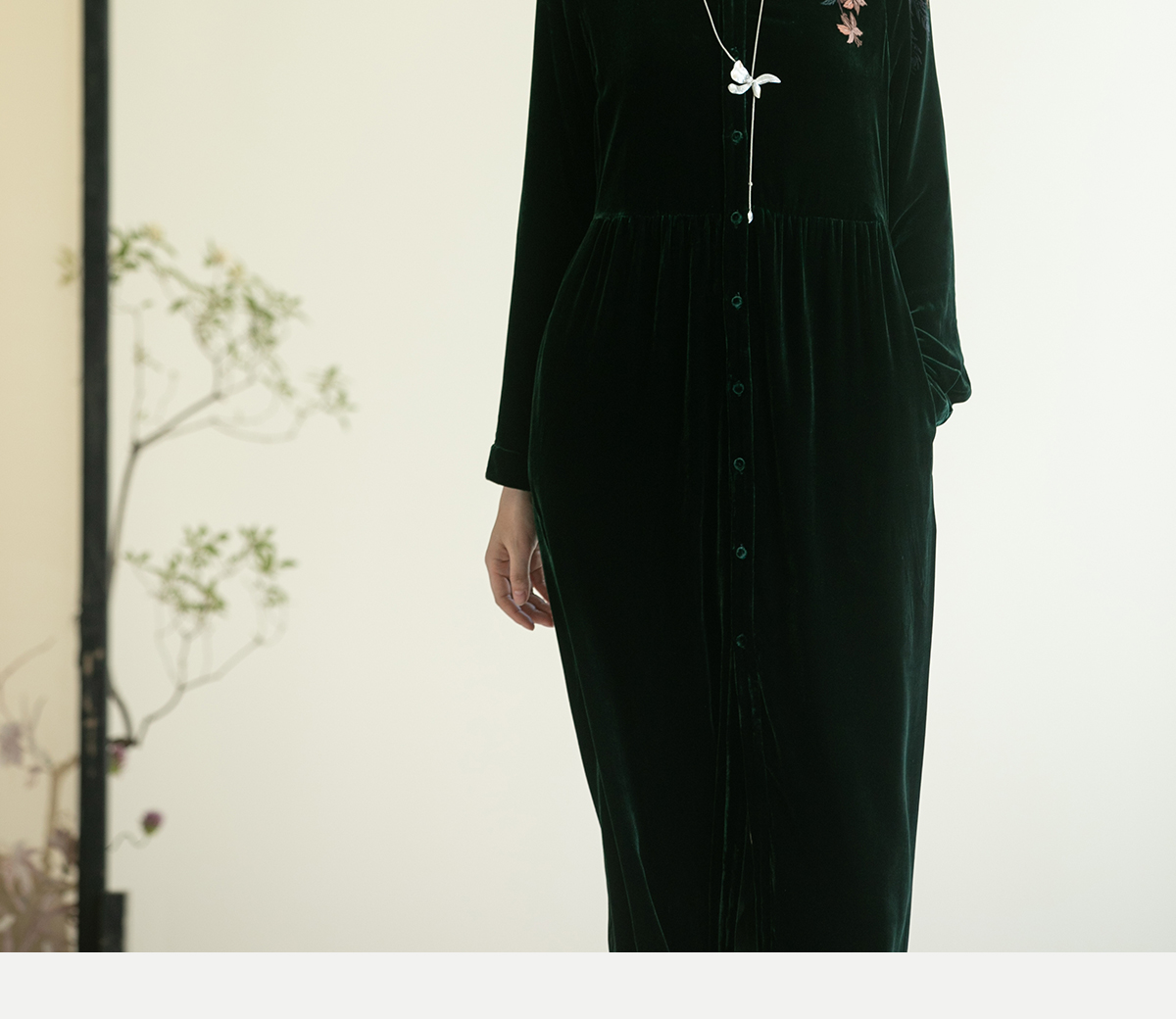 牧衣游原创丝绒手工刺绣连衣裙 限量福利款 暮雪【不支持会员折】