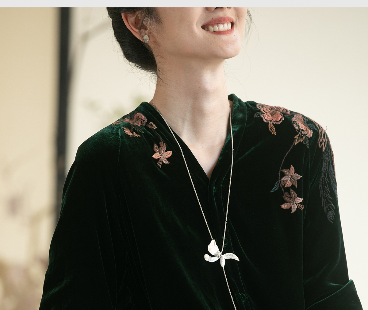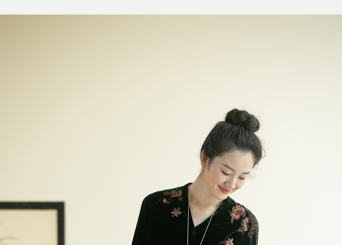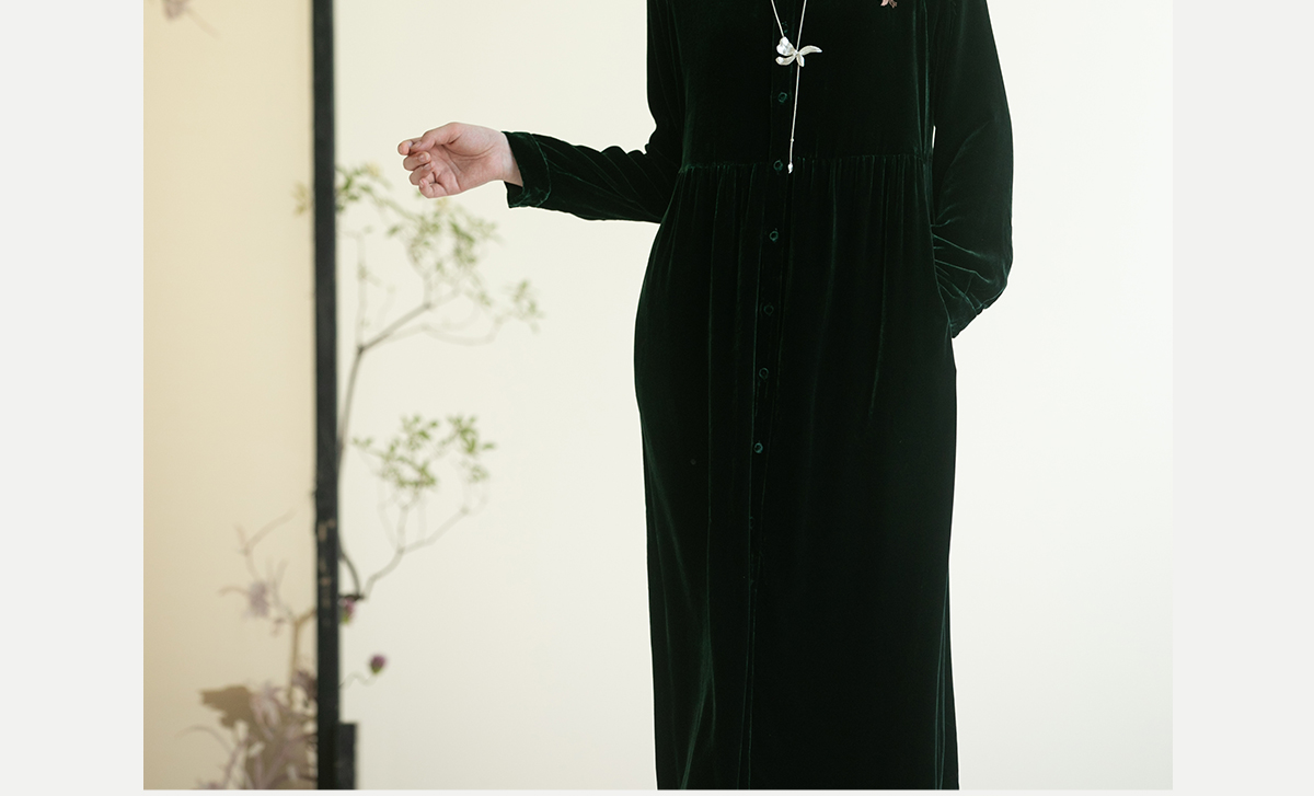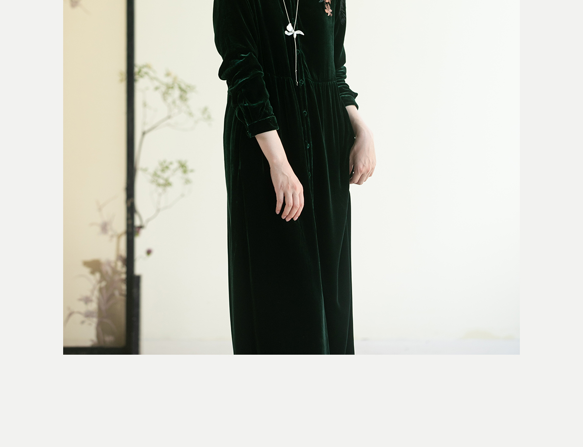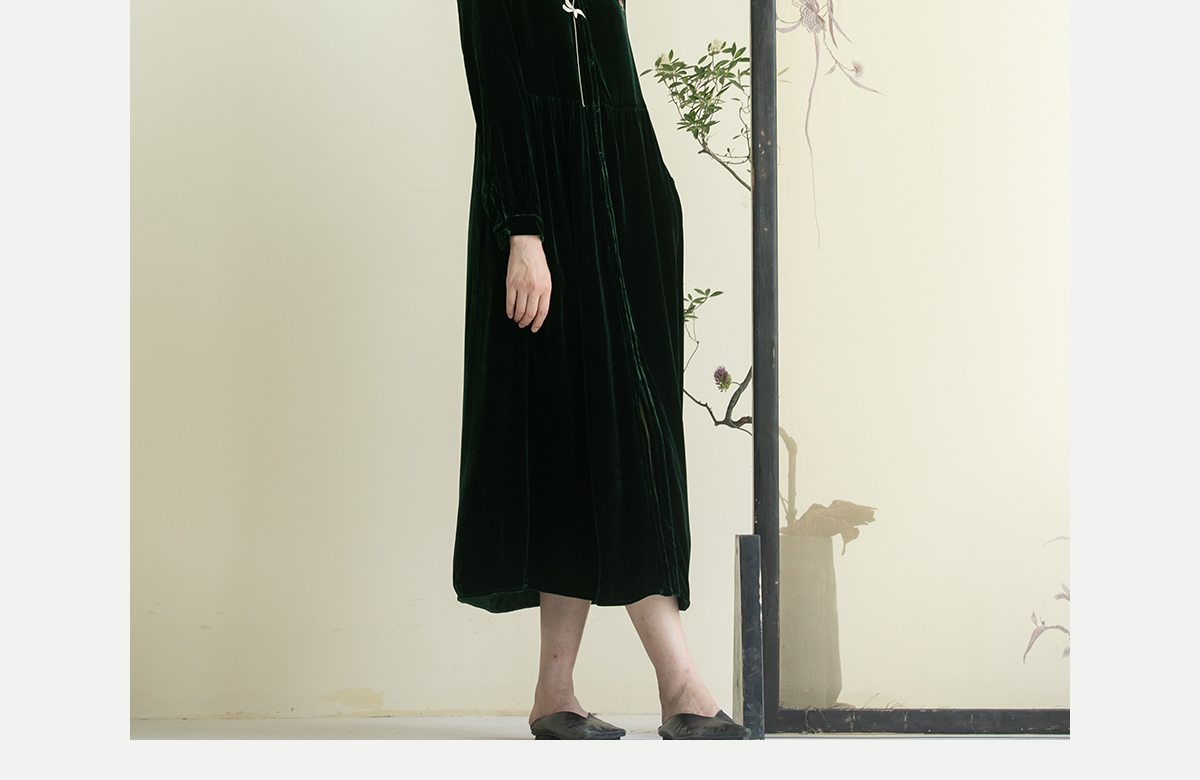 牧衣游原创丝绒手工刺绣连衣裙 限量福利款 暮雪【不支持会员折】