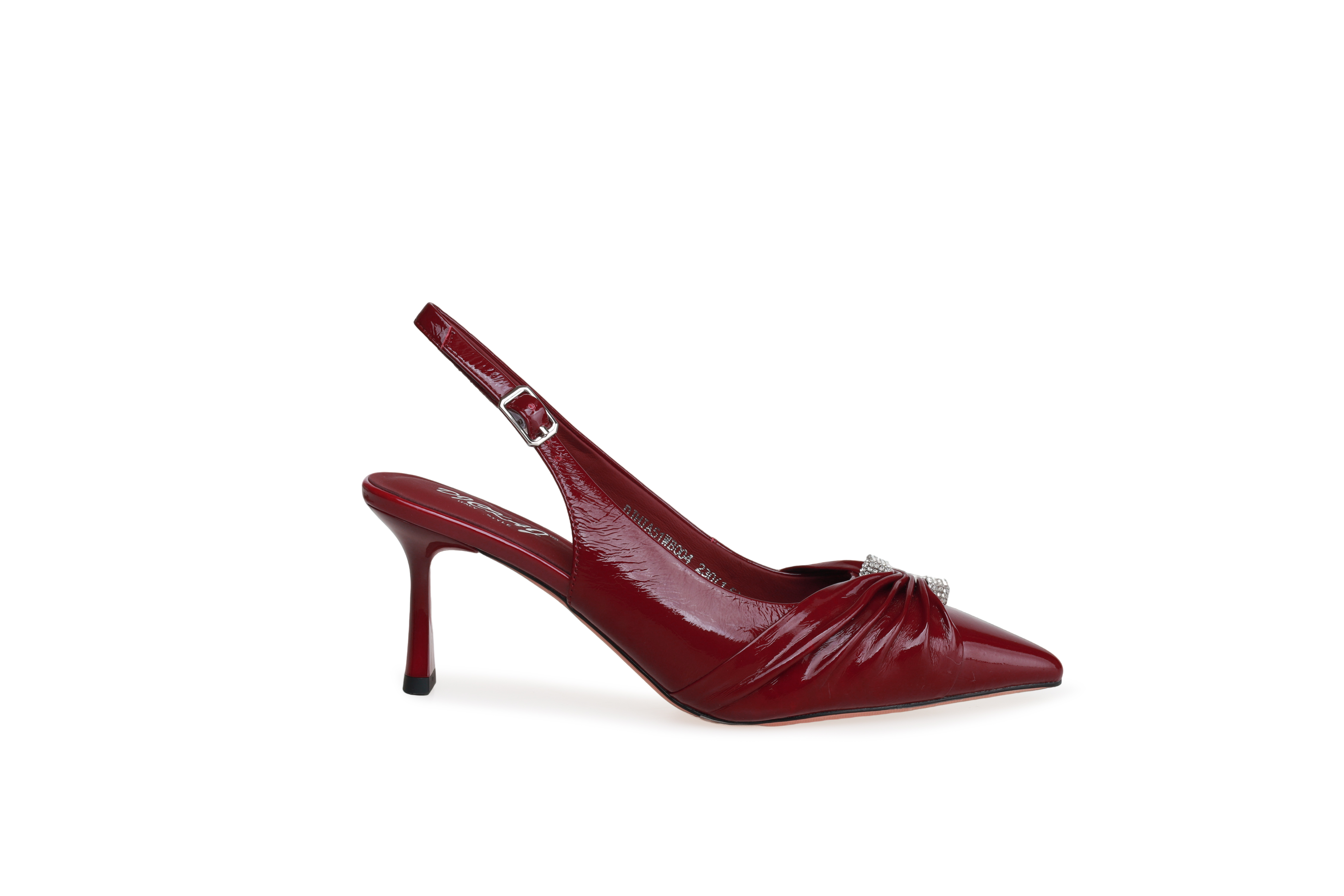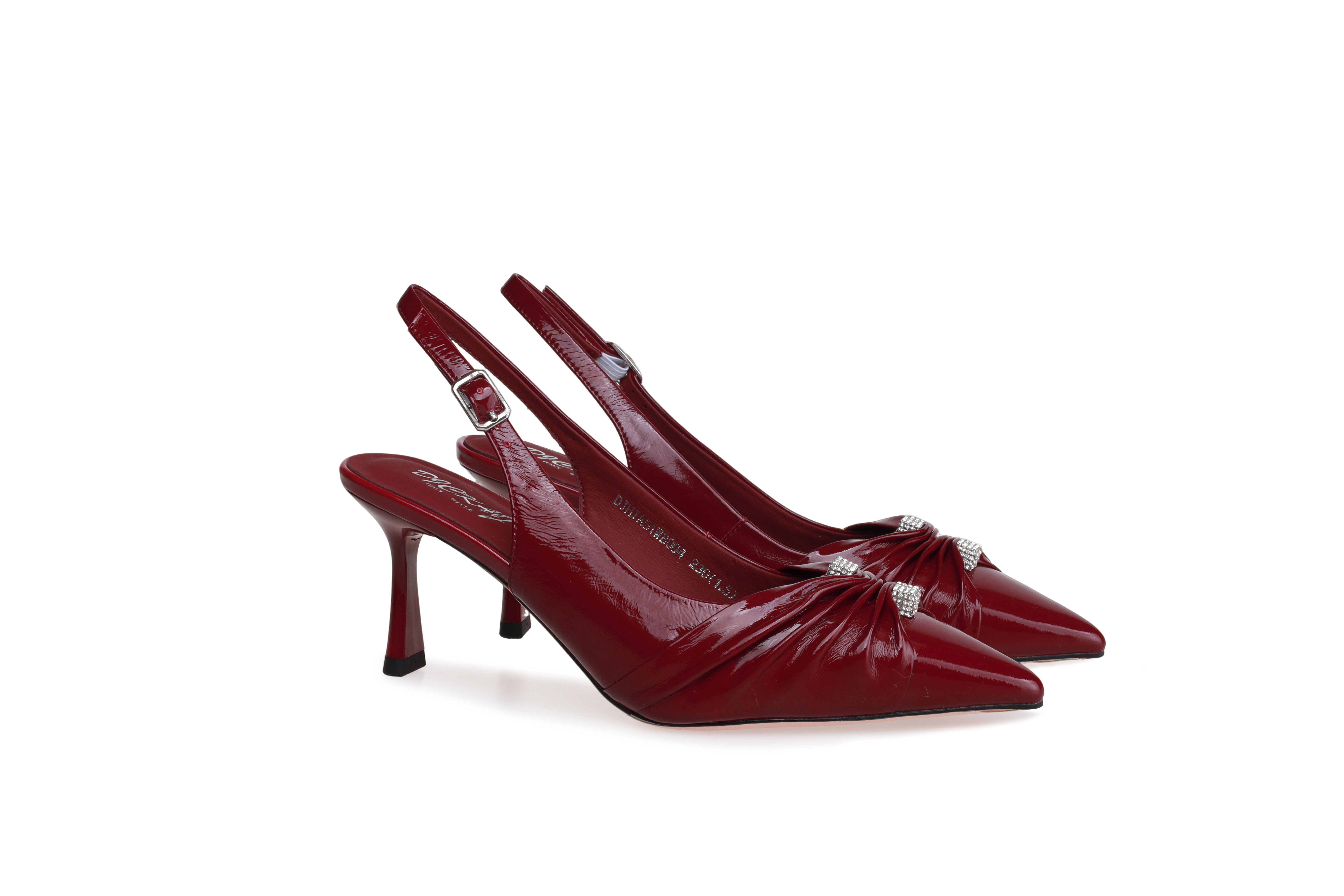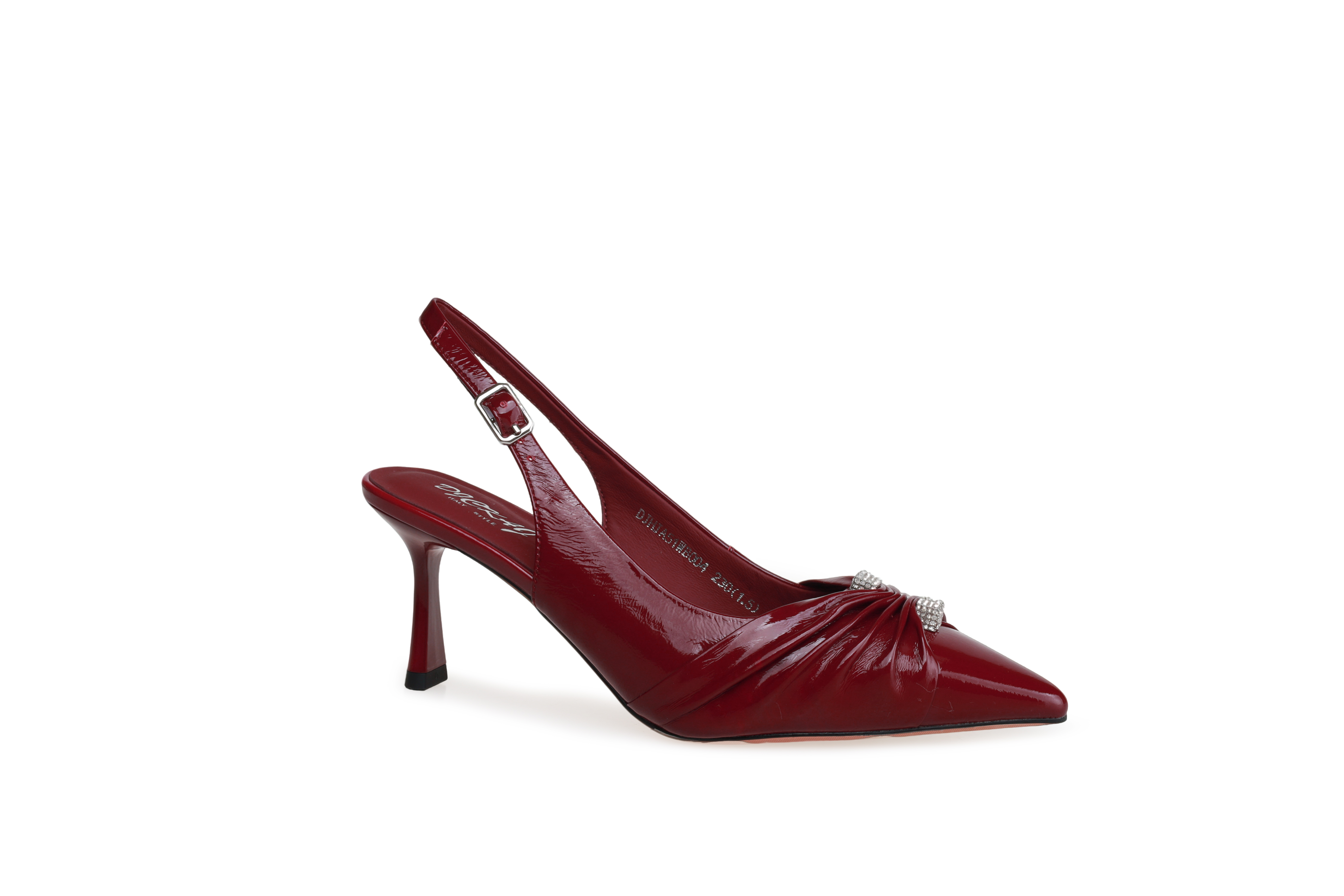 豪麟名鞋奥莱迪嘉女鞋半凉鞋牛移膜革DJHJA51WB004酒红色 原价1660元