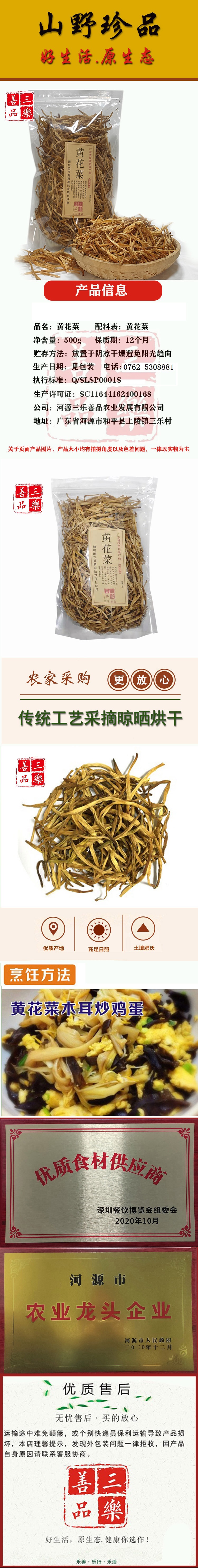 【三乐善品】黄花菜干500g