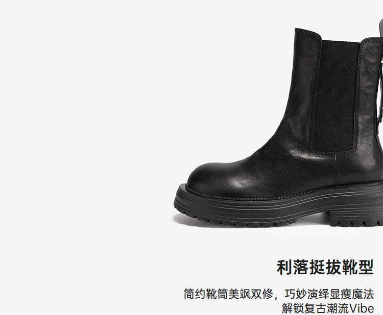 MIO米奥新款简约风酷感厚底圆头切尔西靴小众黑色靴子女 M245642018