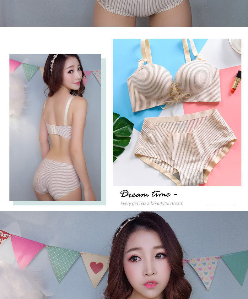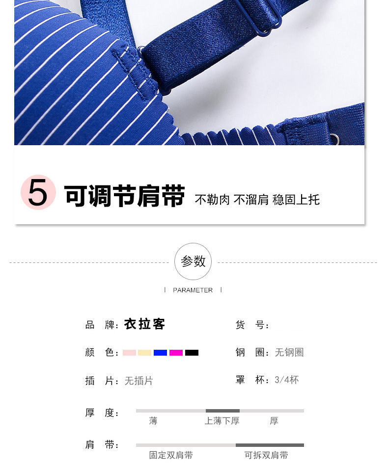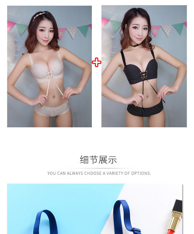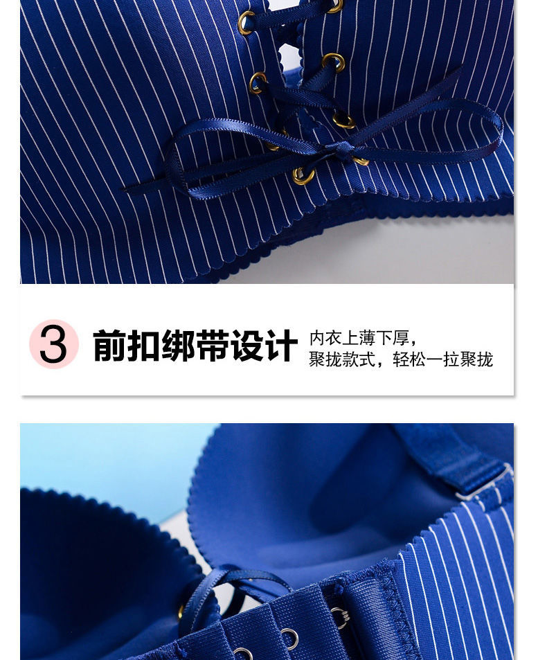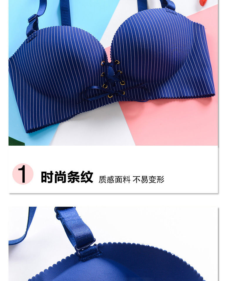 一片无痕内衣女小胸聚拢无钢圈调整型收副乳文胸罩性感惑套装条纹