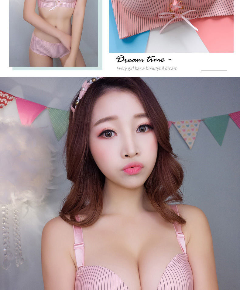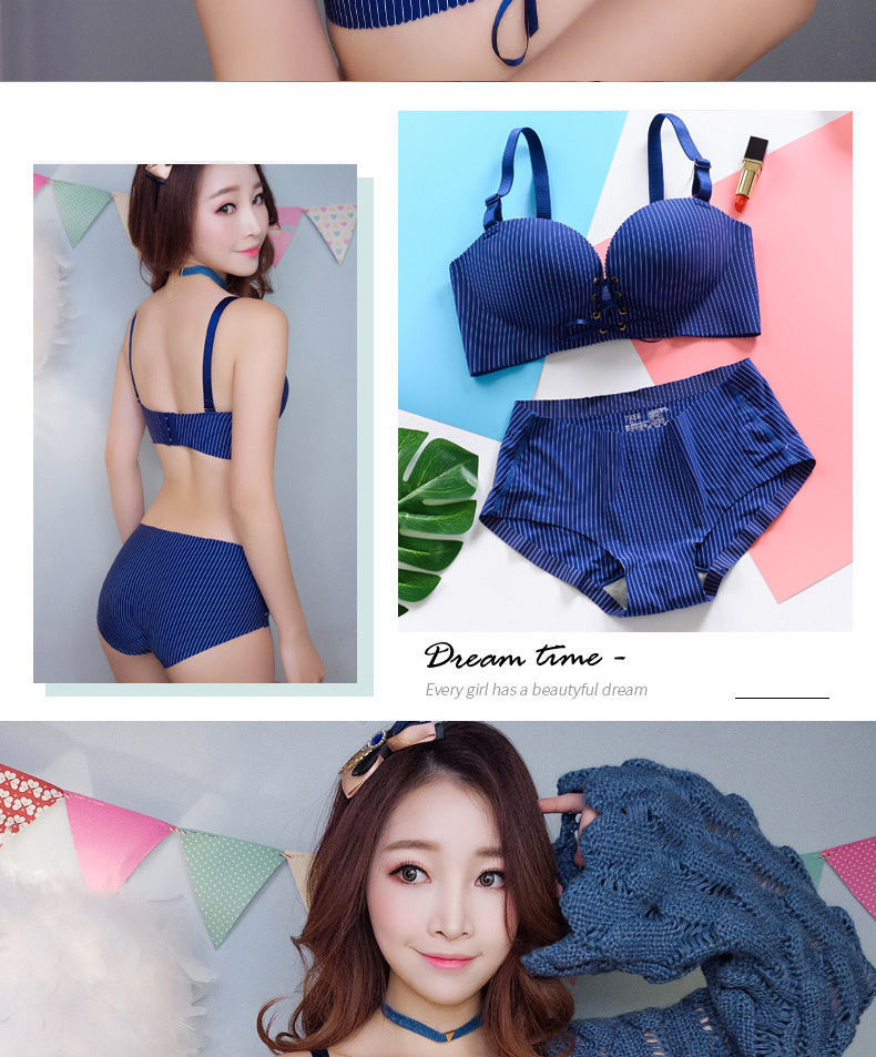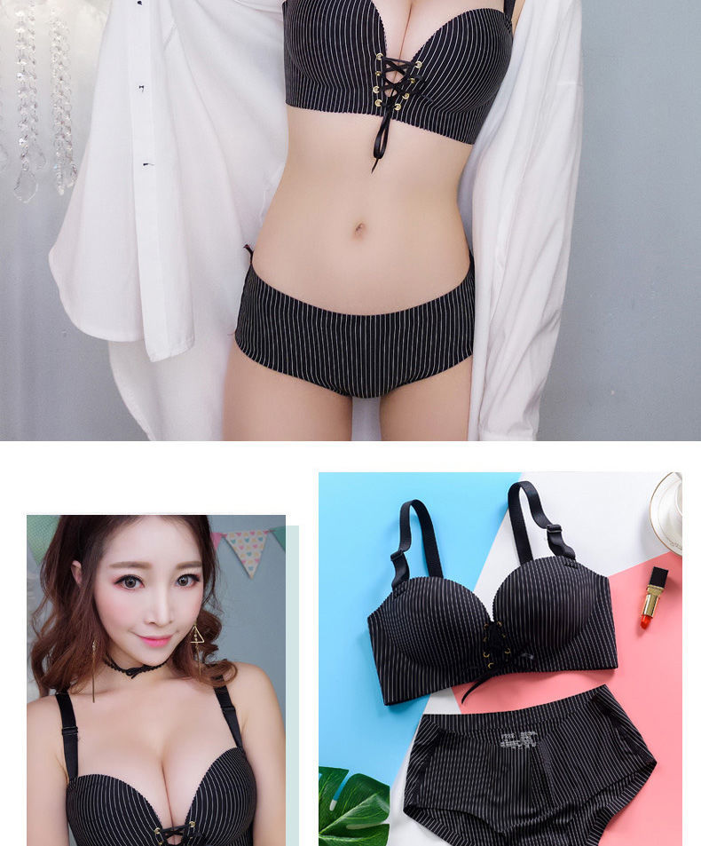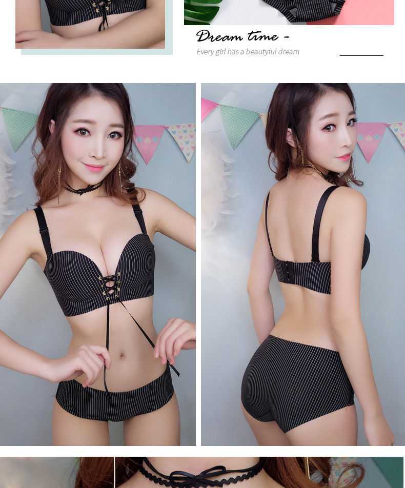 一片无痕内衣女小胸聚拢无钢圈调整型收副乳文胸罩性感惑套装条纹