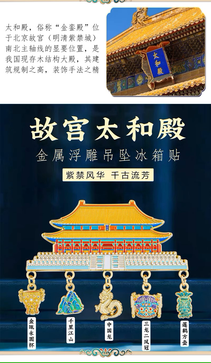 北京故宫太和殿冰箱贴磁铁金属吊坠设计中式国风文创旅游纪念品