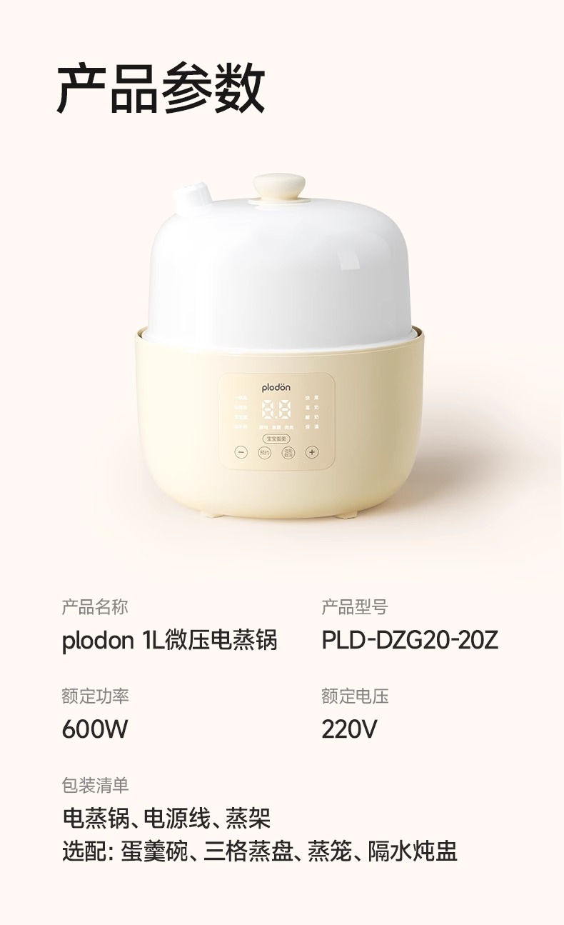【不接平台单】浦利顿新品电蒸锅小陶气辅食锅宝宝电炖锅PLD-DZG20-20Z