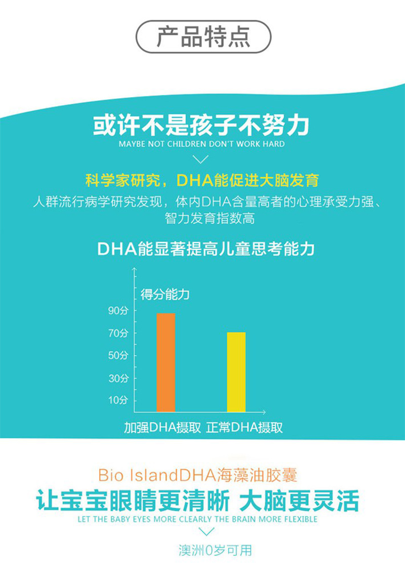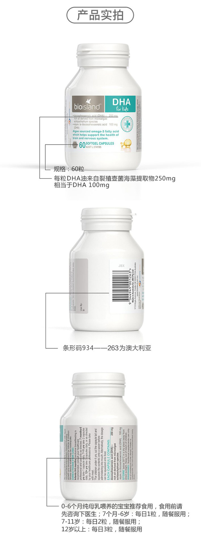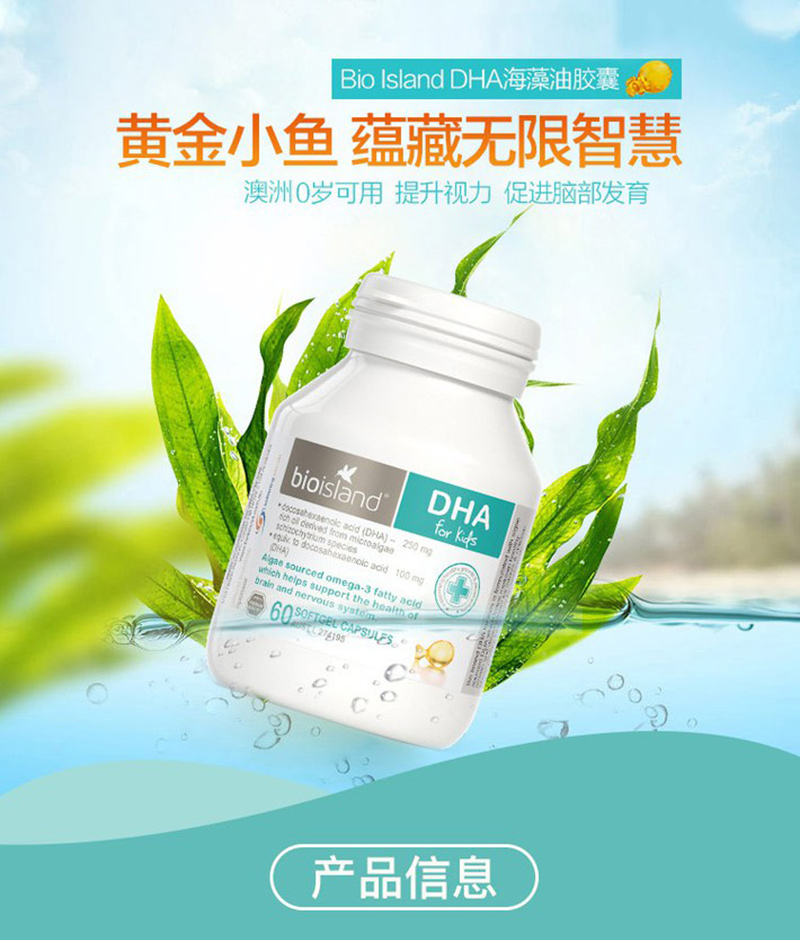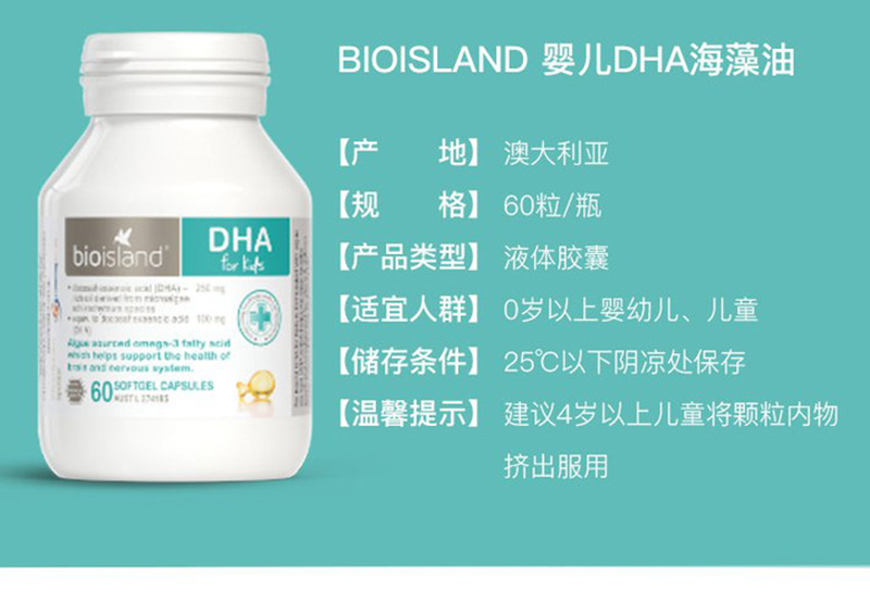 澳洲Bio Island 婴幼儿童海藻油软胶囊DHA60粒
