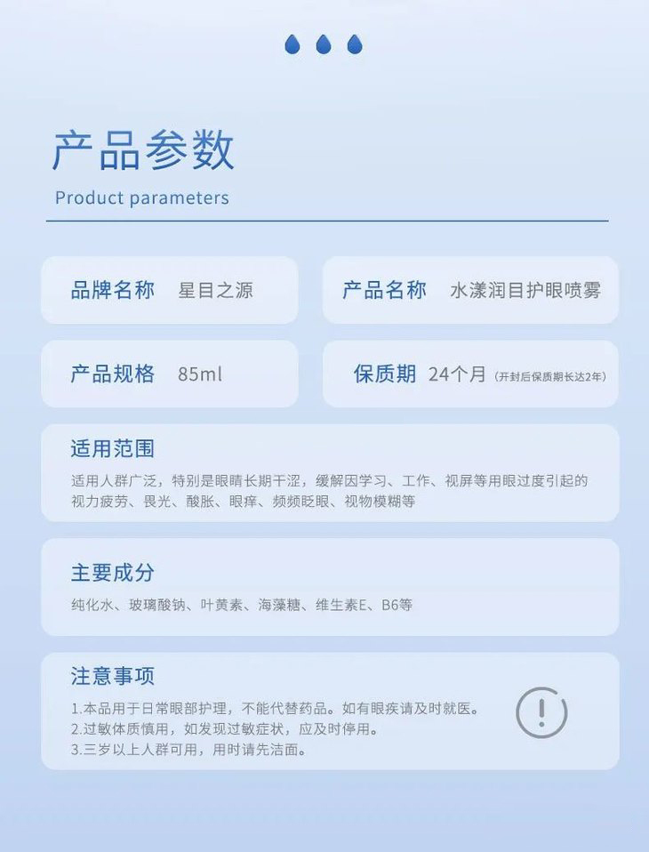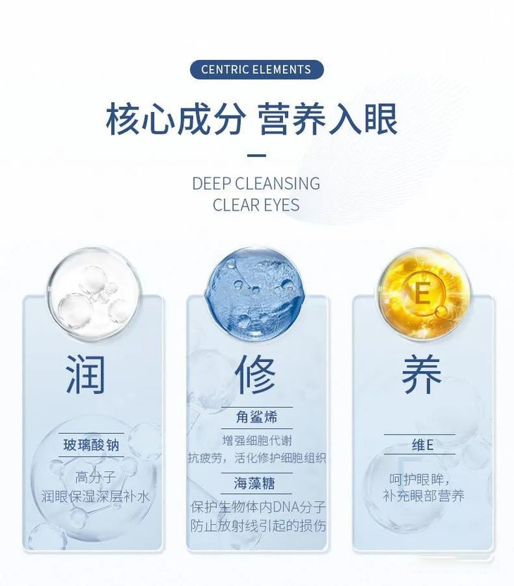 💧润:高分子玻尿酸钠润眼保湿、深层补水