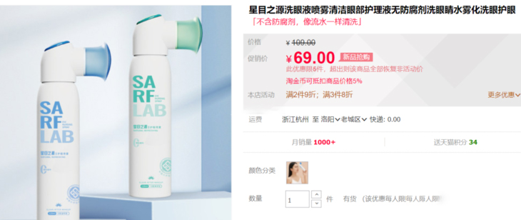 商品名称:星目之源Sarflab护眼喷雾120ml/护眼喷雾人工泪液85ml 温和款/清凉款/儿童85ml 温和款