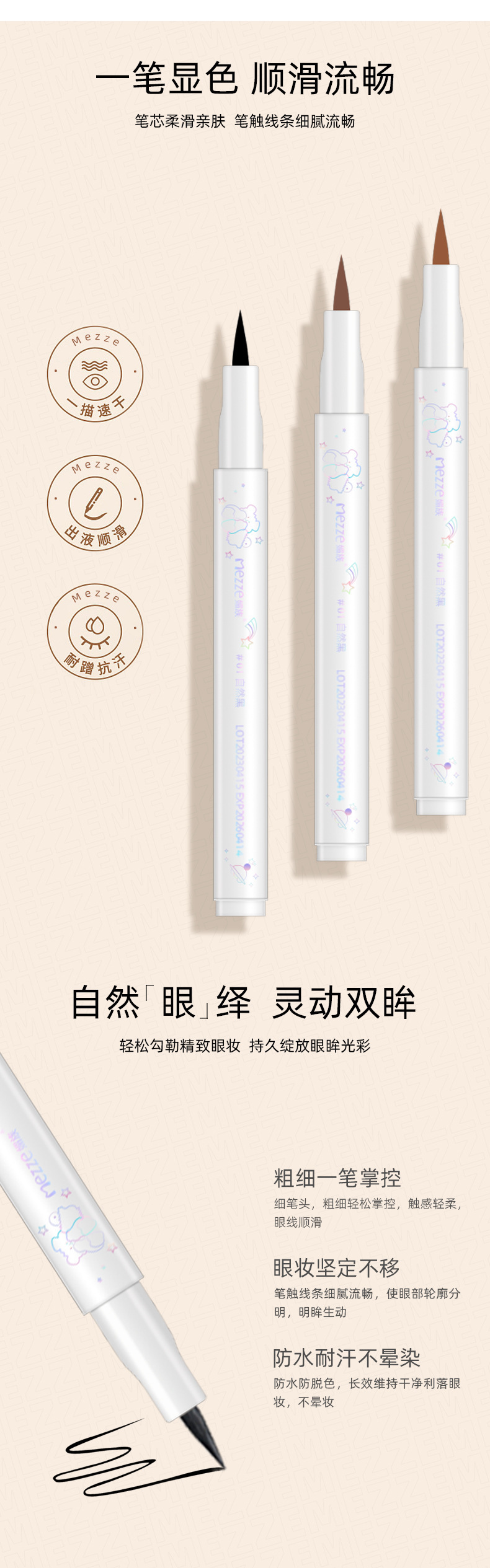 「买1送1!9.9到手两支」媚族魅彩灵眸眼线液笔 防水防汗不晕染眼线笔彩妆