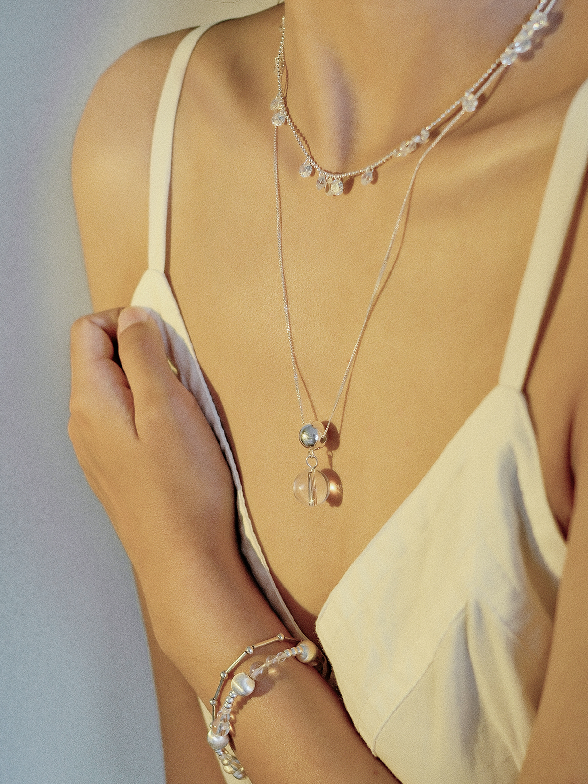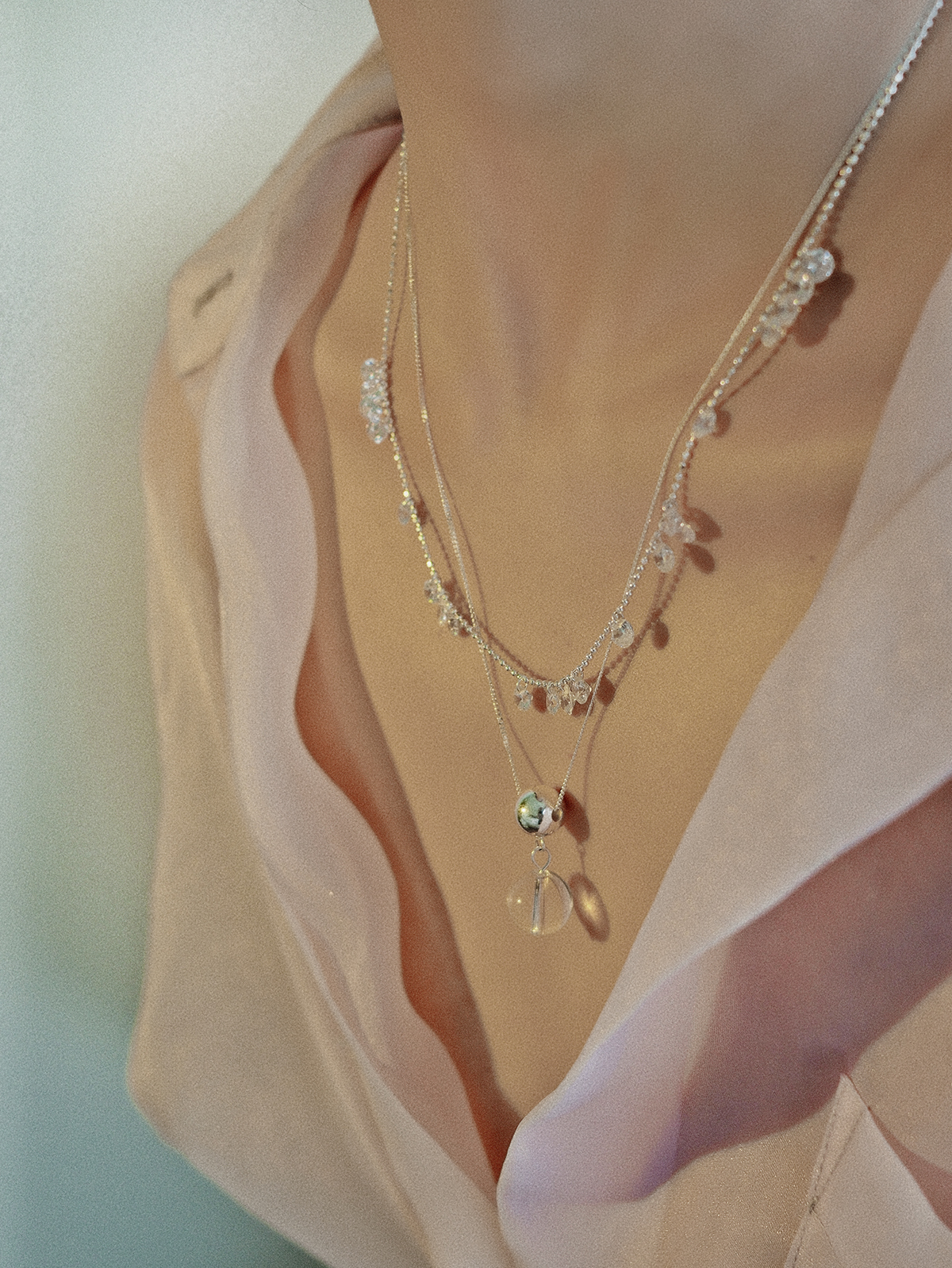 【夏季新款】alodia.co 品牌直发 晨露白水晶双层项链 叠戴锁骨链可拆卸925银手工串珠设计款小众高级感