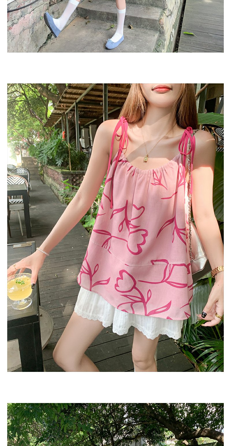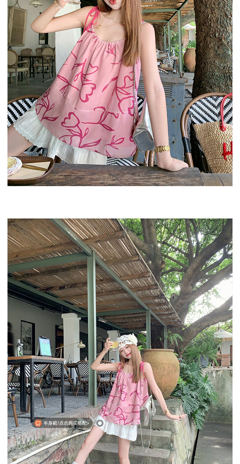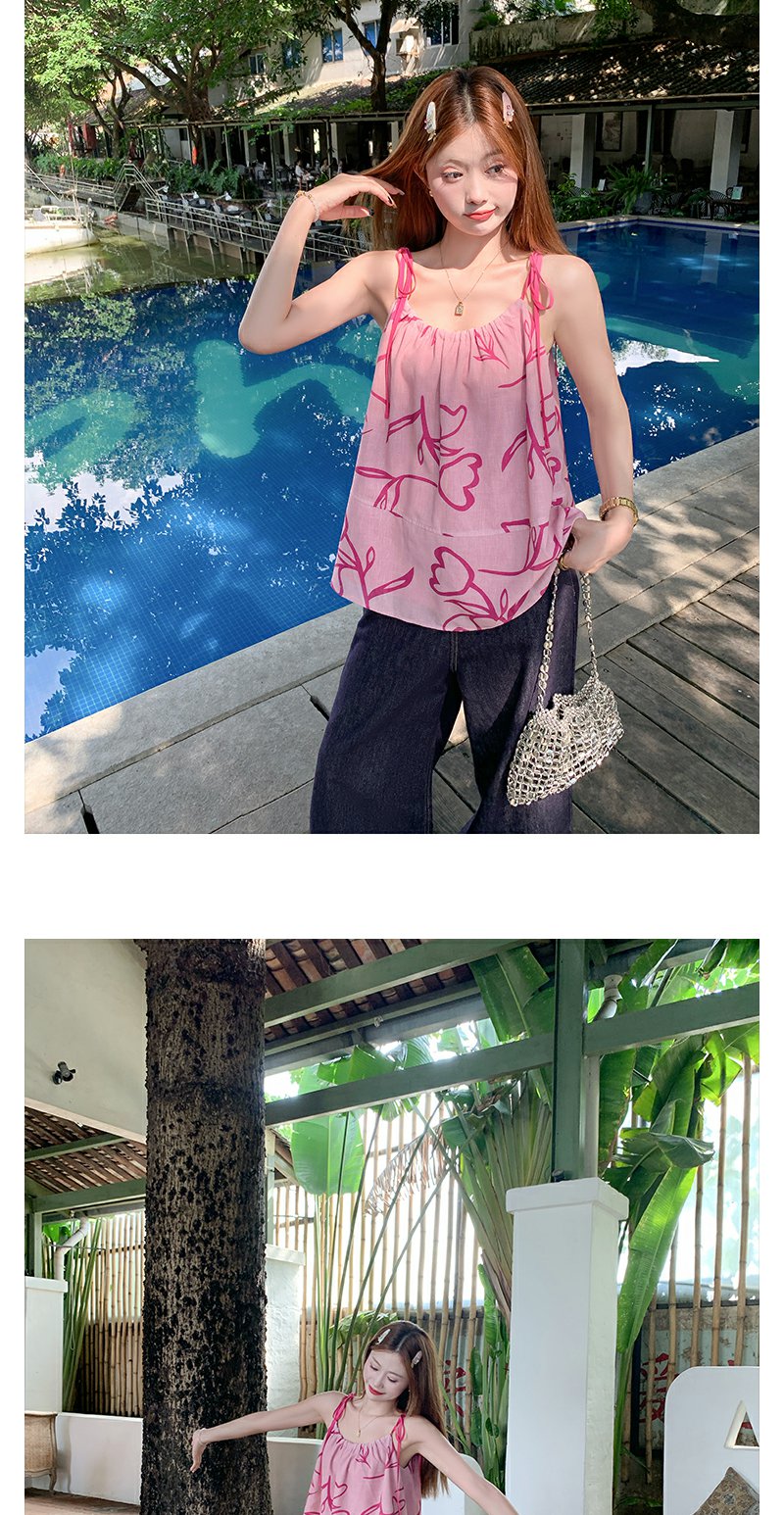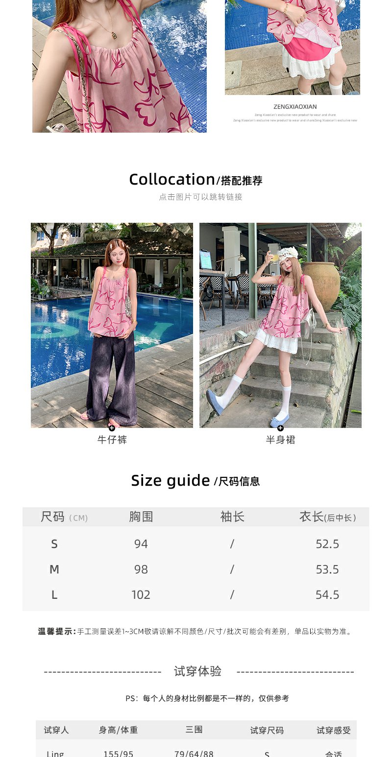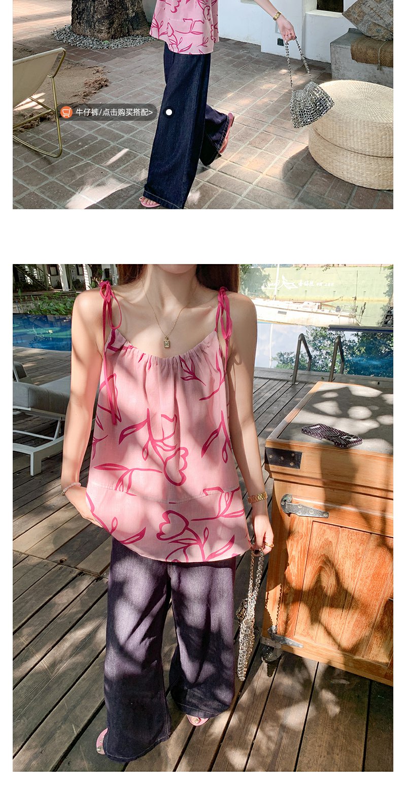 <曾小咸推荐>韩系小撞色印花系带甜美宽松吊带背心
