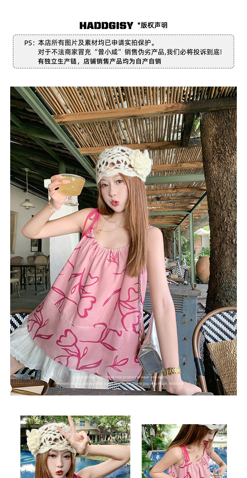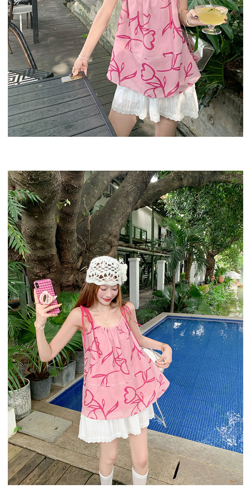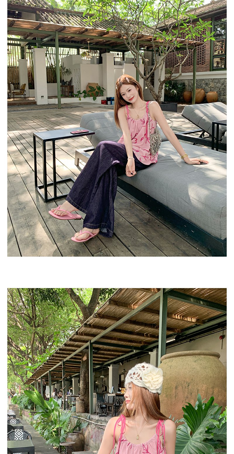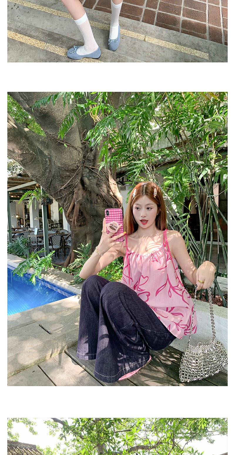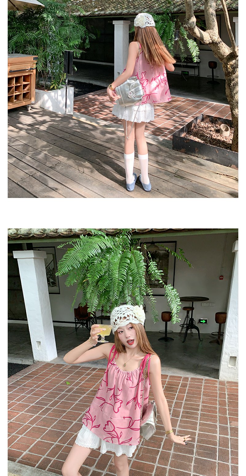 <曾小咸推荐>韩系小撞色印花系带甜美宽松吊带背心