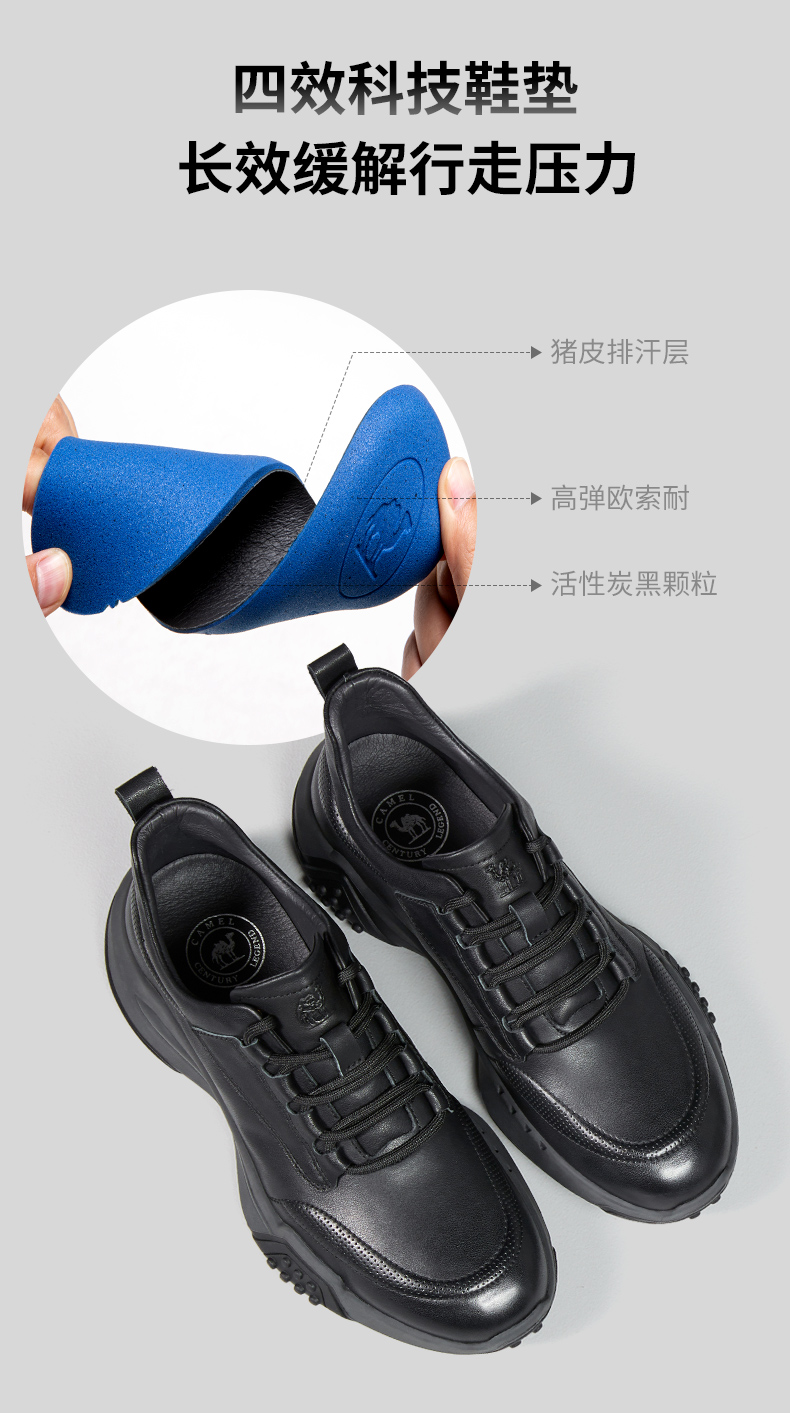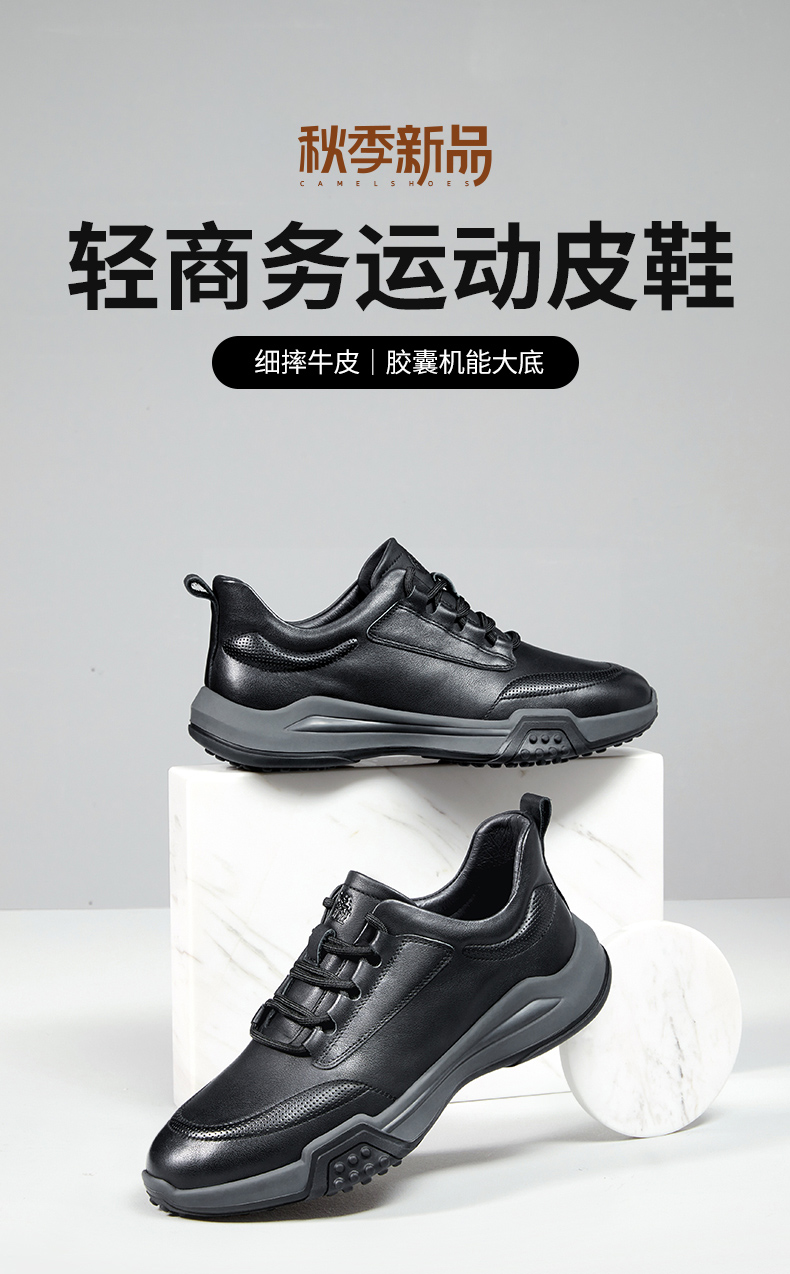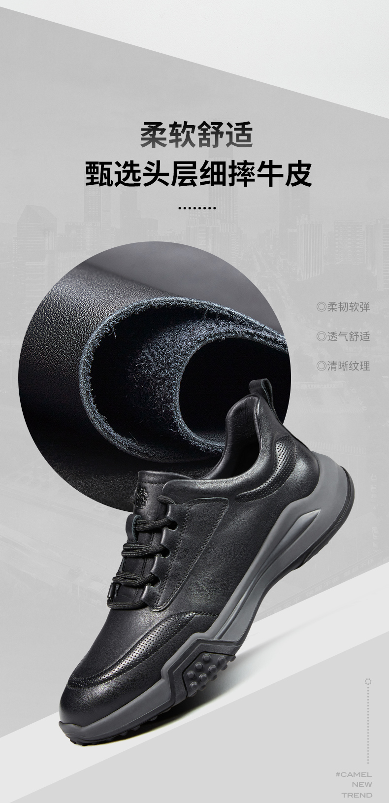 骆驼男鞋2025秋季新款真皮男士休闲鞋潮流黑色百搭商务运动皮鞋男 GE12235237