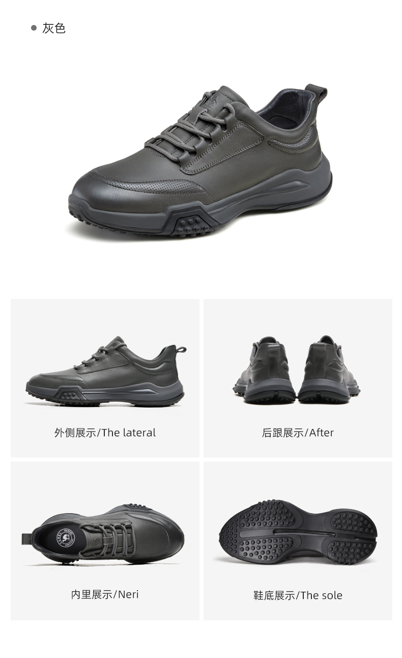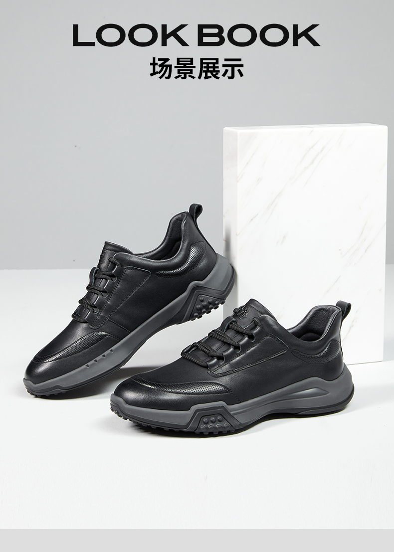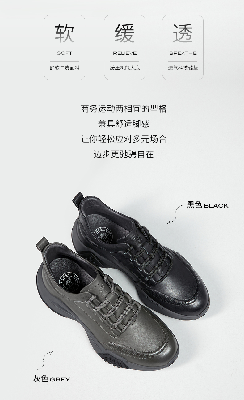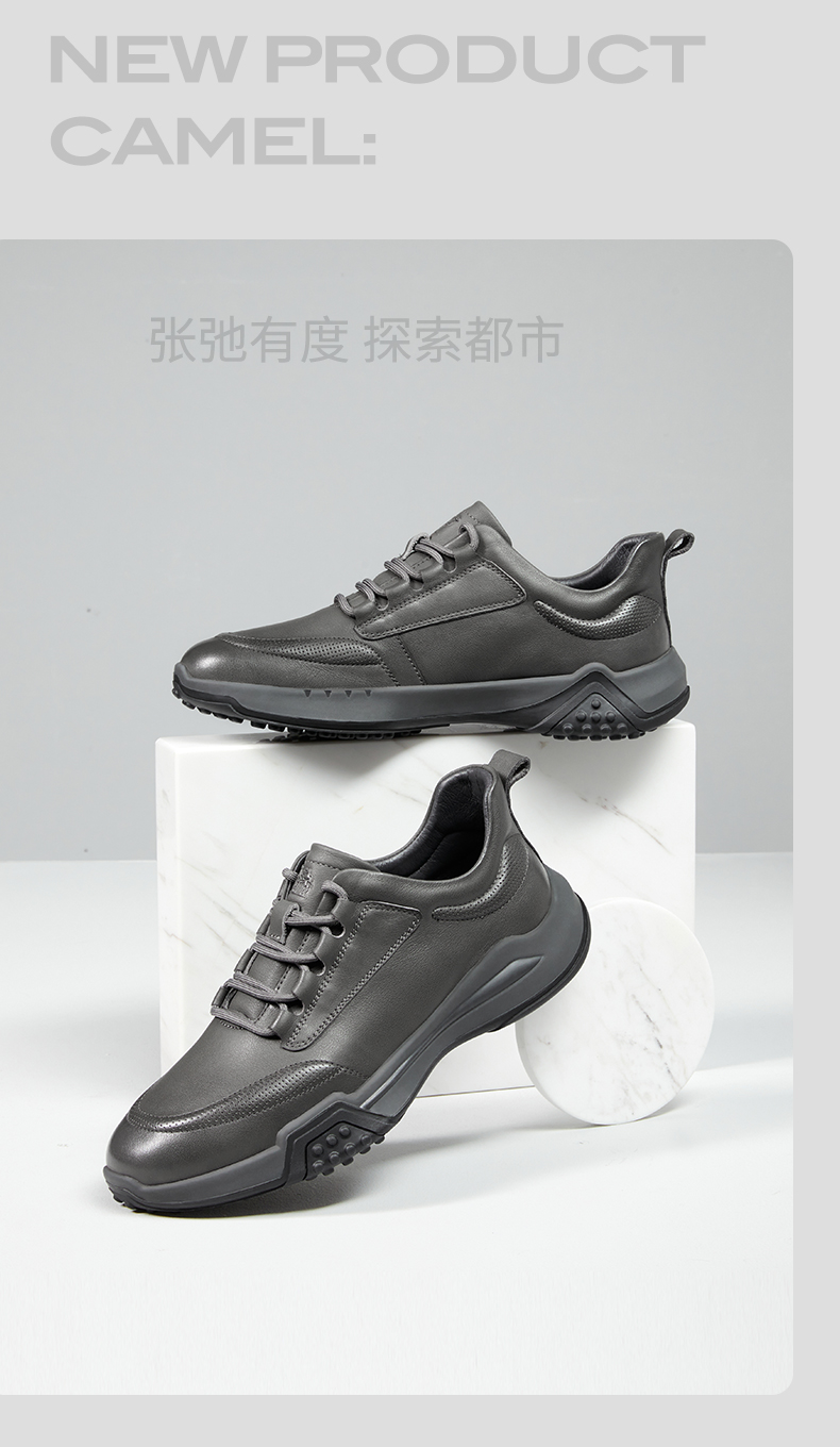 骆驼男鞋2025秋季新款真皮男士休闲鞋潮流黑色百搭商务运动皮鞋男 GE12235237
