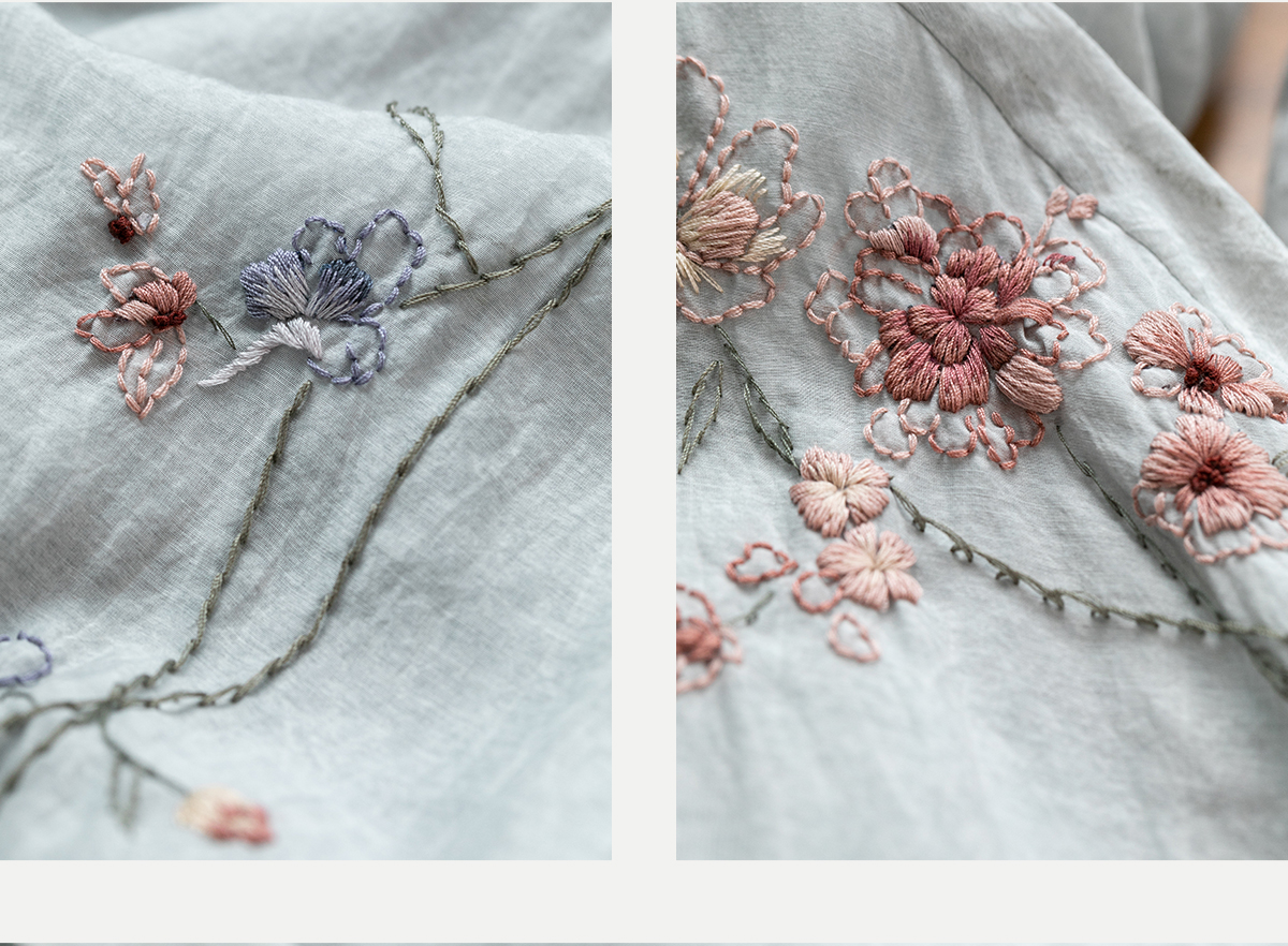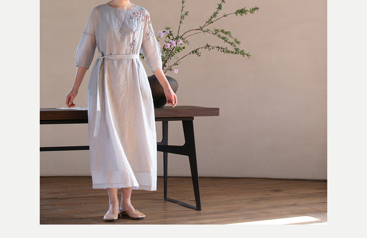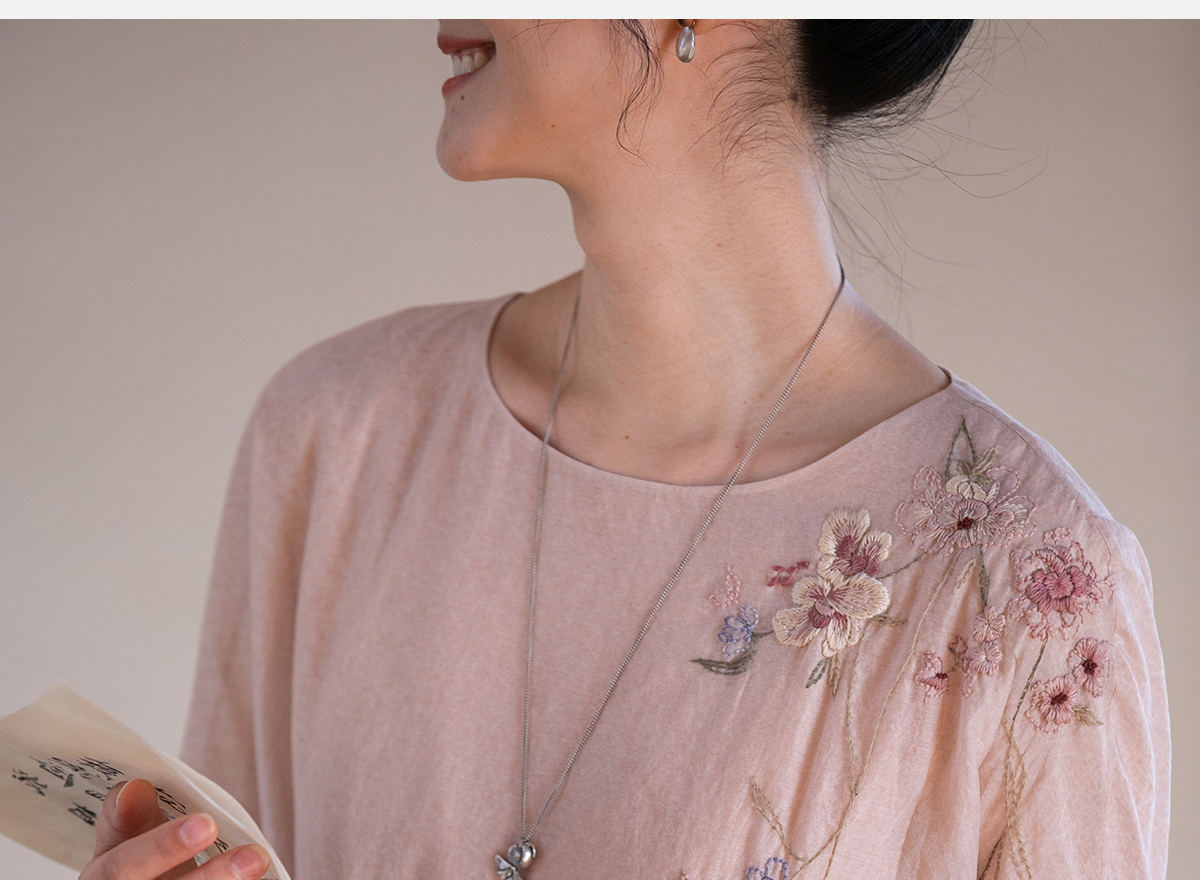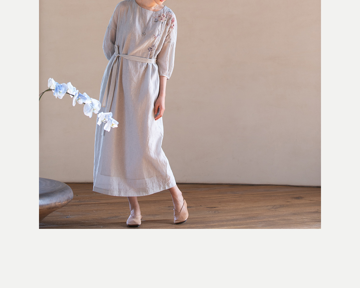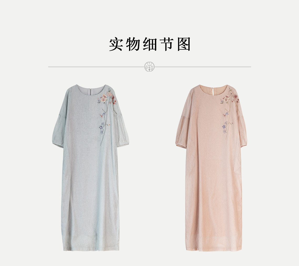 牧衣游原创 丝棉手工刺绣炒色连衣裙文雅古朴蓝色圆领长裙 凉风起