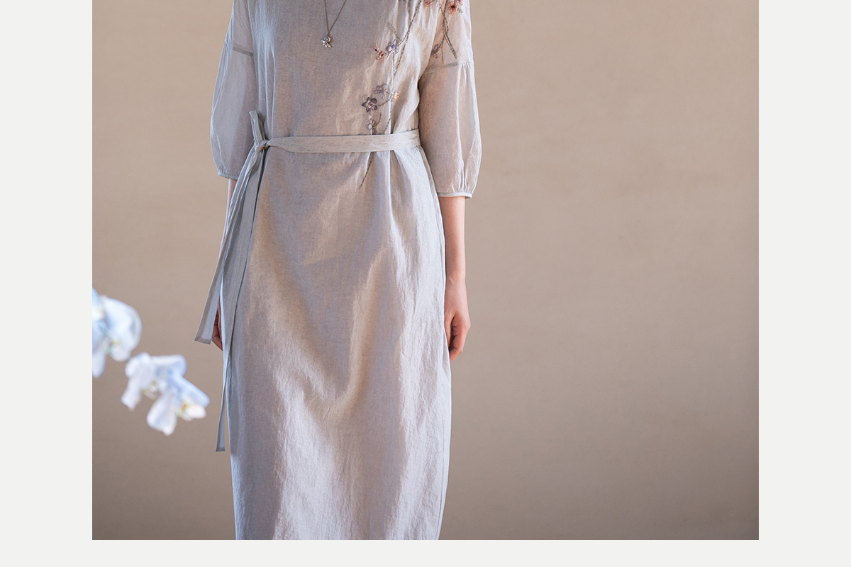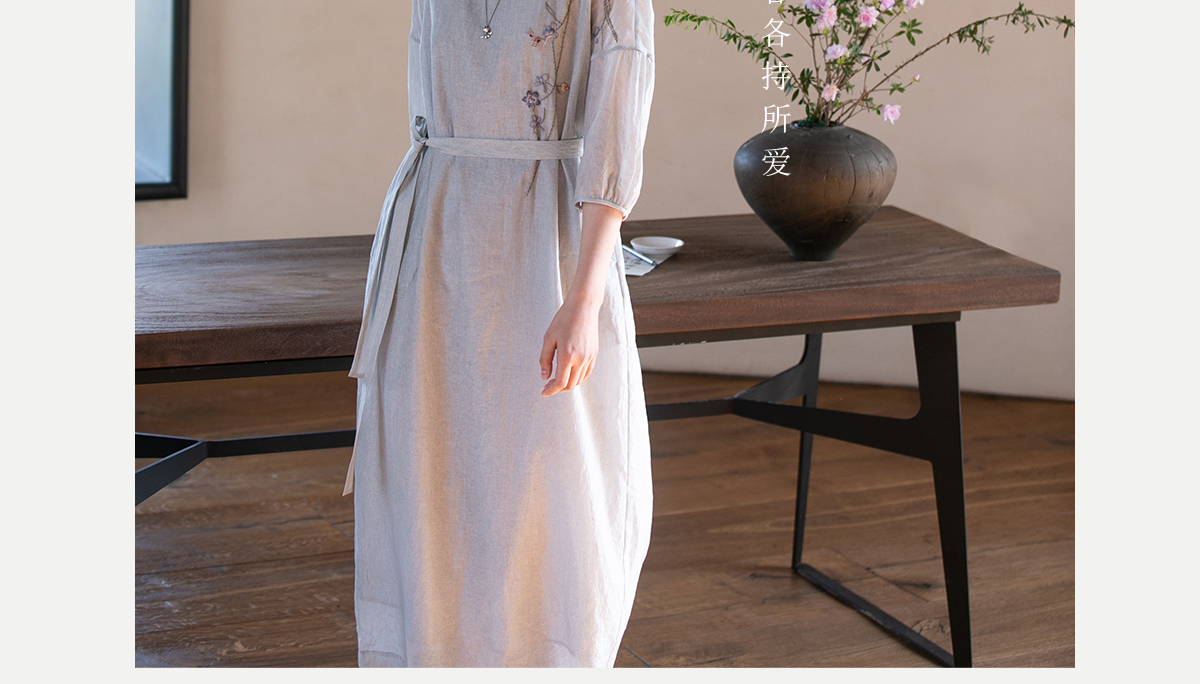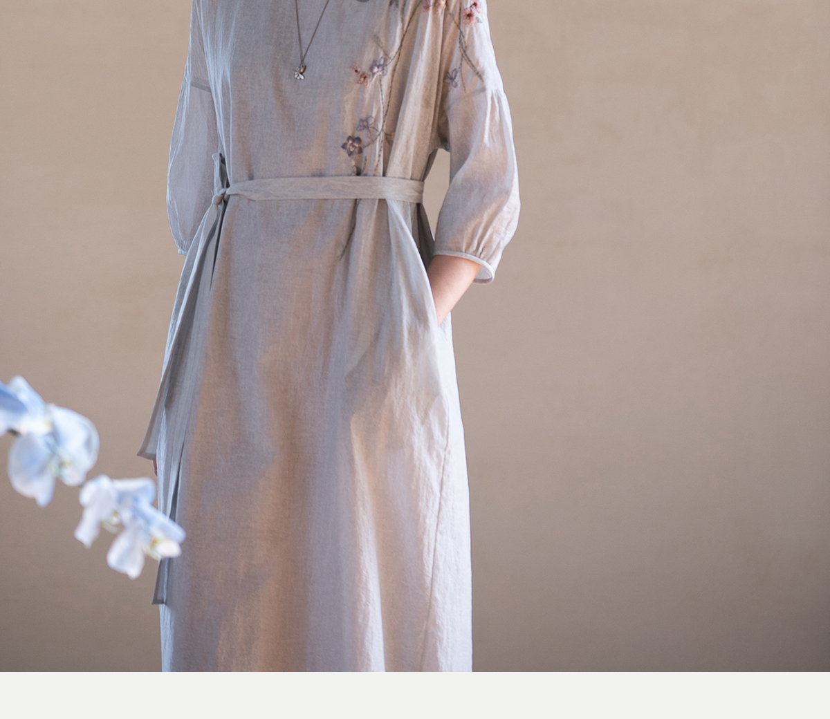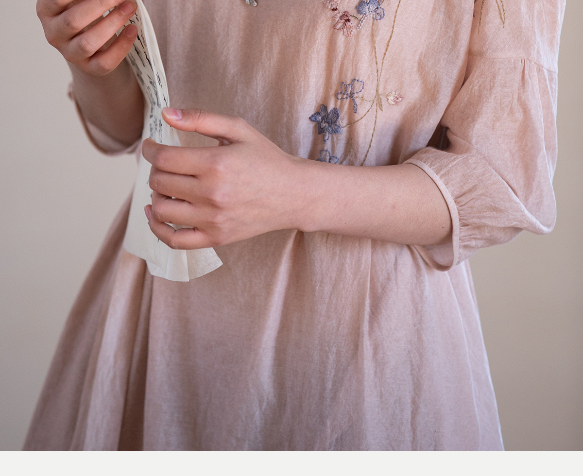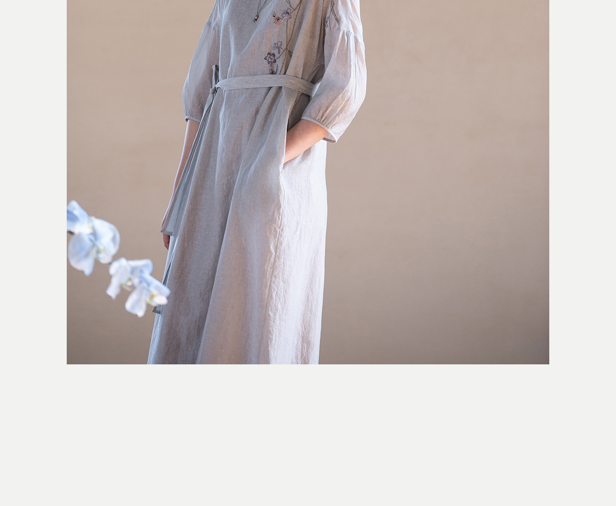 牧衣游原创 丝棉手工刺绣炒色连衣裙文雅古朴蓝色圆领长裙 凉风起