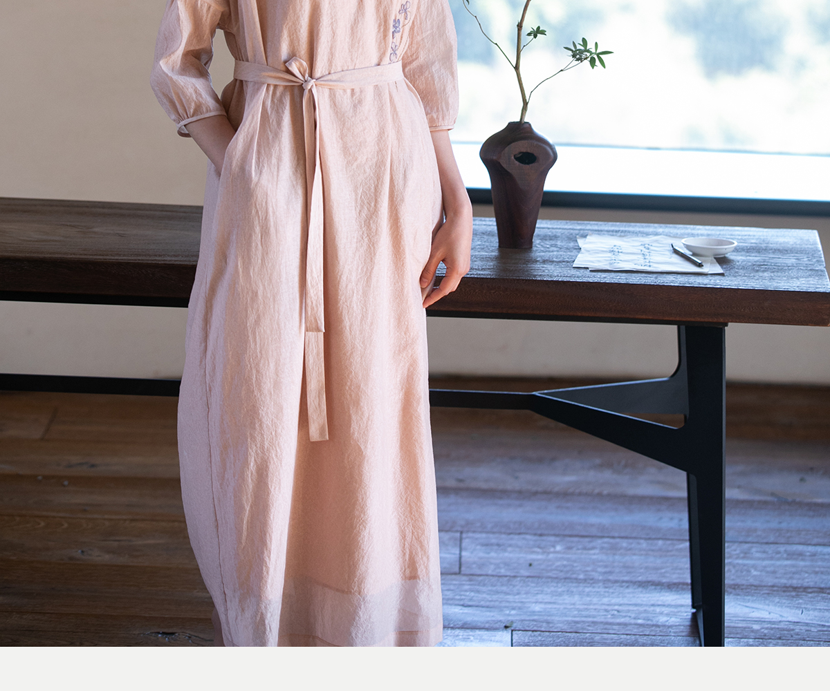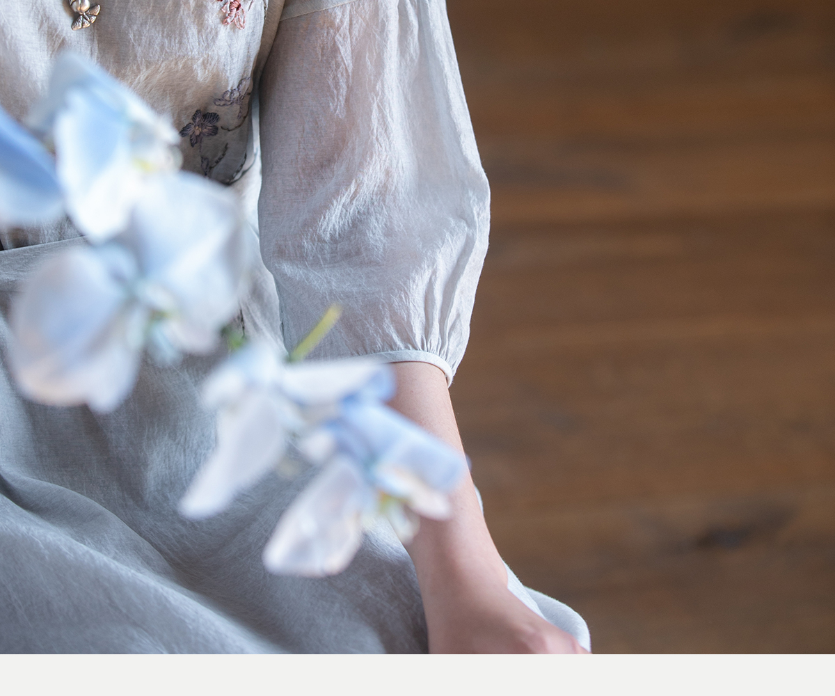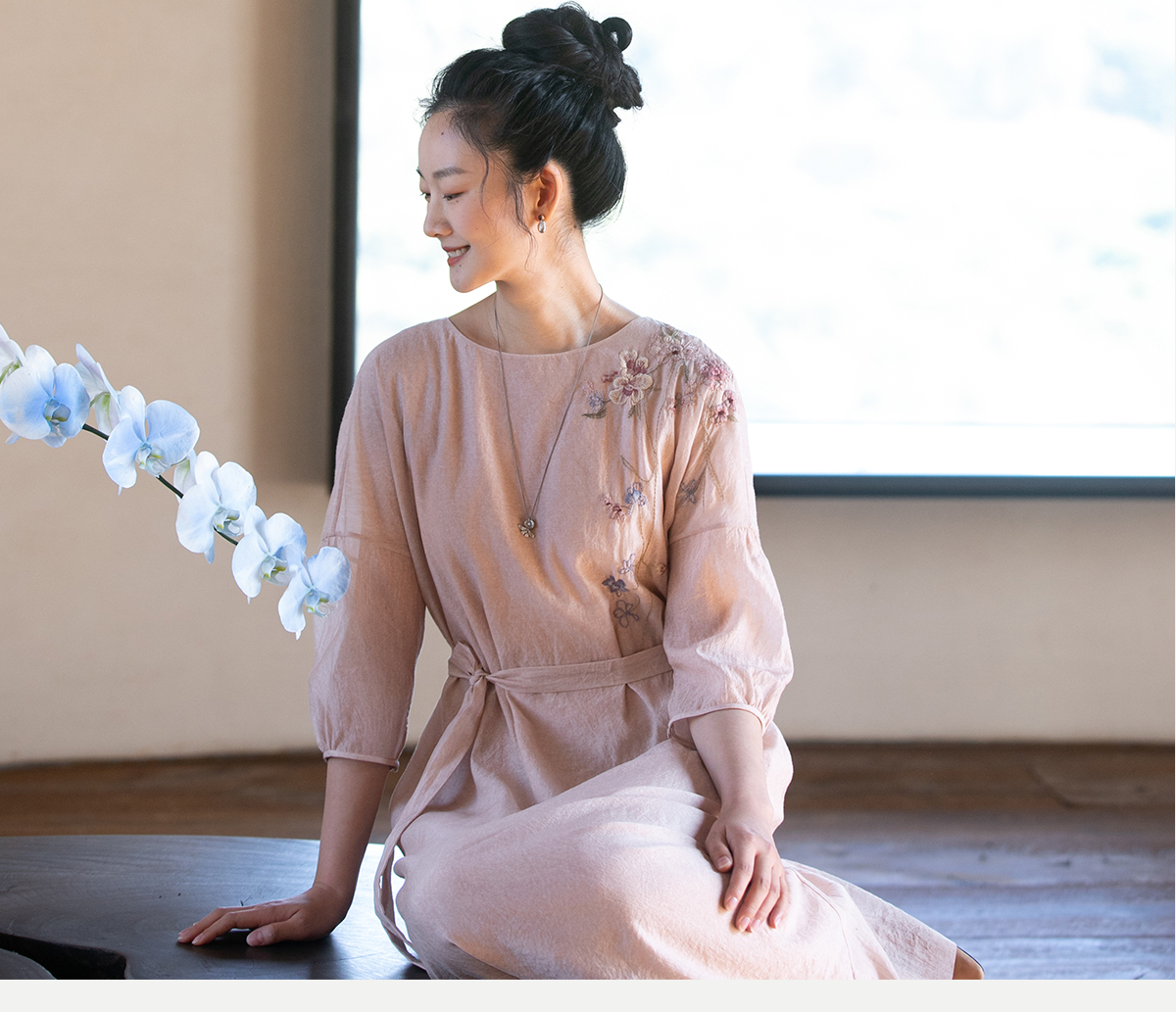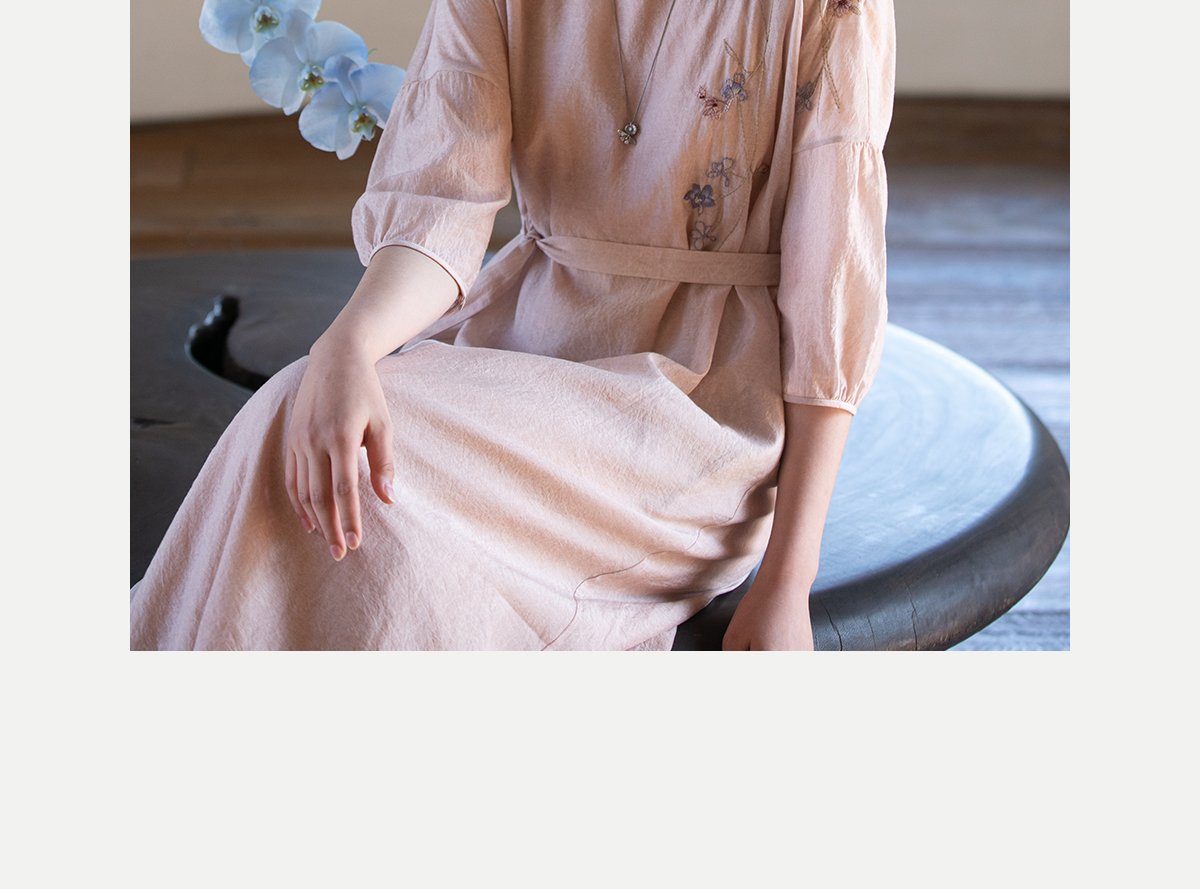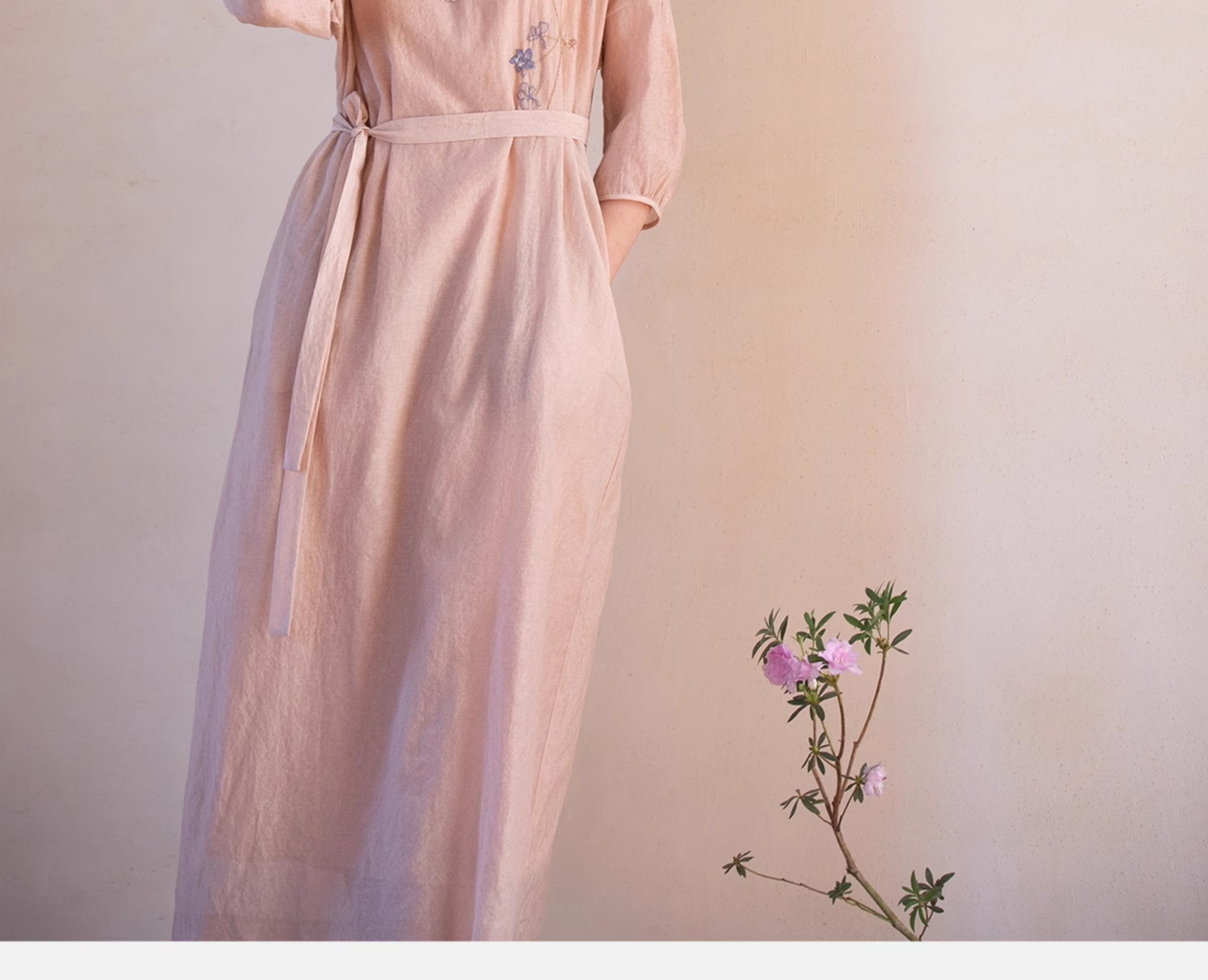 牧衣游原创 丝棉手工刺绣炒色连衣裙文雅古朴蓝色圆领长裙 凉风起