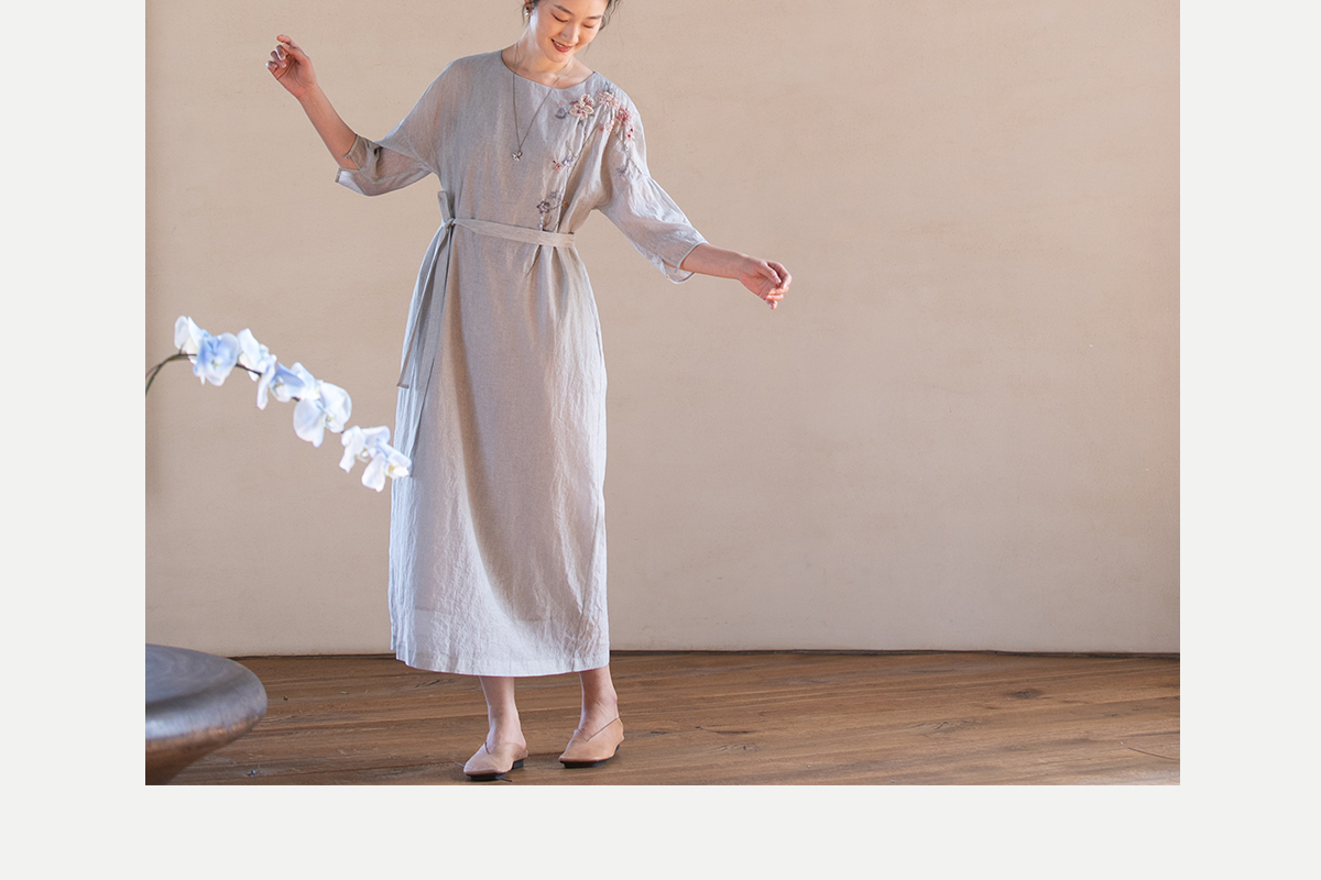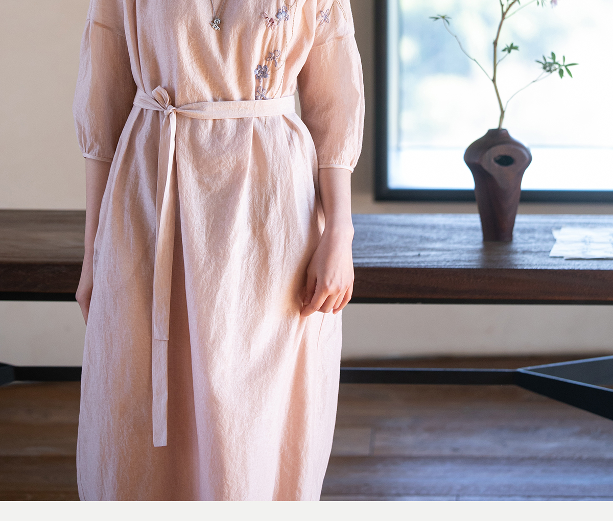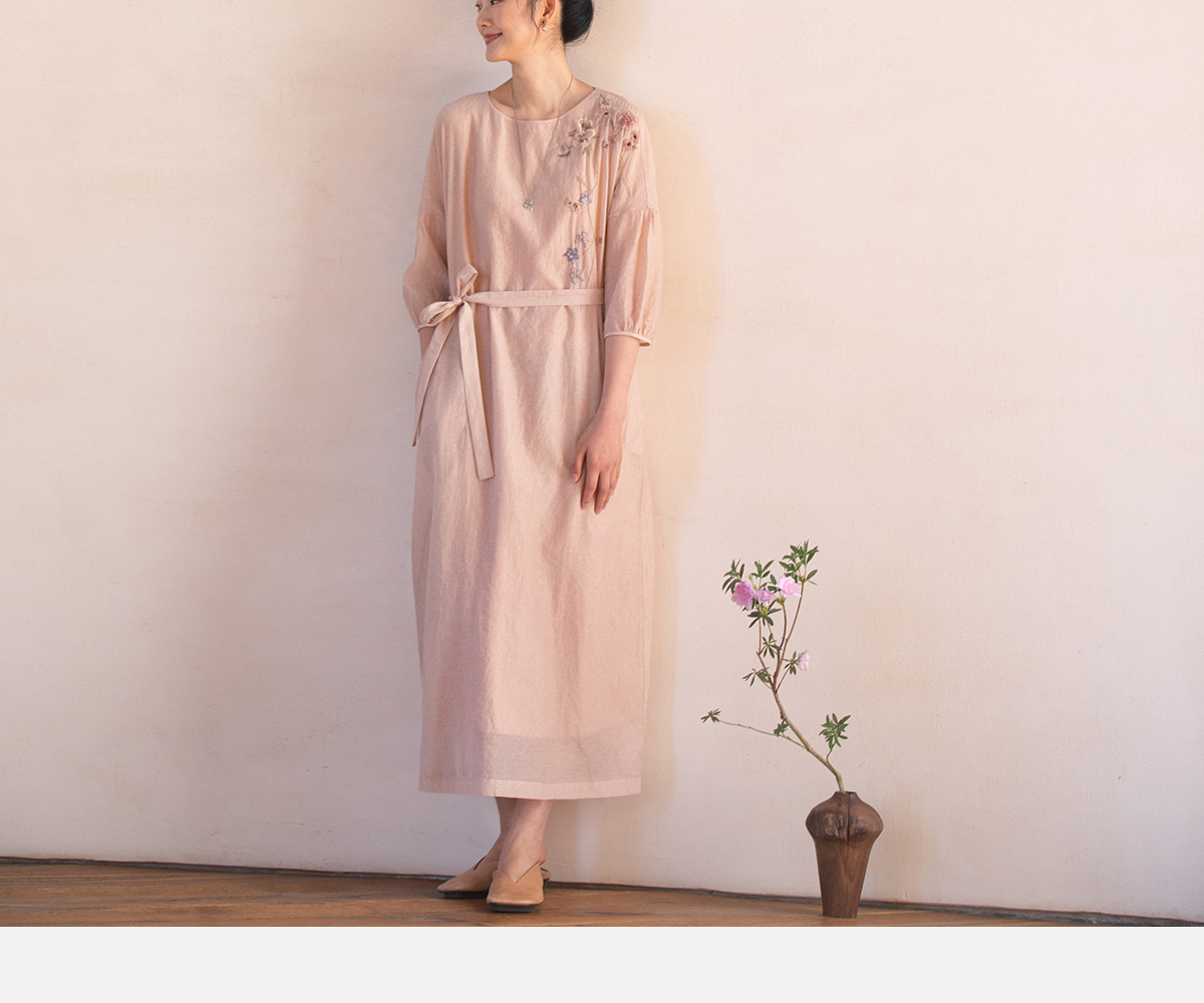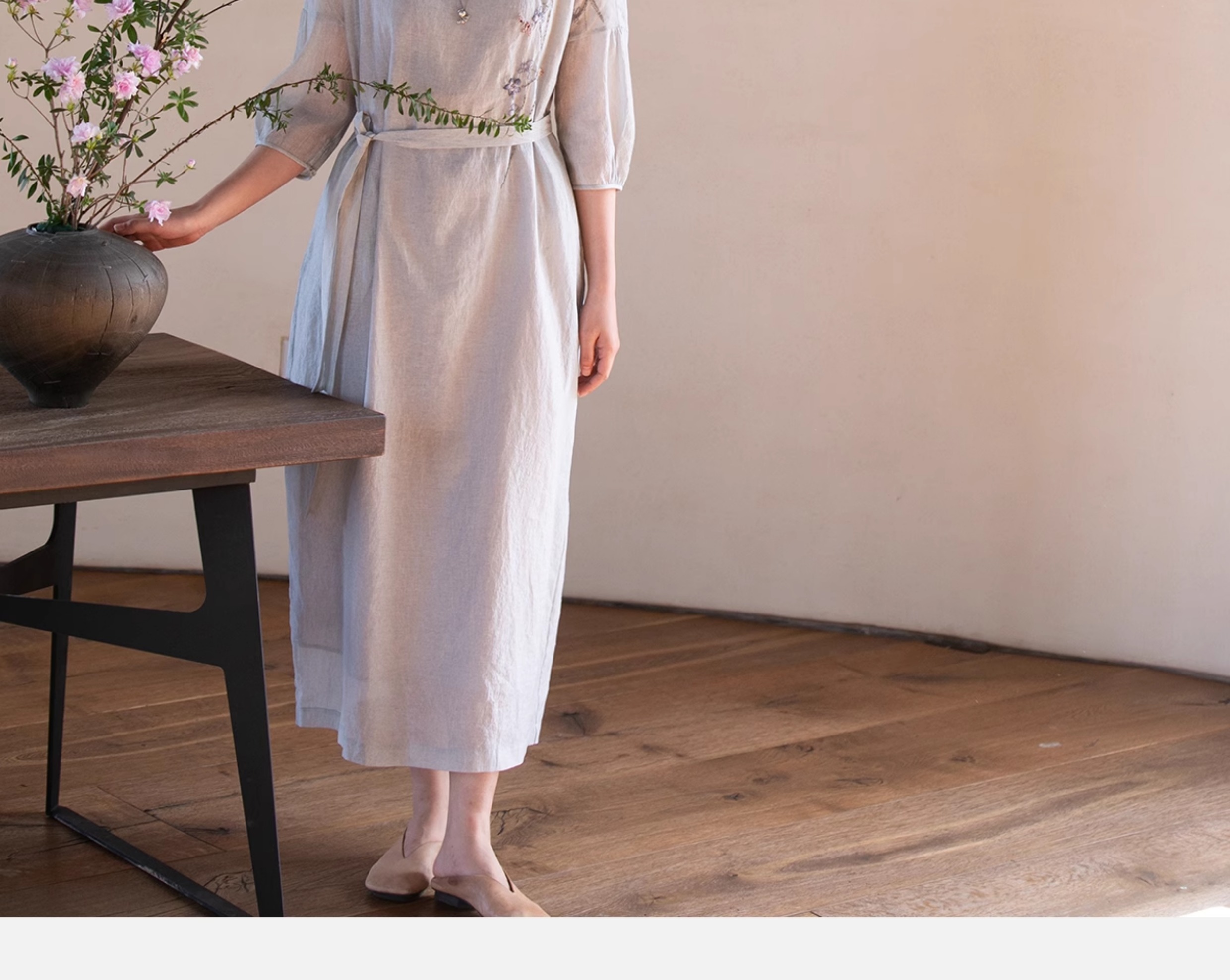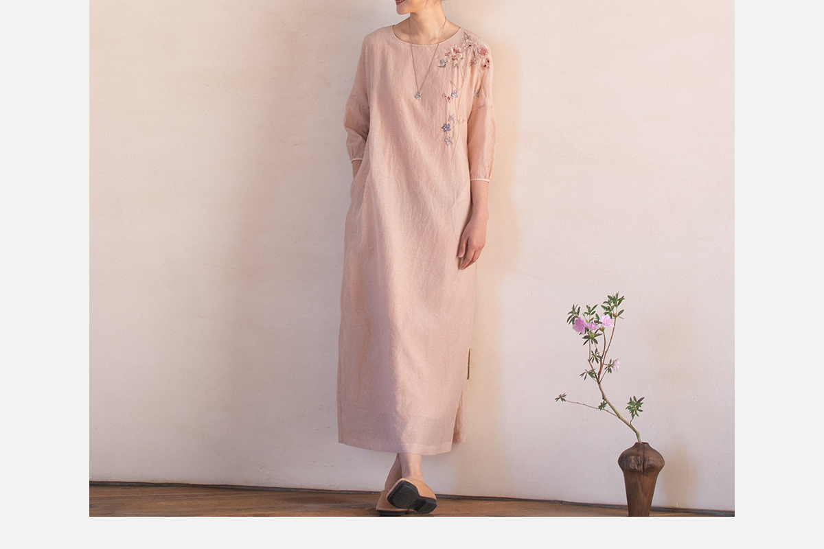 牧衣游原创 丝棉手工刺绣炒色连衣裙文雅古朴蓝色圆领长裙 凉风起