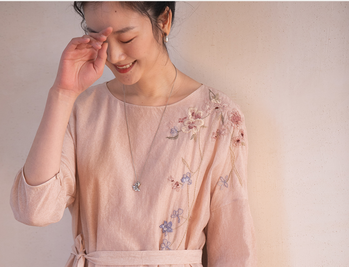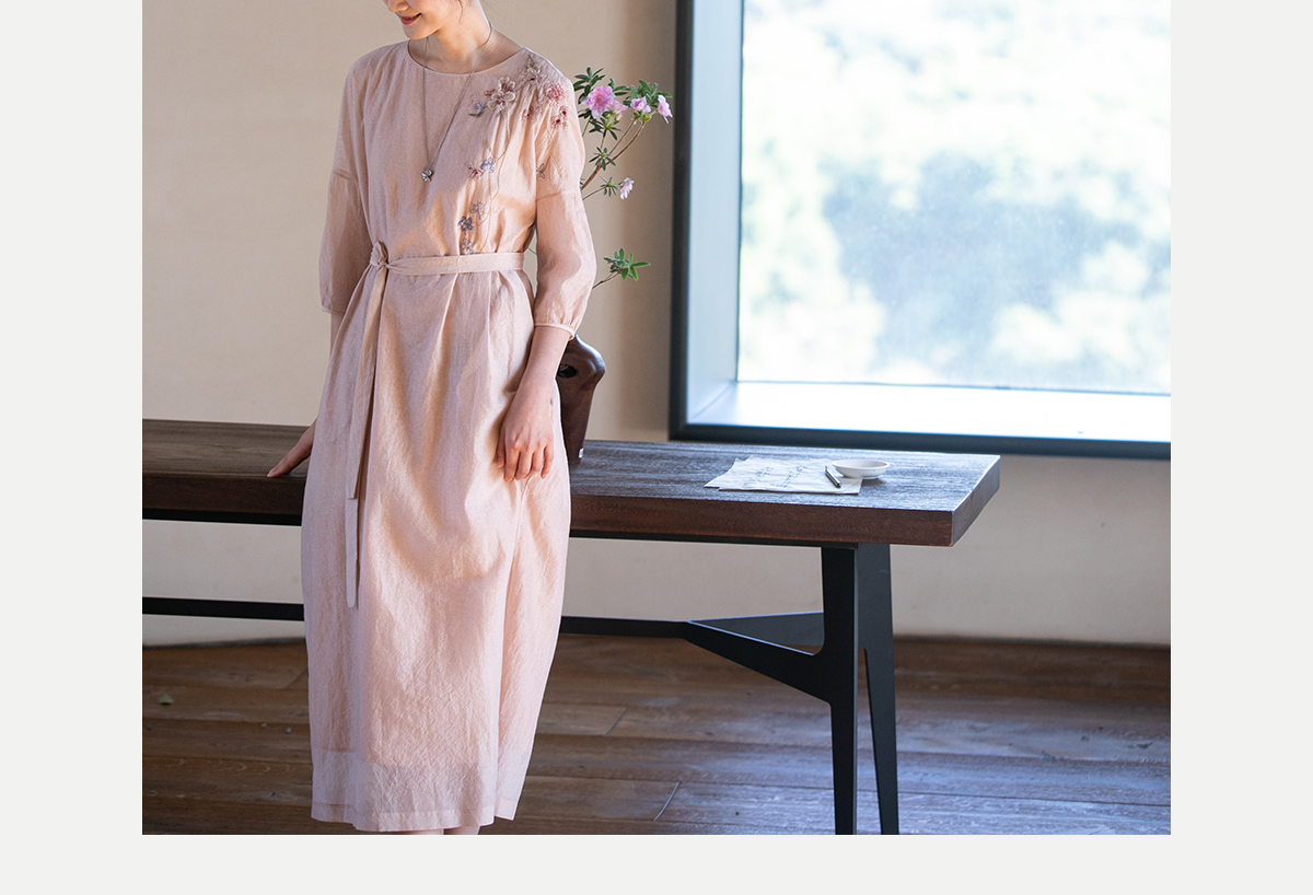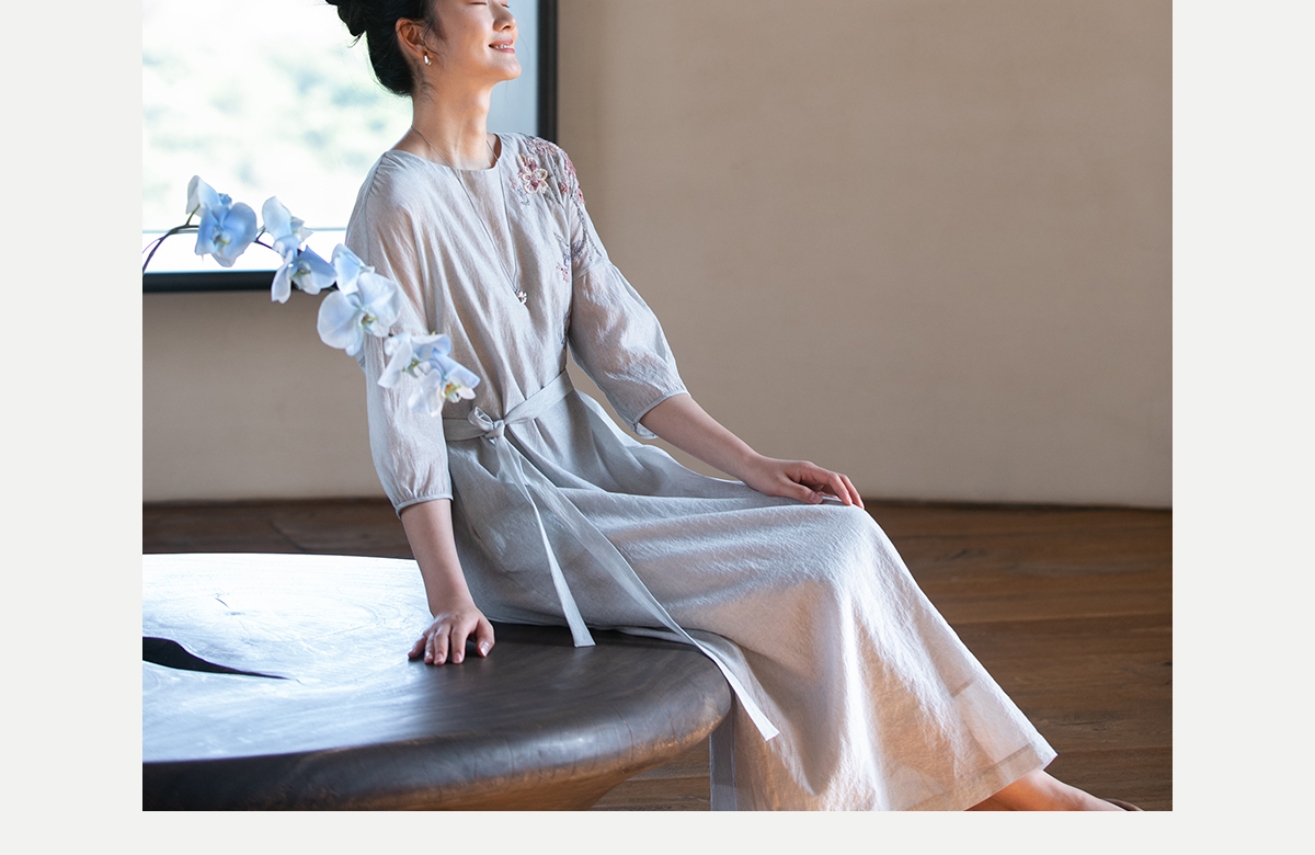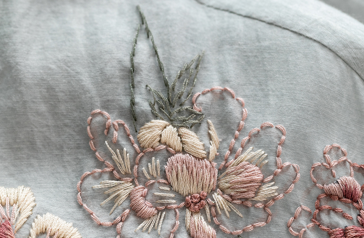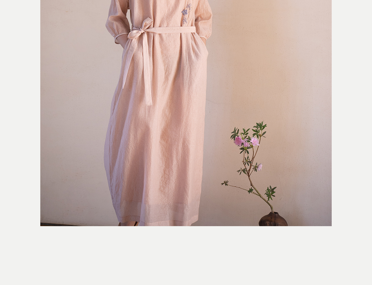 牧衣游原创 丝棉手工刺绣炒色连衣裙文雅古朴蓝色圆领长裙 凉风起