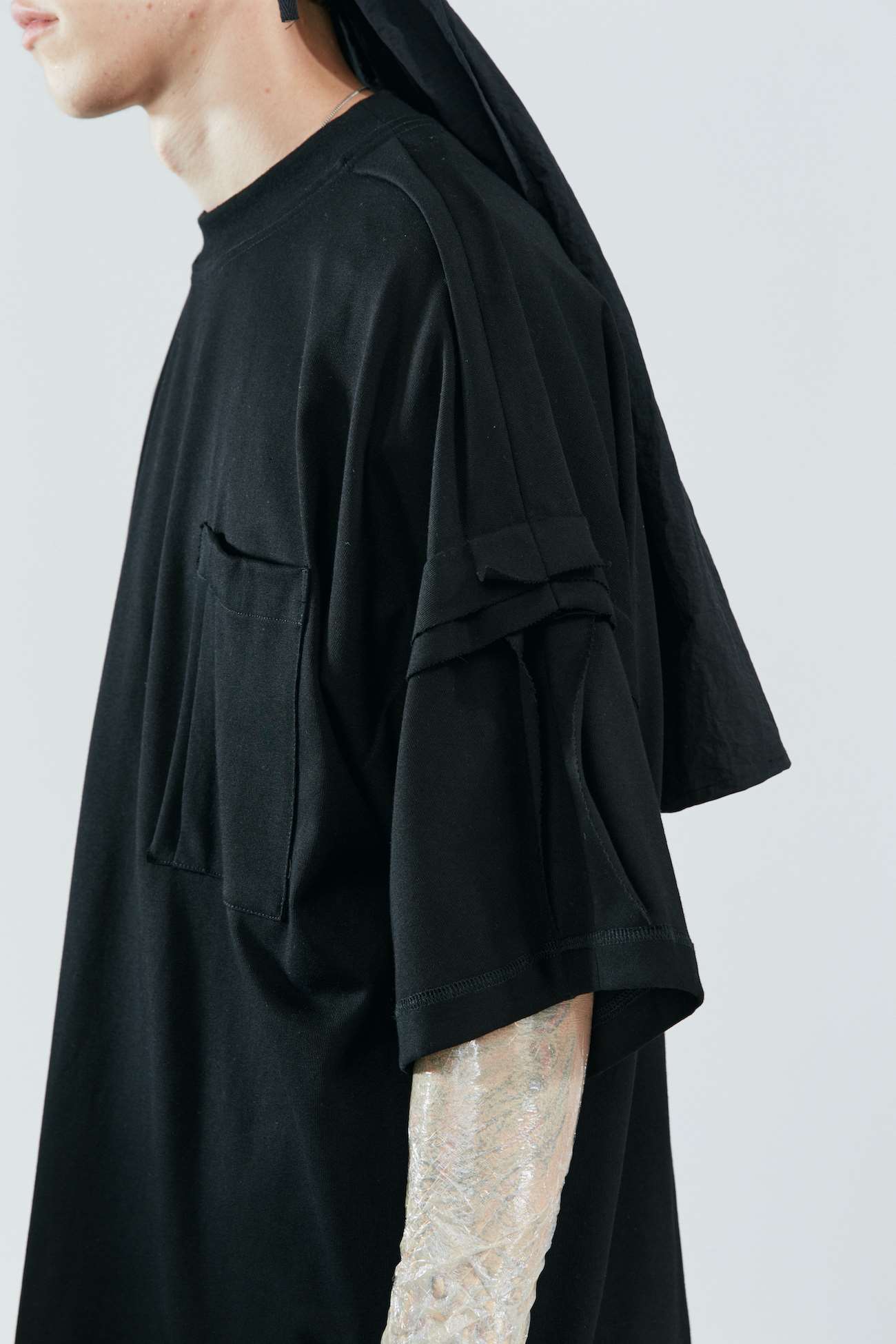 ATTEMPT SS21 毛边外置宽松口袋T恤男女国潮宽松休闲落肩半袖T恤