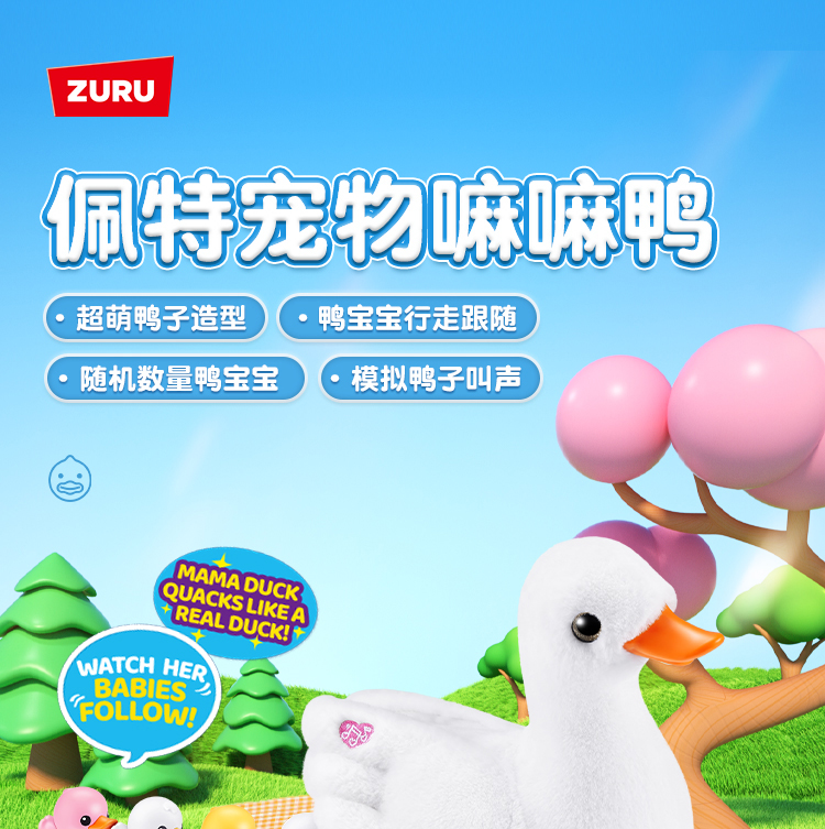 zuru佩特宠物超萌嘛嘛鸭仿真电动会叫行走可爱孵小鸭宝宝毛绒玩具