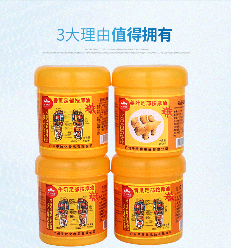 厂家直销千秋牛奶青瓜香薰生姜汁足疗店专用足部按摩膏按摩油320g